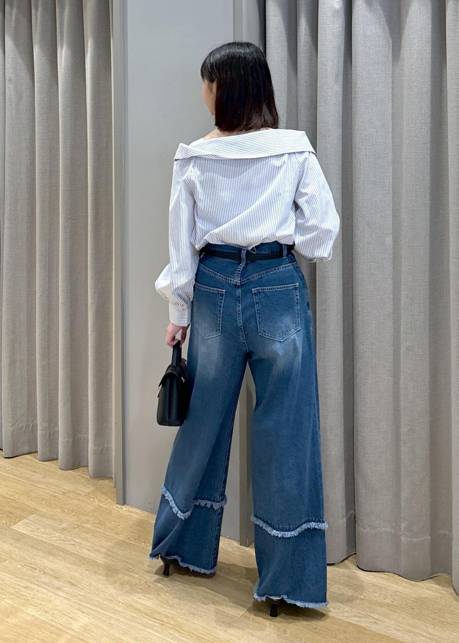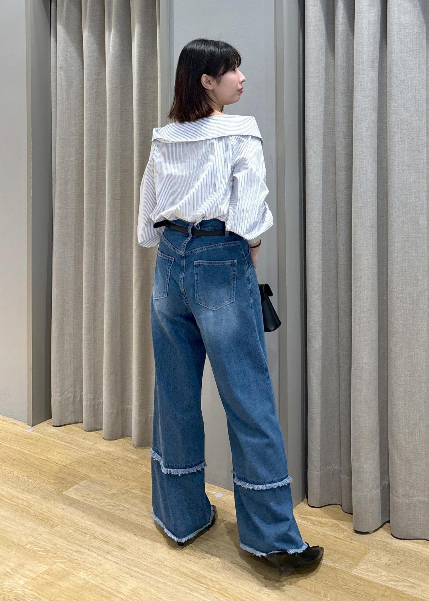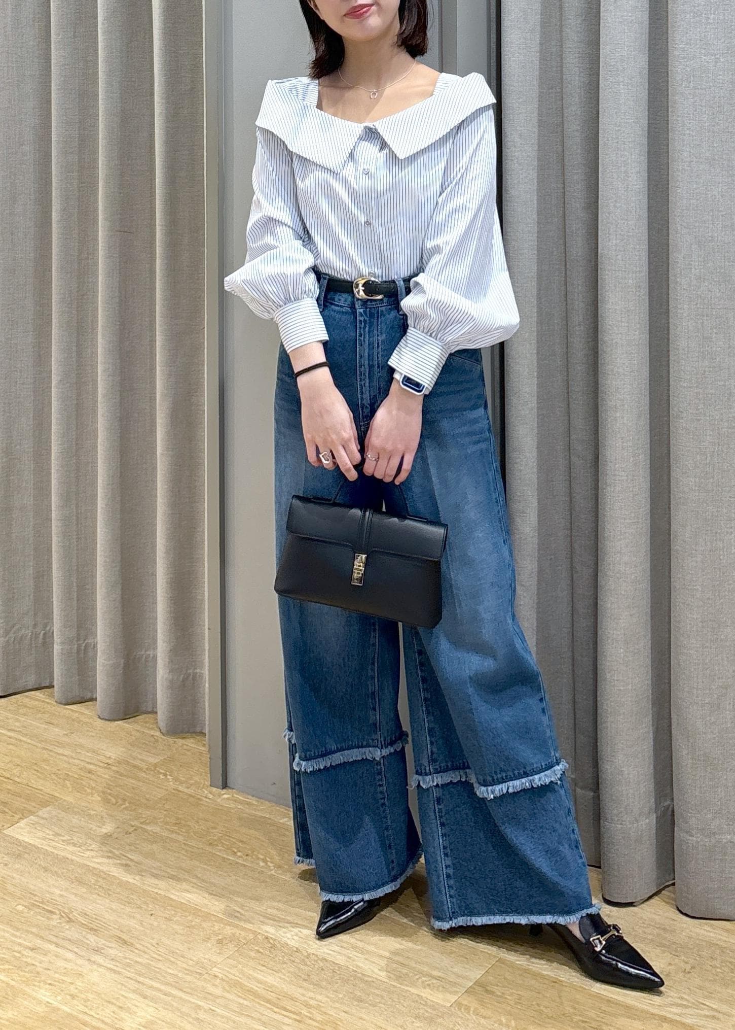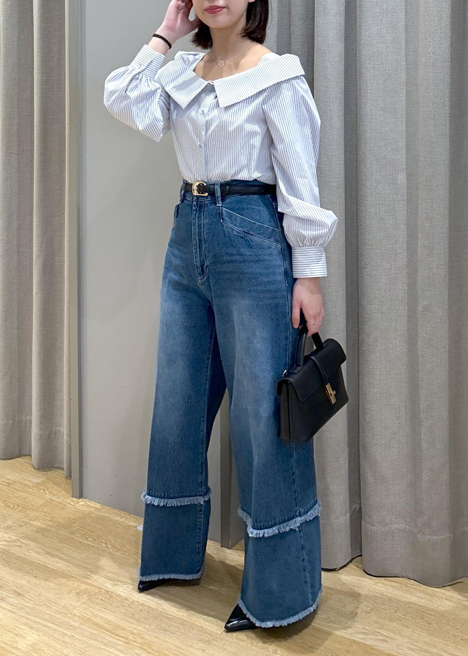 VISフリンジフレアデニムブルー系 / M¥4,395レビュー身長158cm、Mサイズ着用。