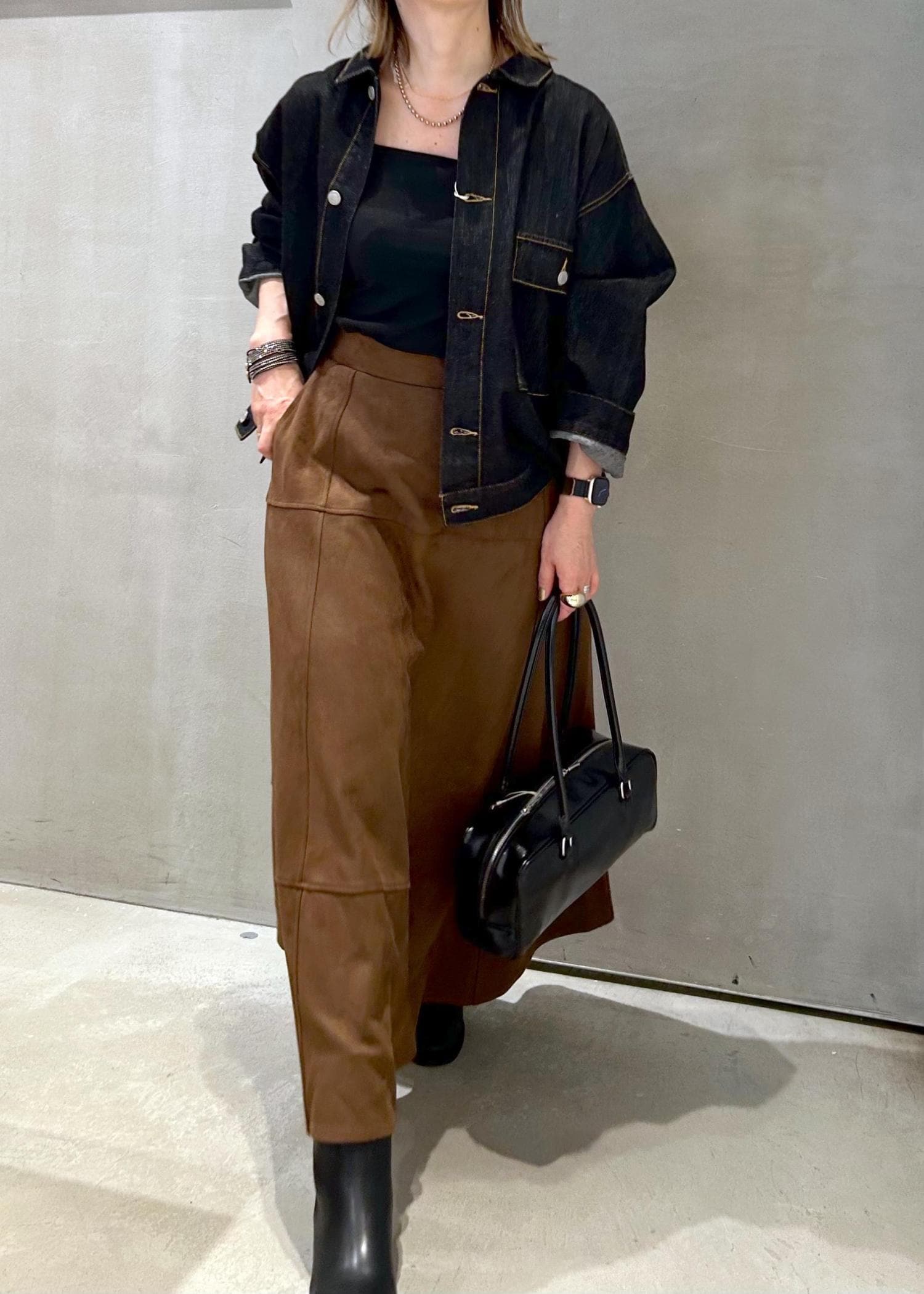 スエード素材を一点取り入れる事で、ぐっと秋の装いになりますよ。