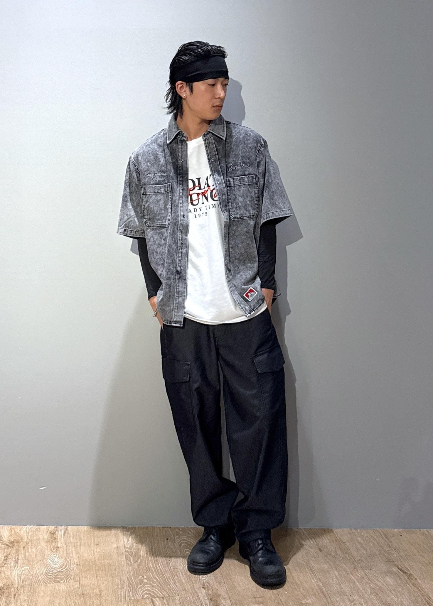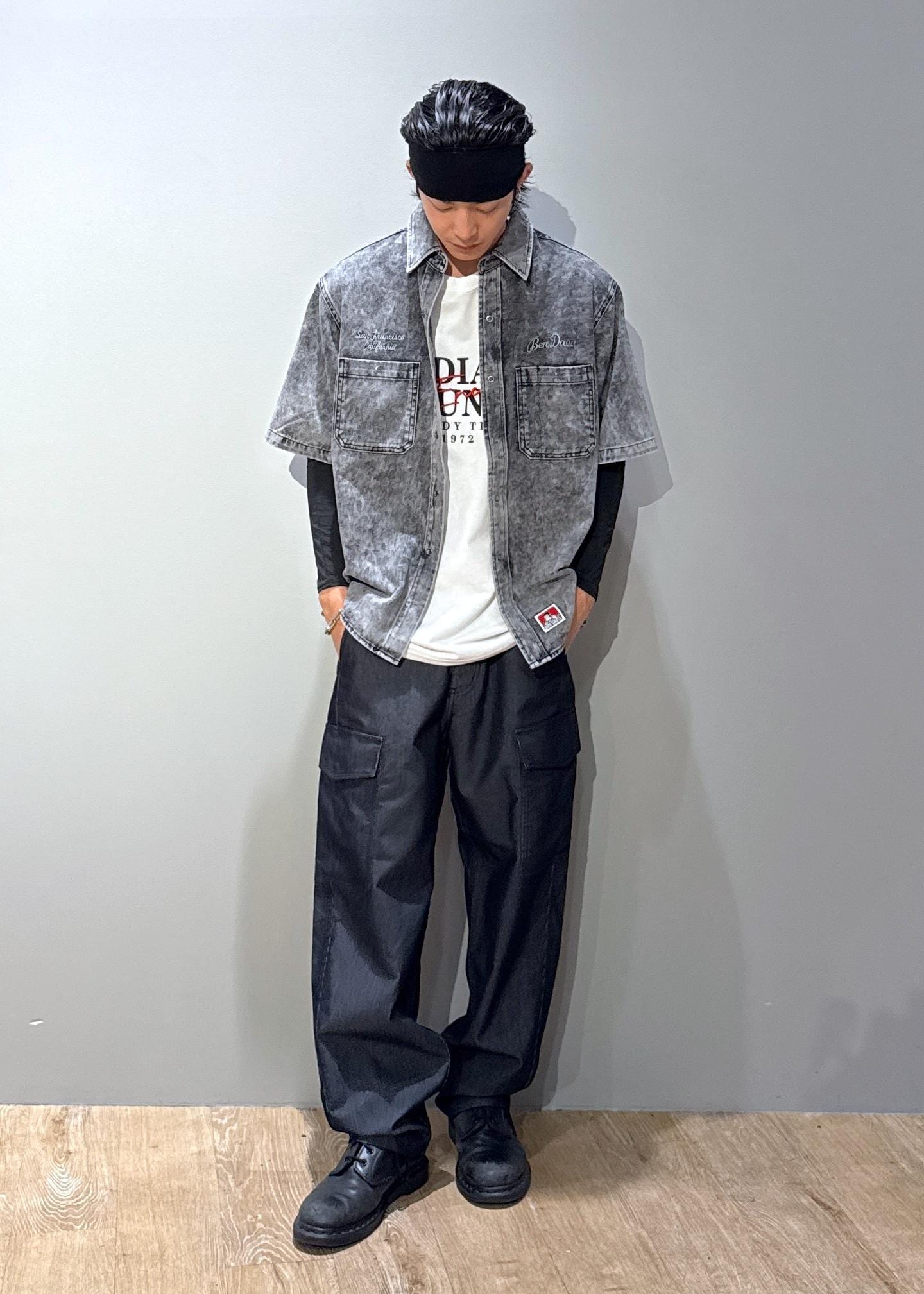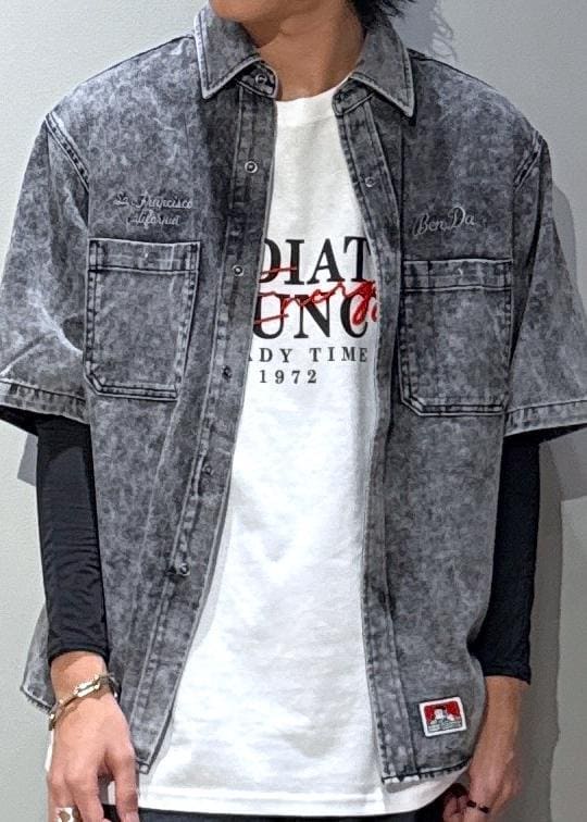 j.n.r.d【BENDAVIS別注】デニムライクシャツグレー / M¥8,800レビューしっかりとしたデニムライクの綿100%ツイル素材を使用。耐久性に優れ、ヴィンテージ感のあるデザイン性イケイケです。
