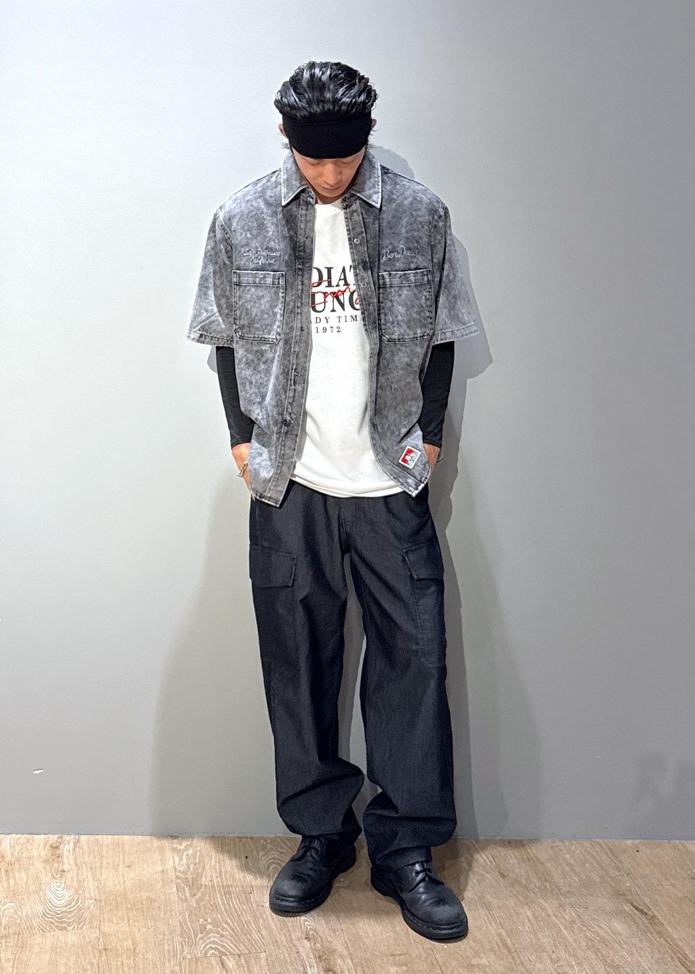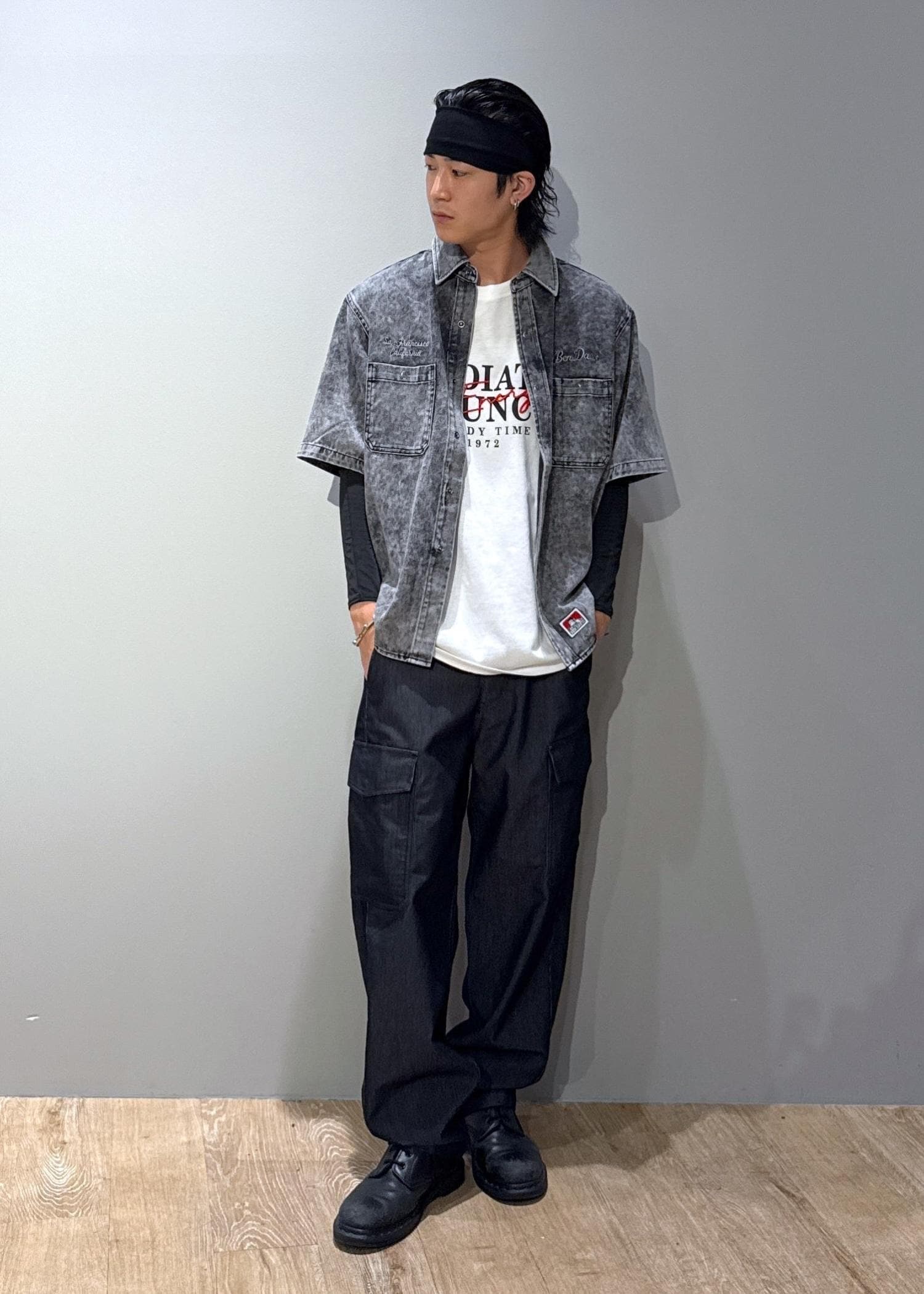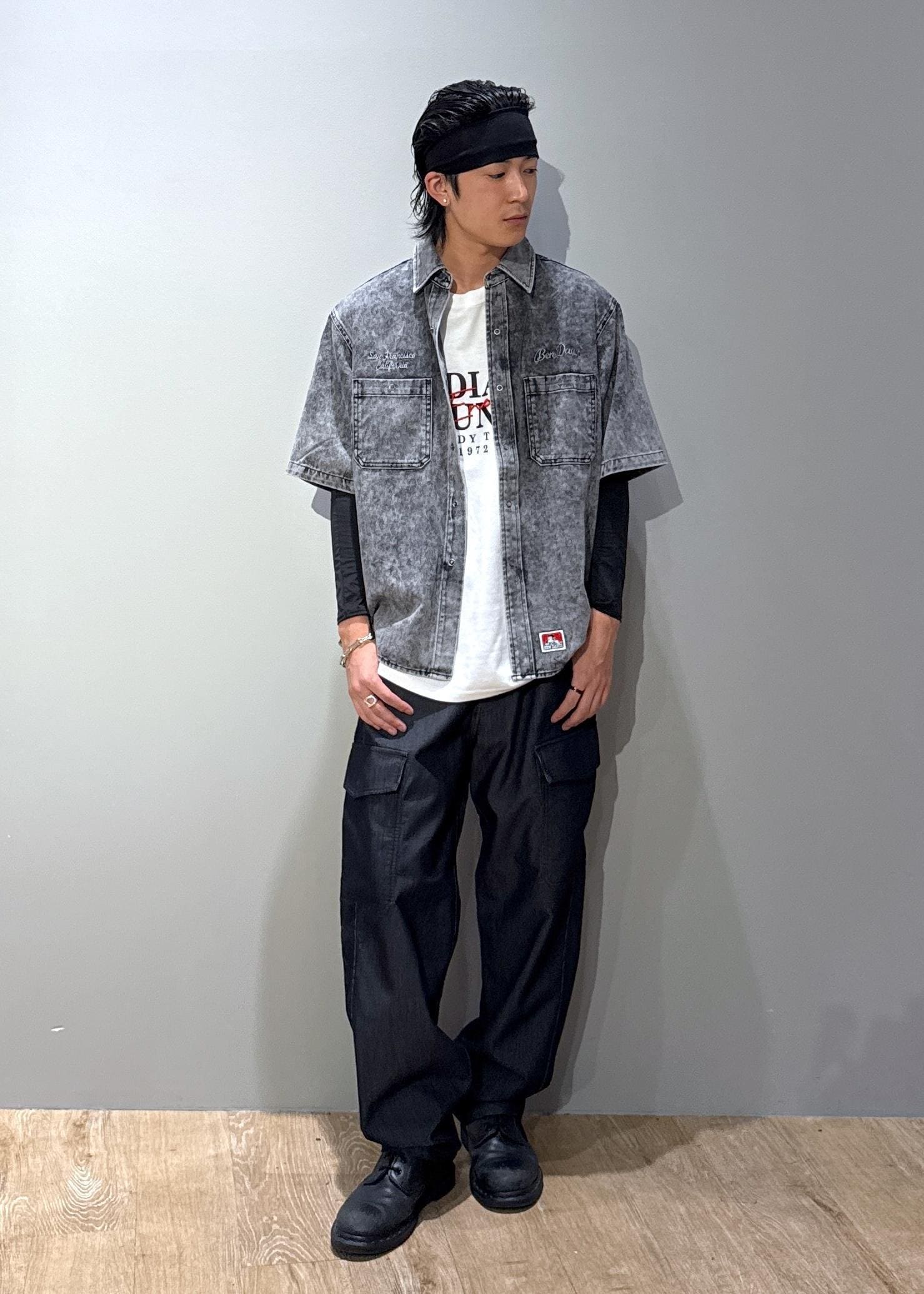 j.n.r.d【BENDAVIS別注】デニムライクシャツグレー / M¥8,800レビューしっかりとしたデニムライクの綿100%ツイル素材を使用。耐久性に優れ、ヴィンテージ感のあるデザイン性イケイケです。