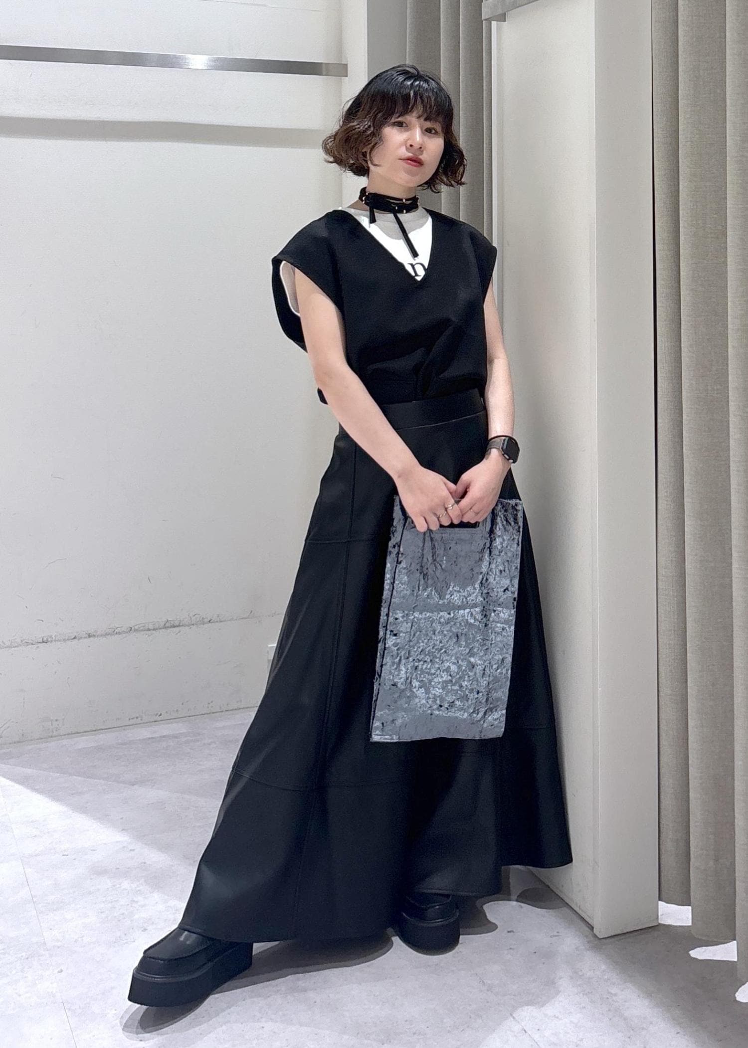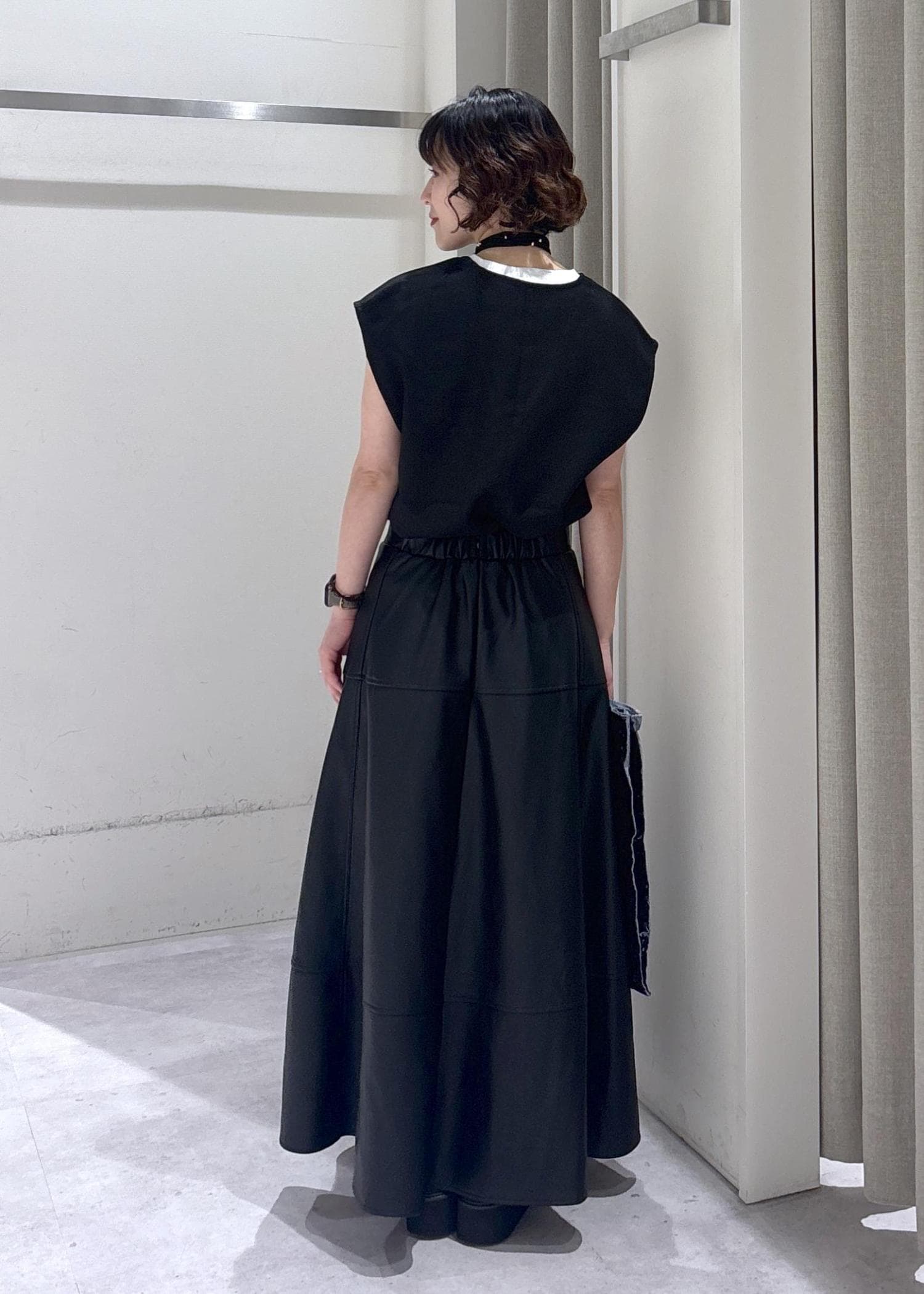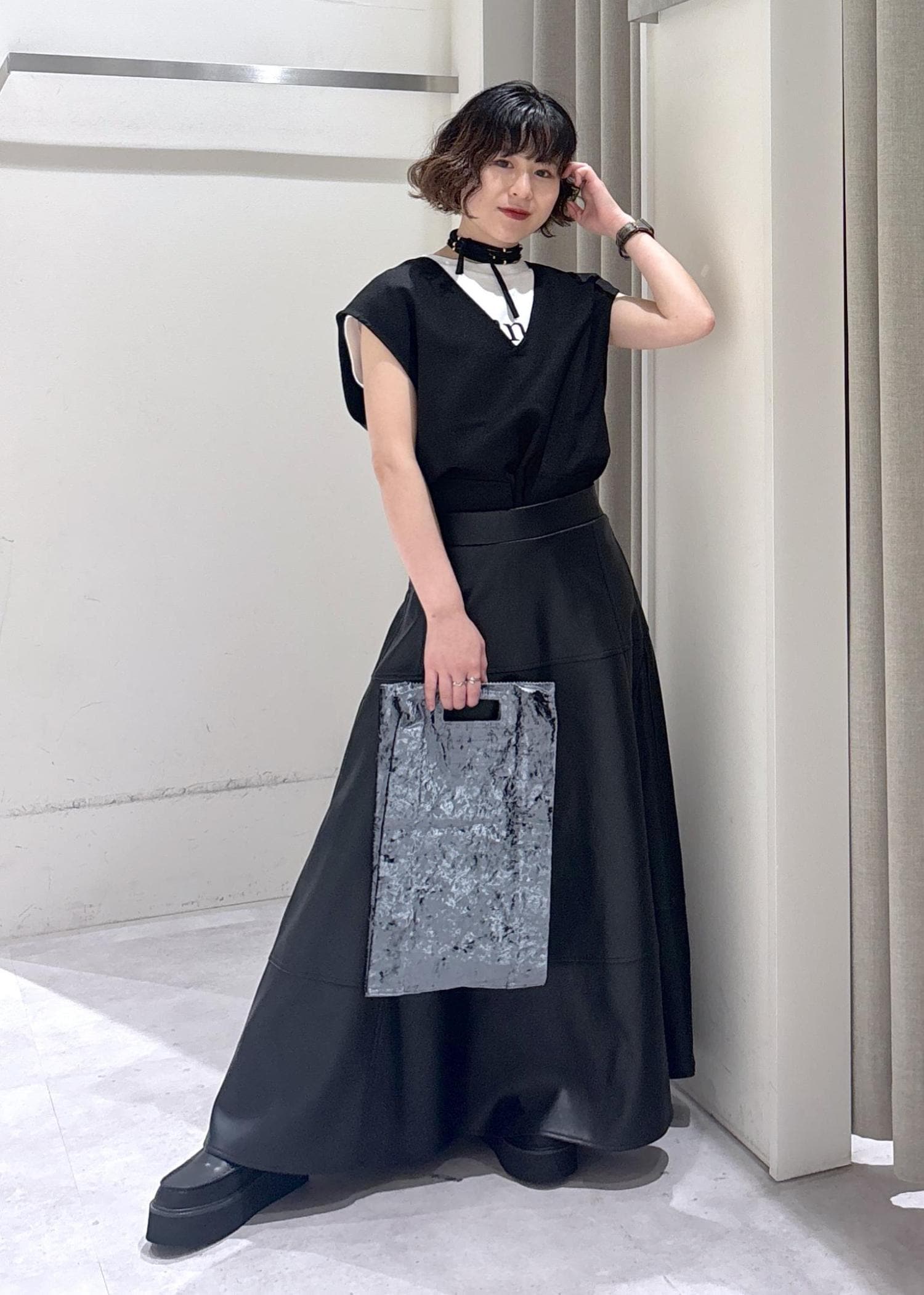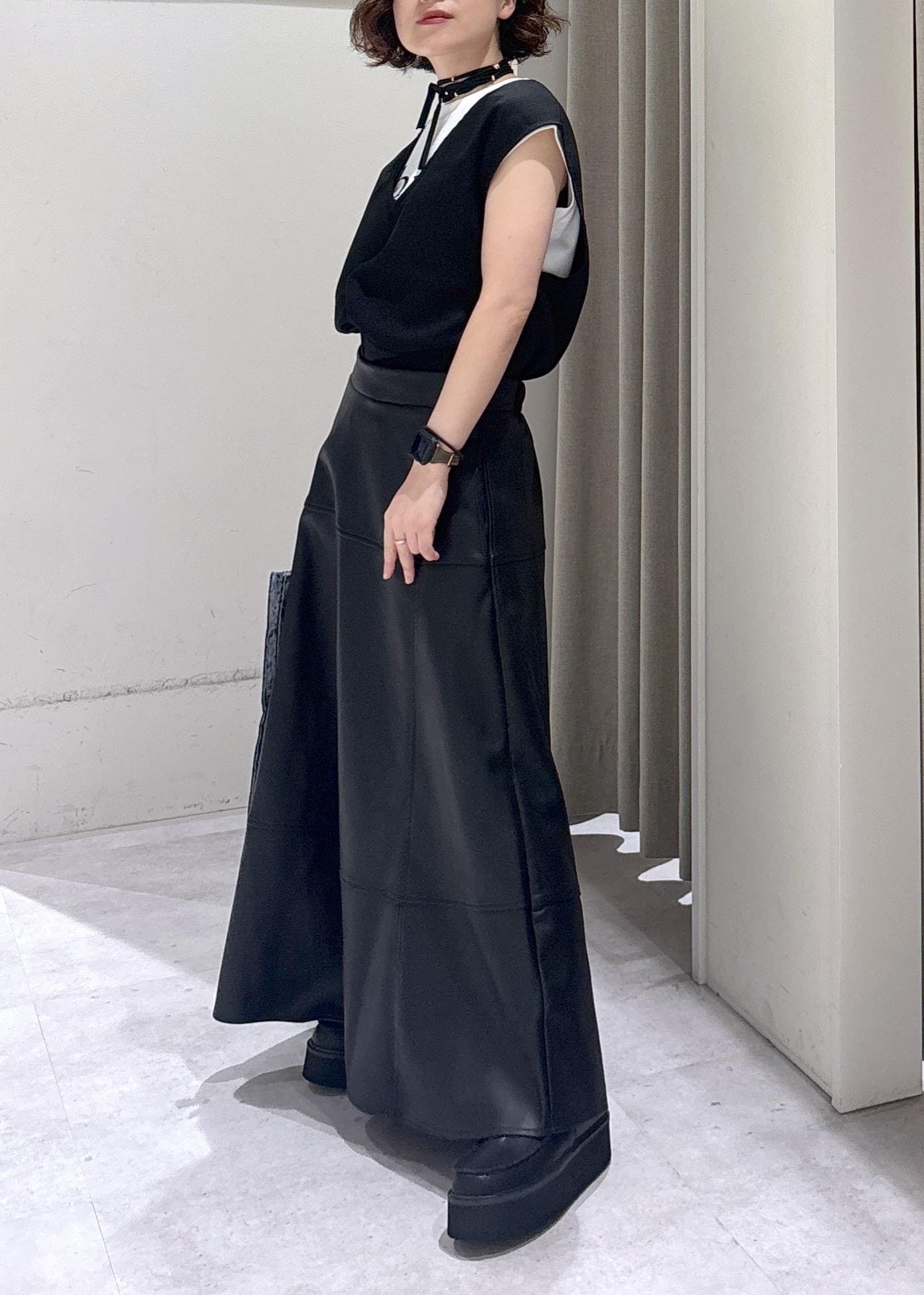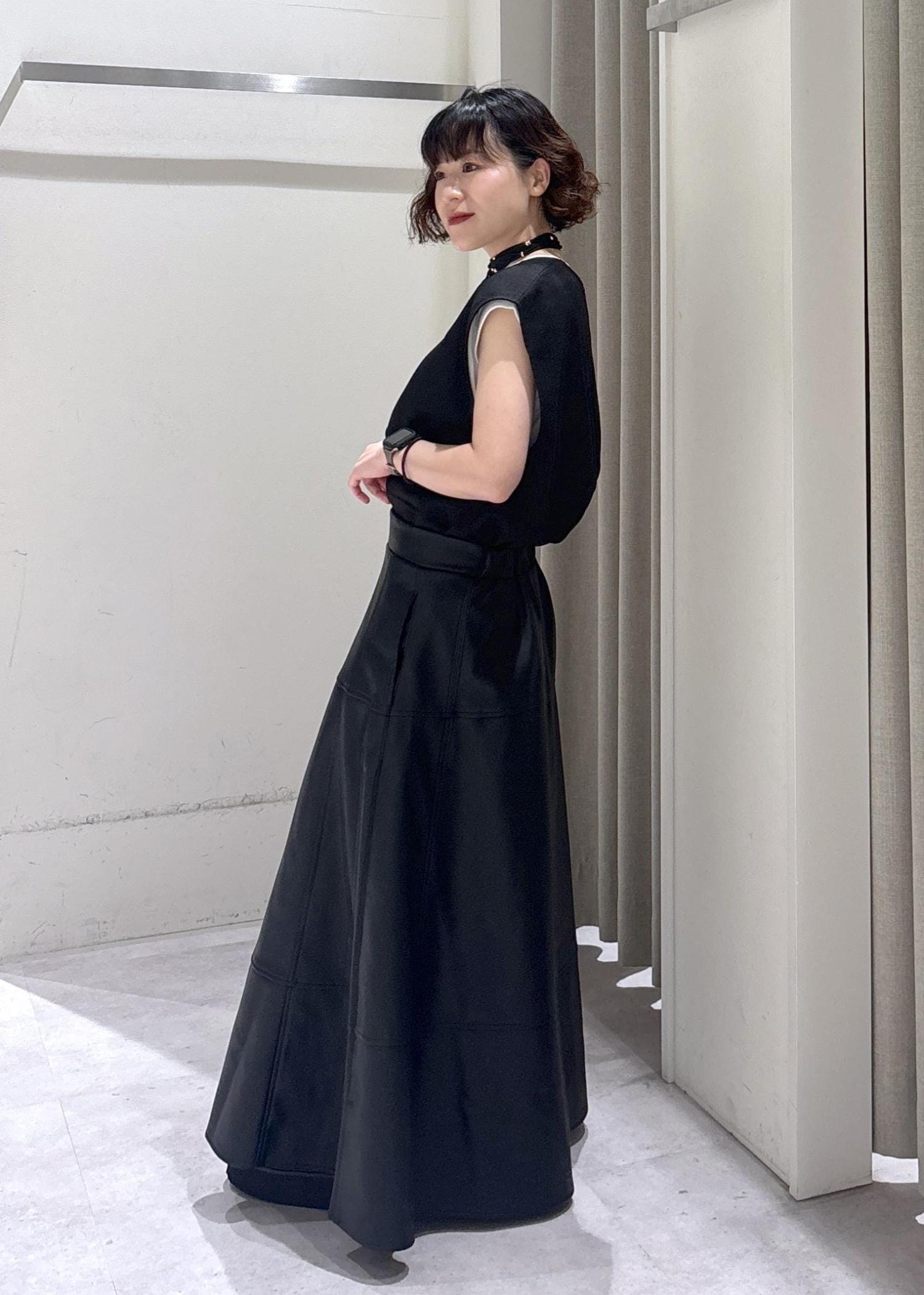 LE CERCLE par ropé【Elisa Novelli】フェイクレザースカートブラック / F¥19,580レビューフレアラインのスカートですが程よい肉感で
