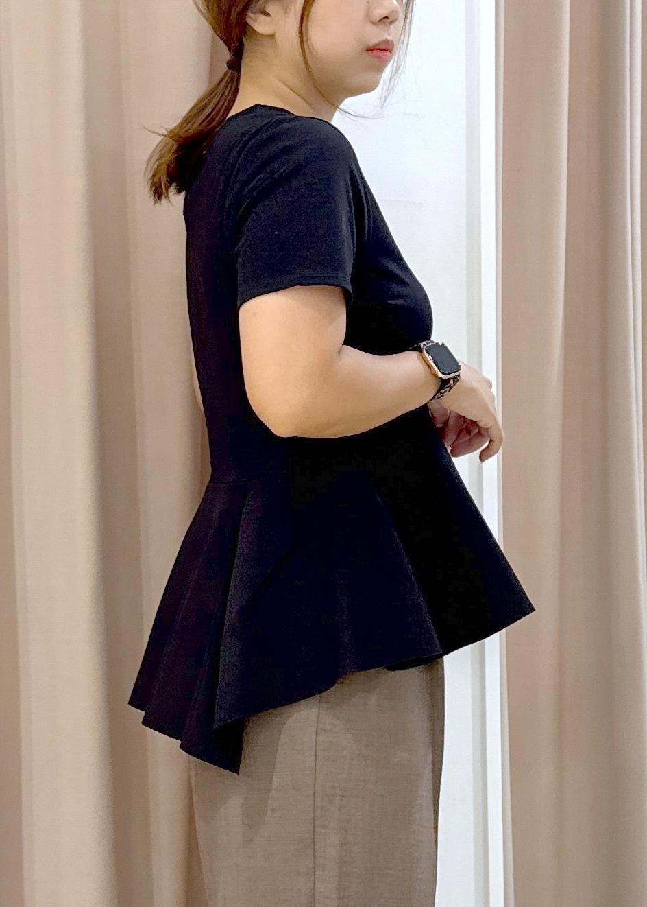 VISイレギュラーヘム異素材ドッキングペプラムプルオーバーブラック / F¥5,049レビューヒップがしっかり隠れる丈感です!