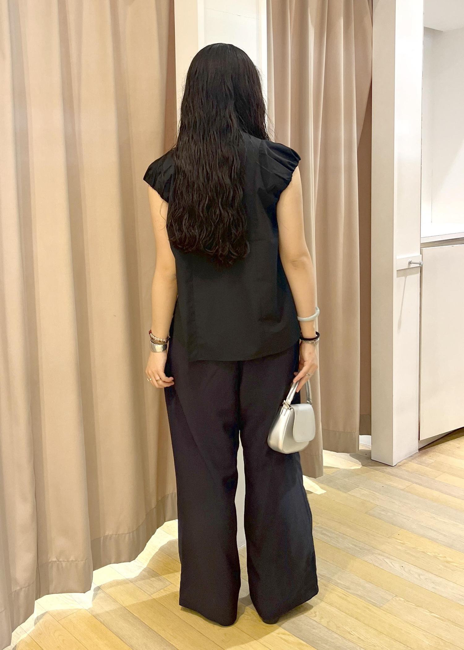 オールブラックで統一感を出し、スタイリッシュなパンツスタイルコーデを組みました♩バックの差し色で程よい抜け感のあるスタイリングにしました