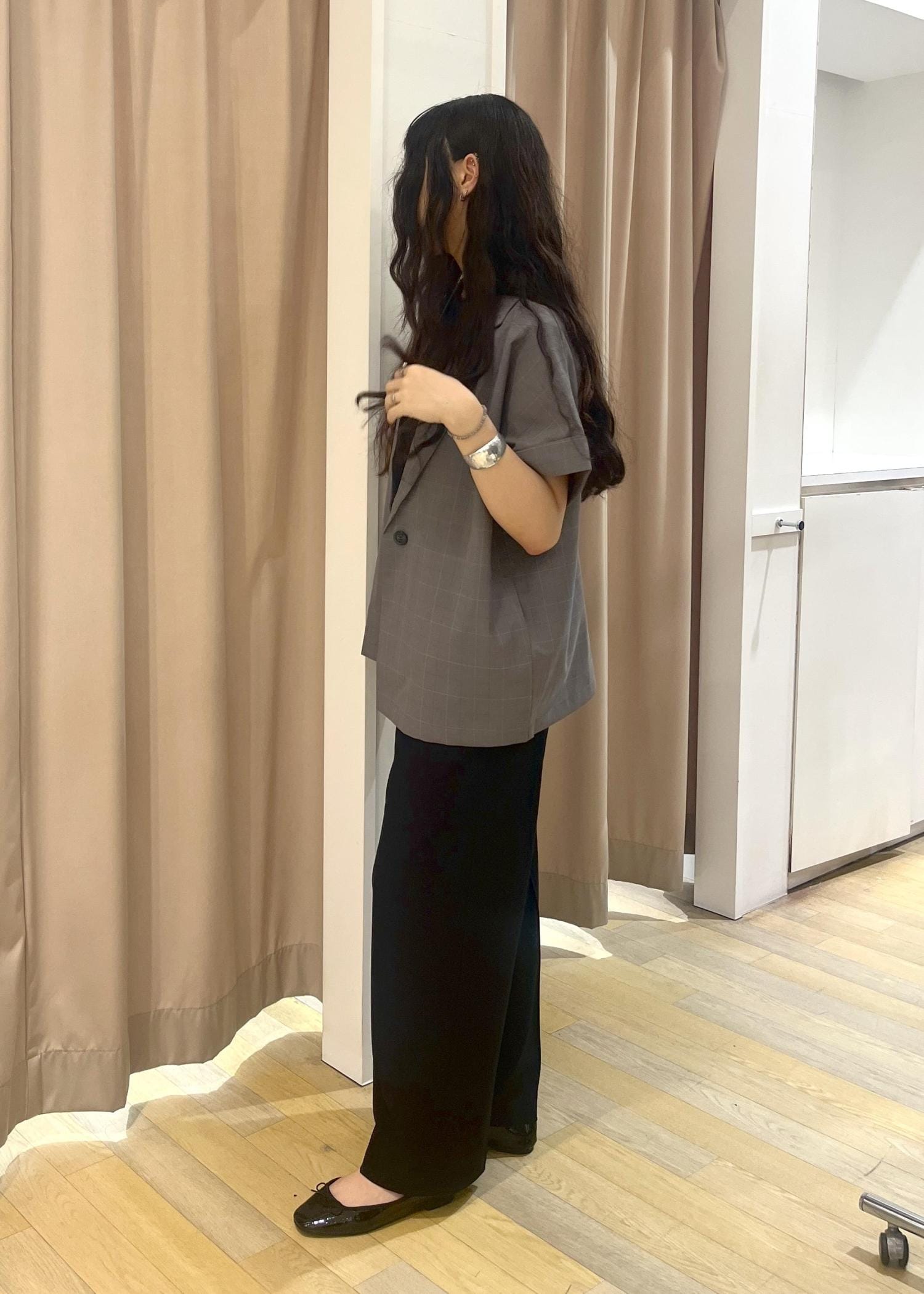 ジャケットとバンツスタイルで、大人カジュアルなコーデを組みました♩ベーシックなスタイリングに可愛らしさをプラスしてくれるチュールのレイヤード風トップスを合わせました!