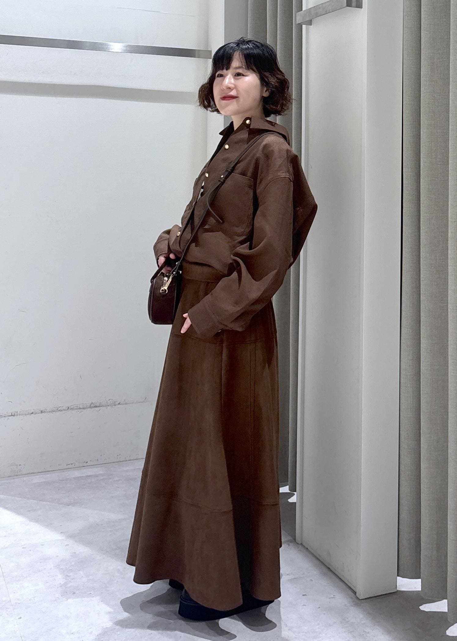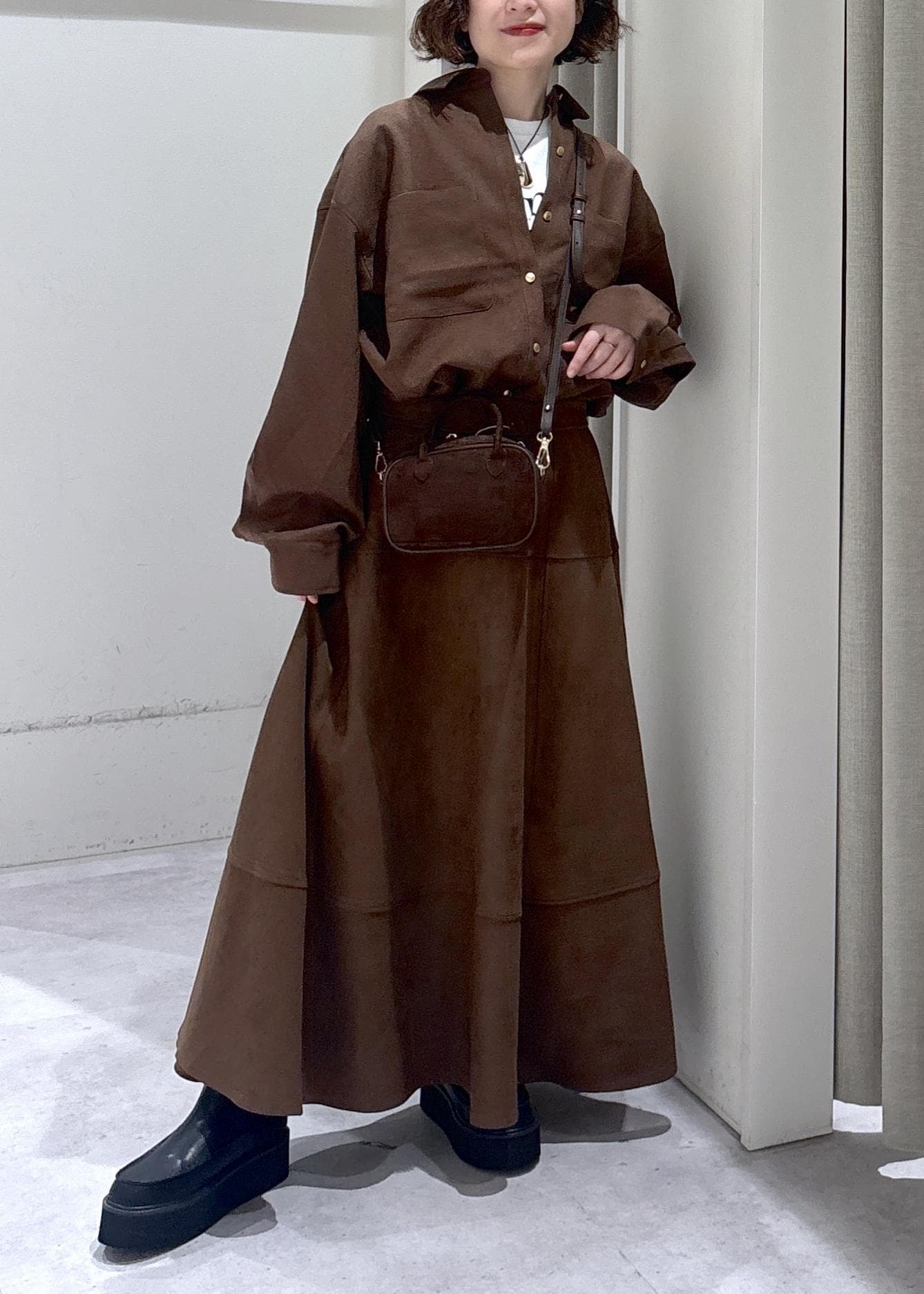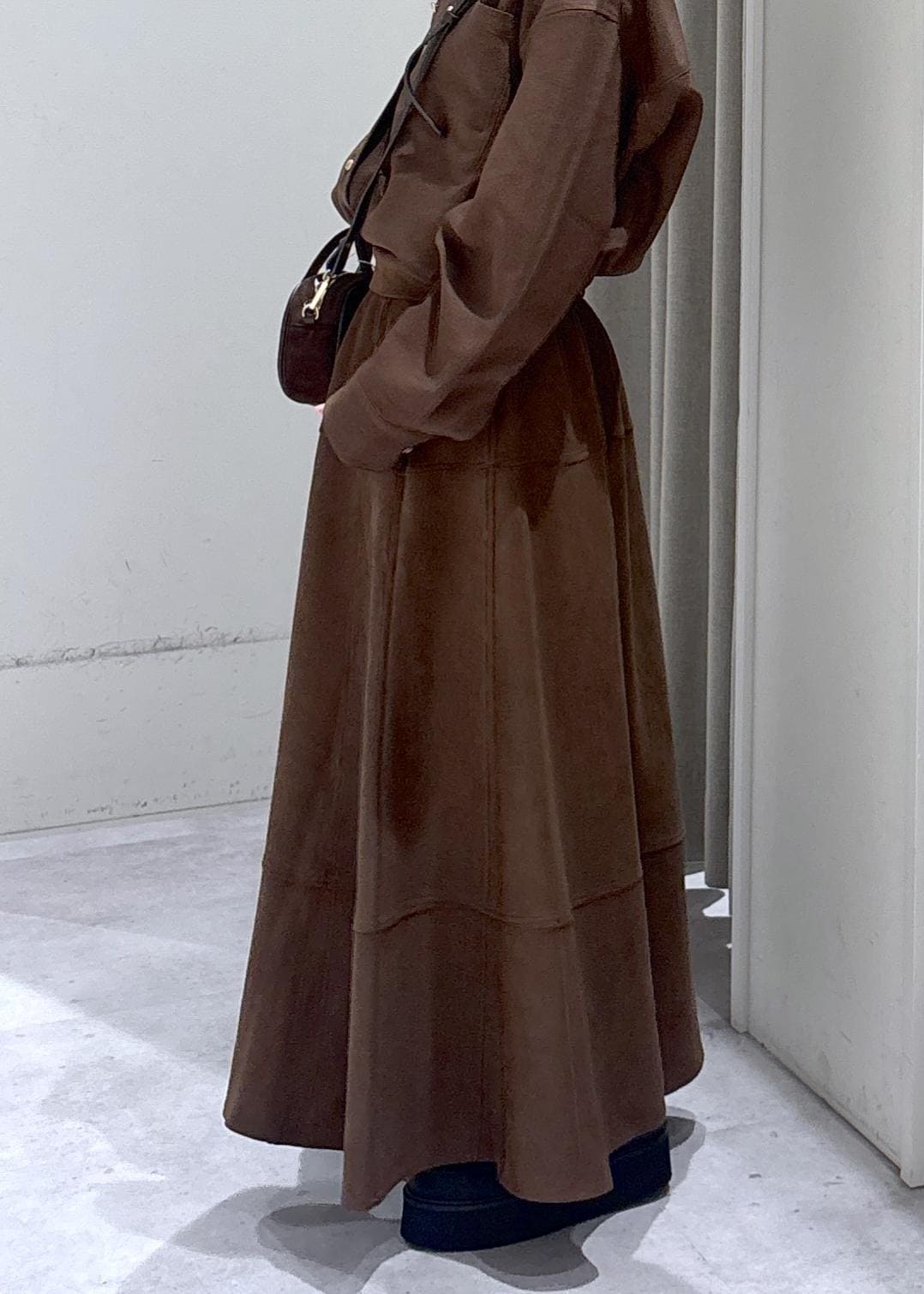 LE CERCLE par ropé【Elisa Novelli】フェイクスエードパネルスカートブラウン / F¥16,500レビューウエストまわりスッキリで裾にいくにつれフレアになり、スタイルアップ間違いなしのアイテムです!