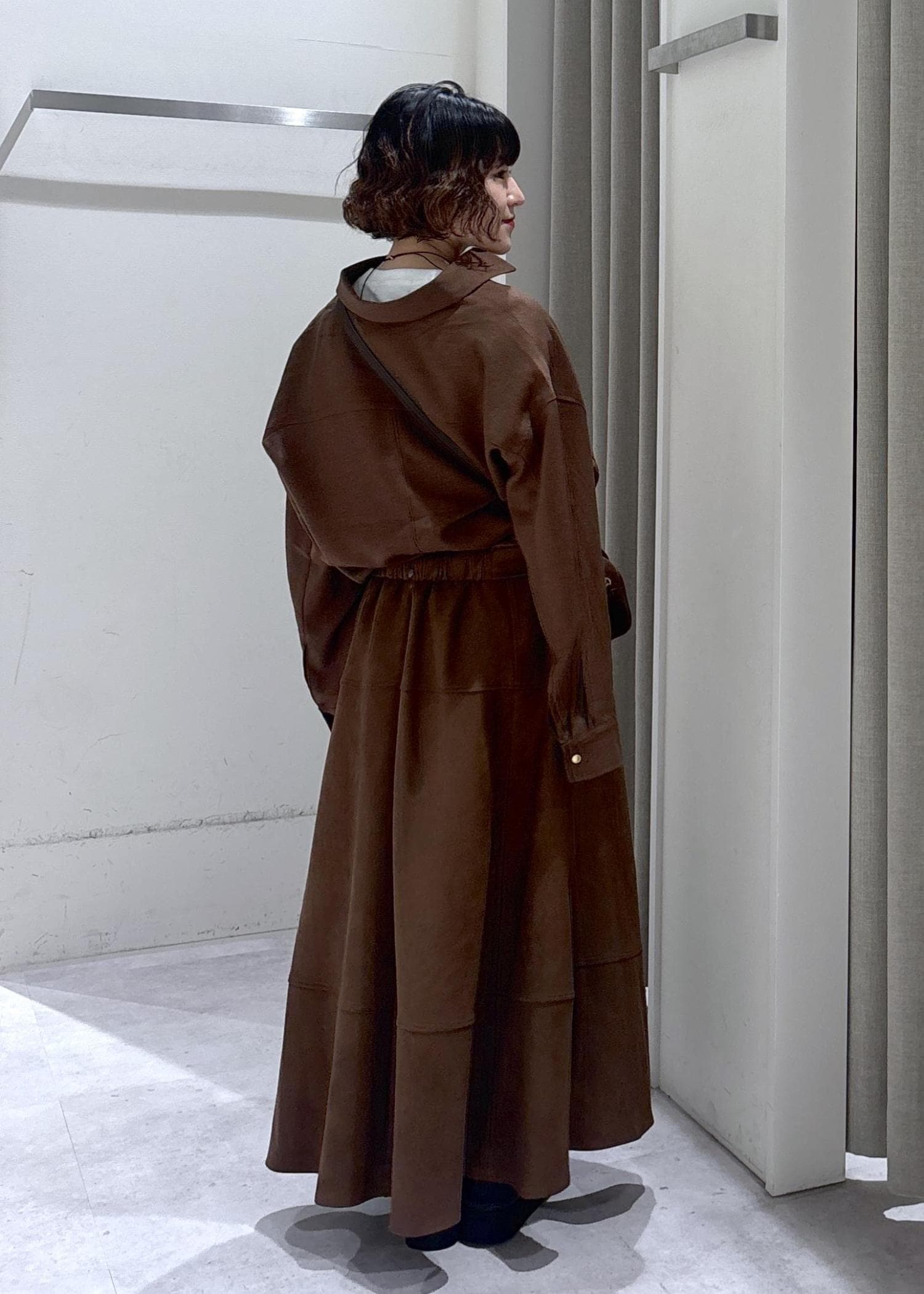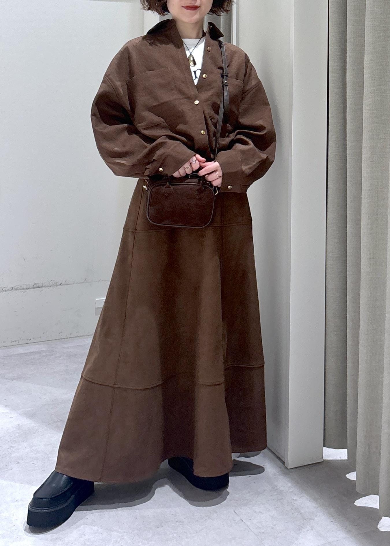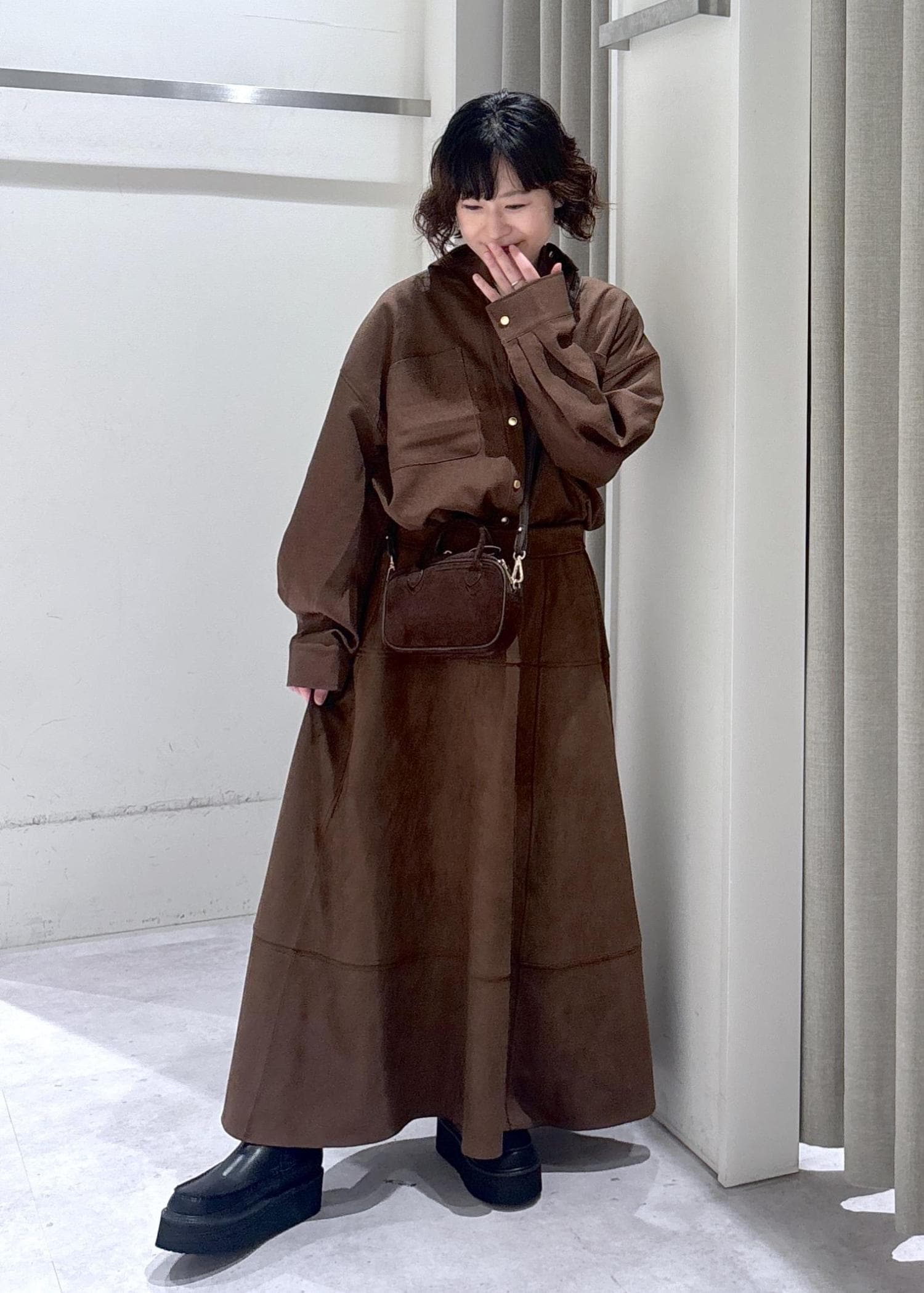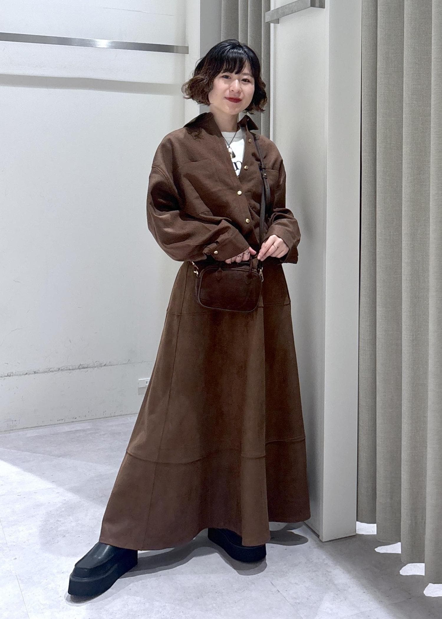 LE CERCLE par ropé【Elisa Novelli】フェイクスエードパネルスカートブラウン / F¥16,500レビューウエストまわりスッキリで裾にいくにつれフレアになり、スタイルアップ間違いなしのアイテムです!