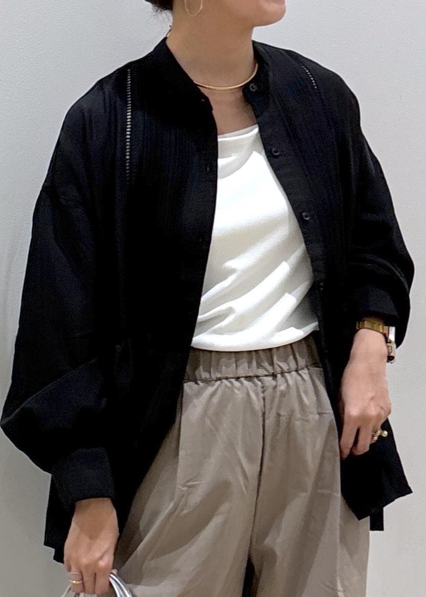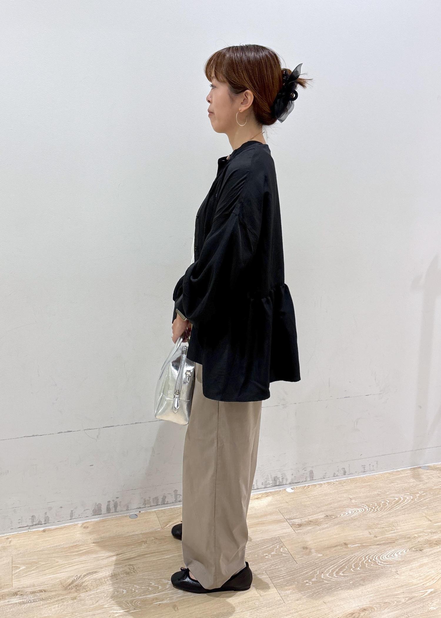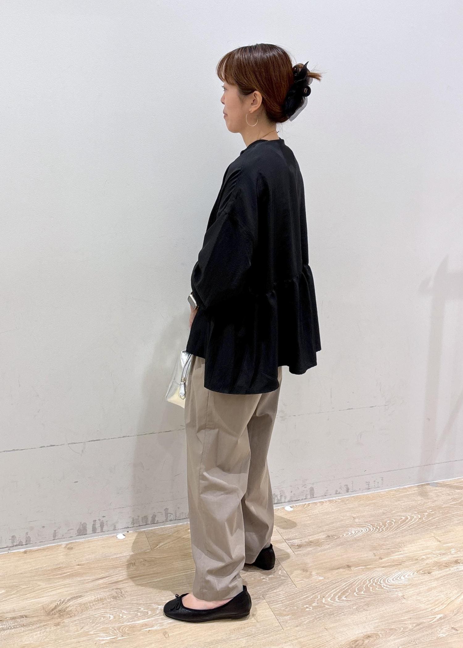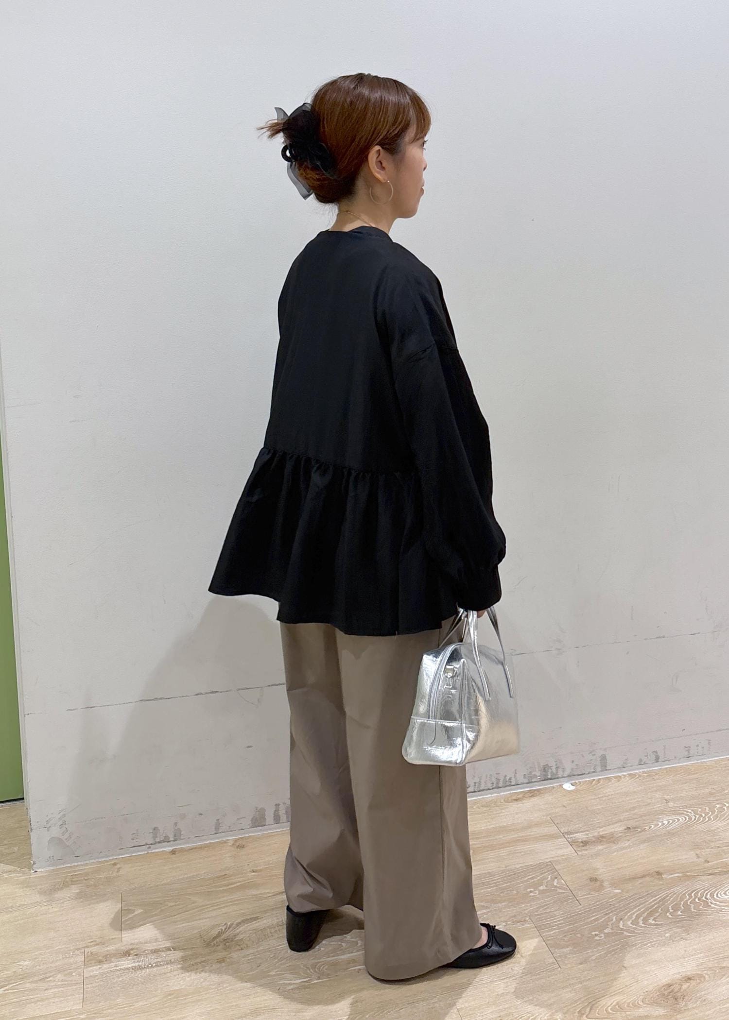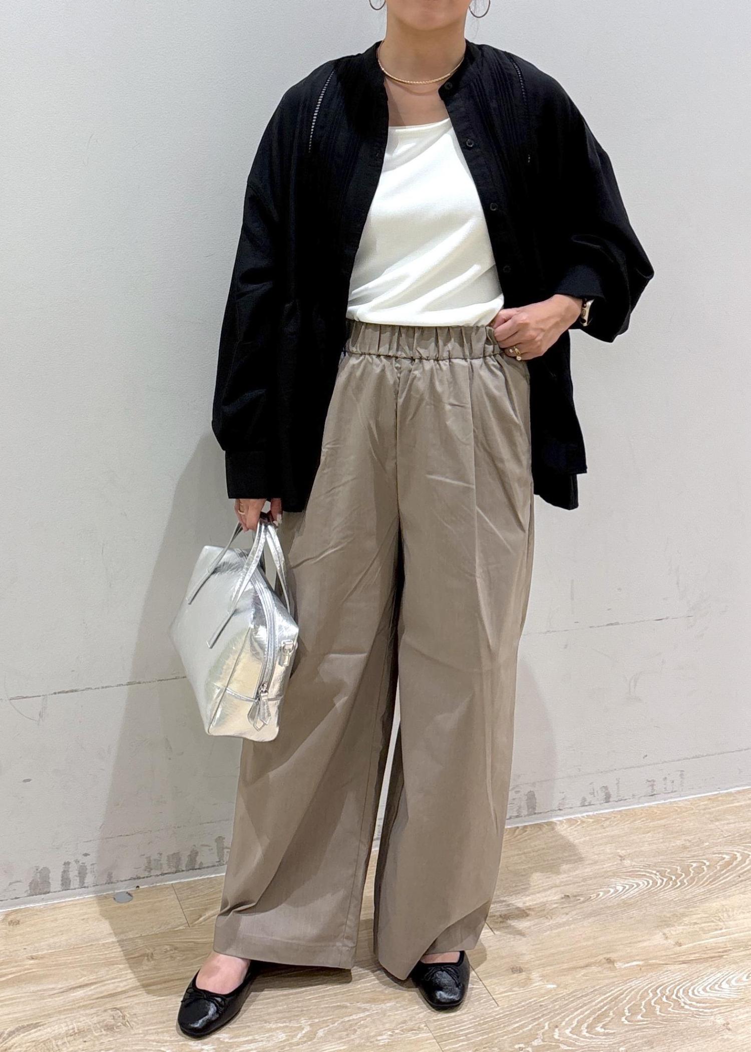 ゆったりとしたワイドパンツに、モノトーンでまとめました。