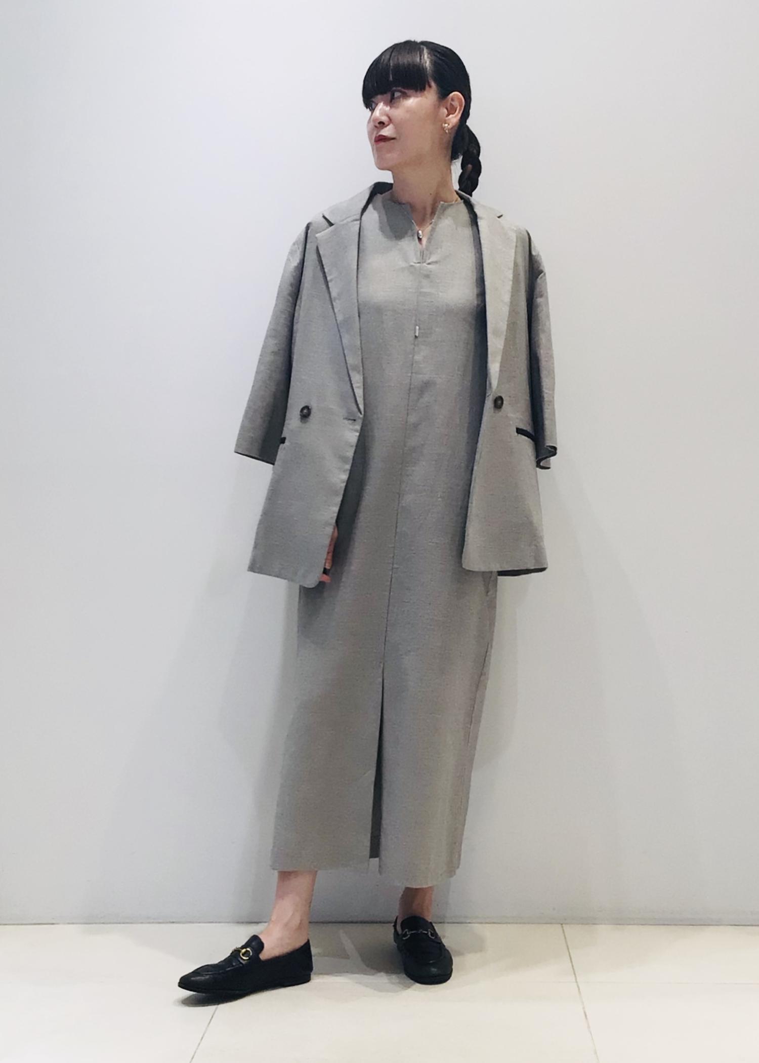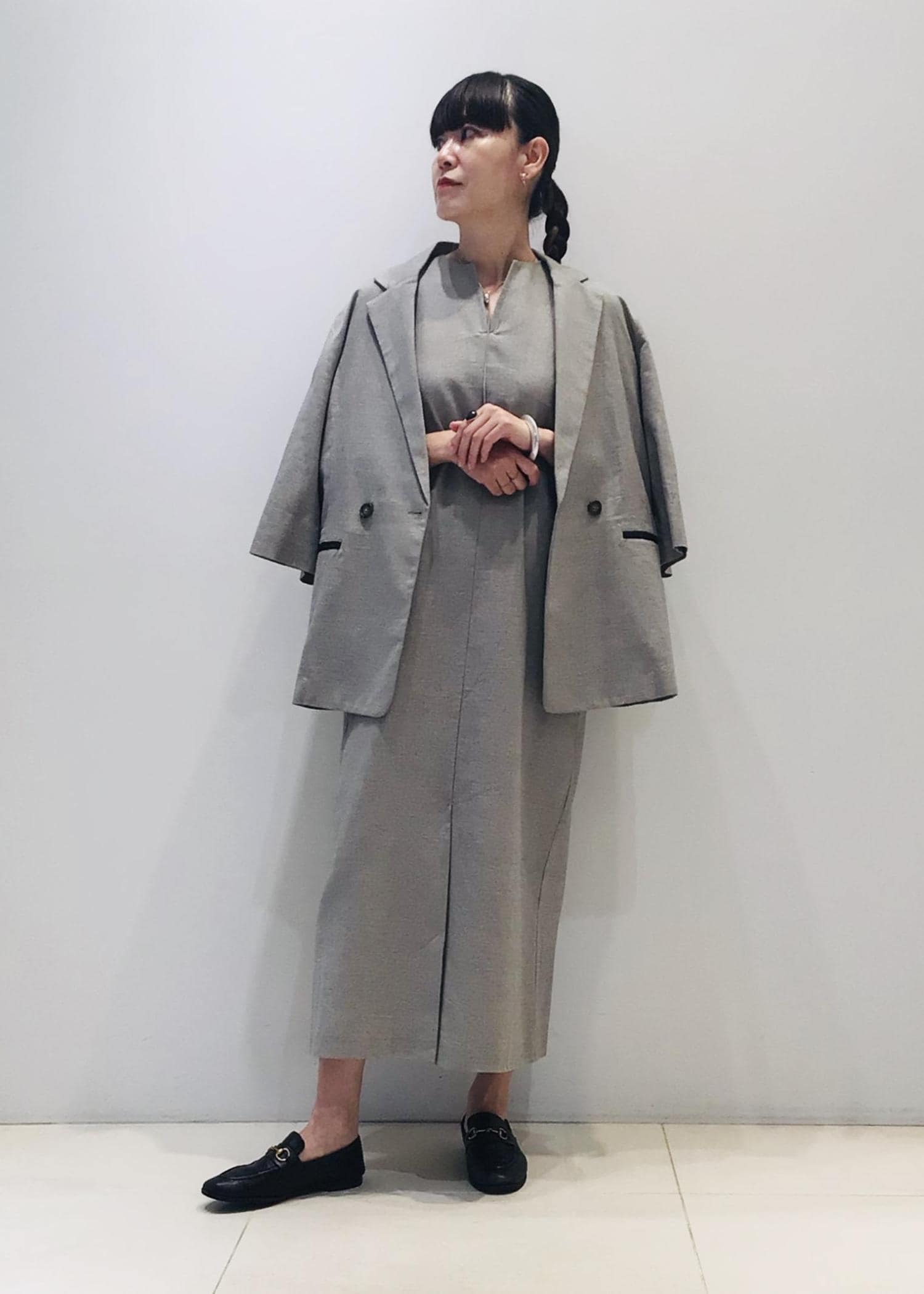 麻混のサラッとした質感が心地良い薄手のサマーツイードジャケットとワンピをセットアップで着てみました