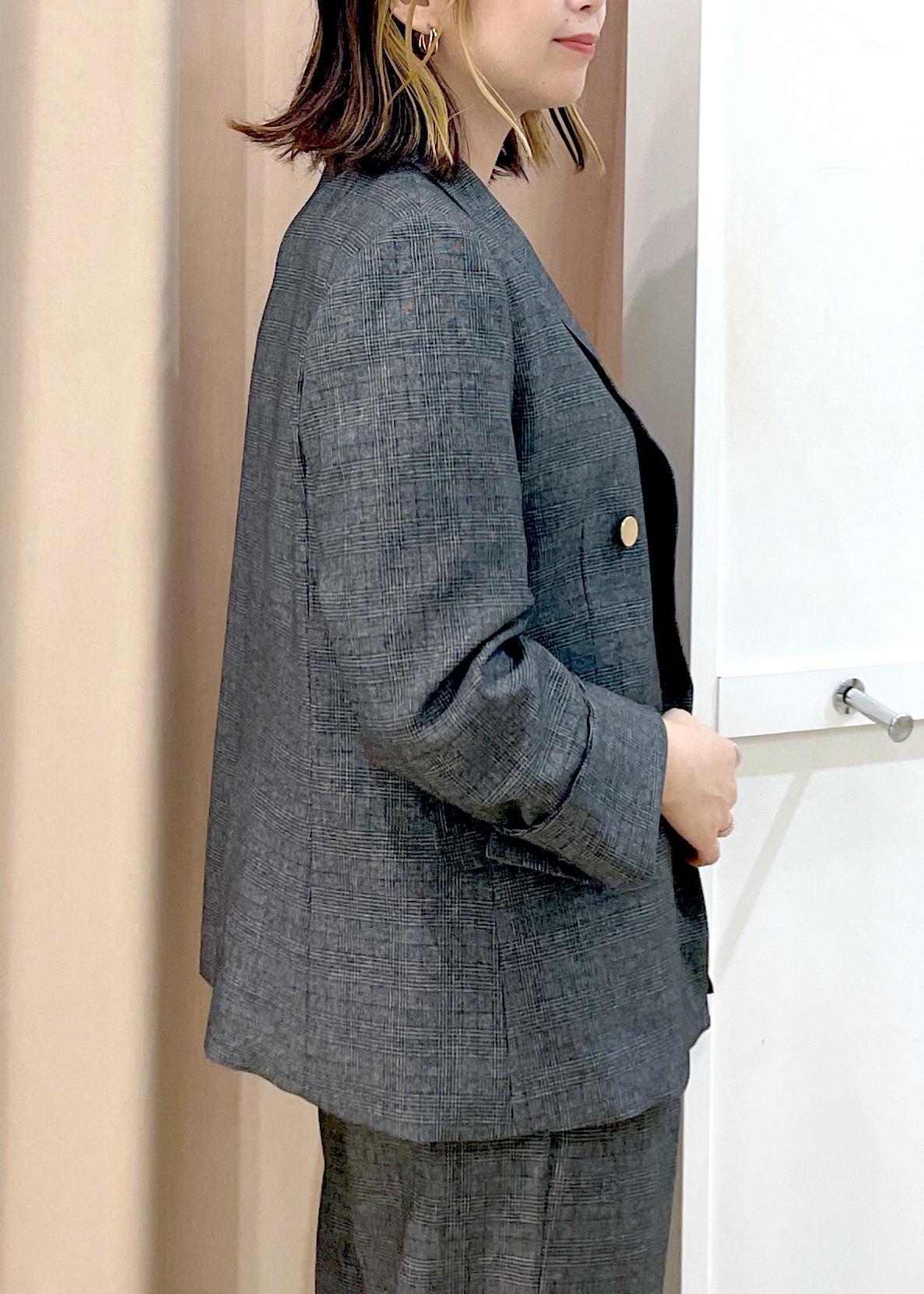 ジャケットは半分のみの裏地で、早い段階で着用しやすいアイテム◎