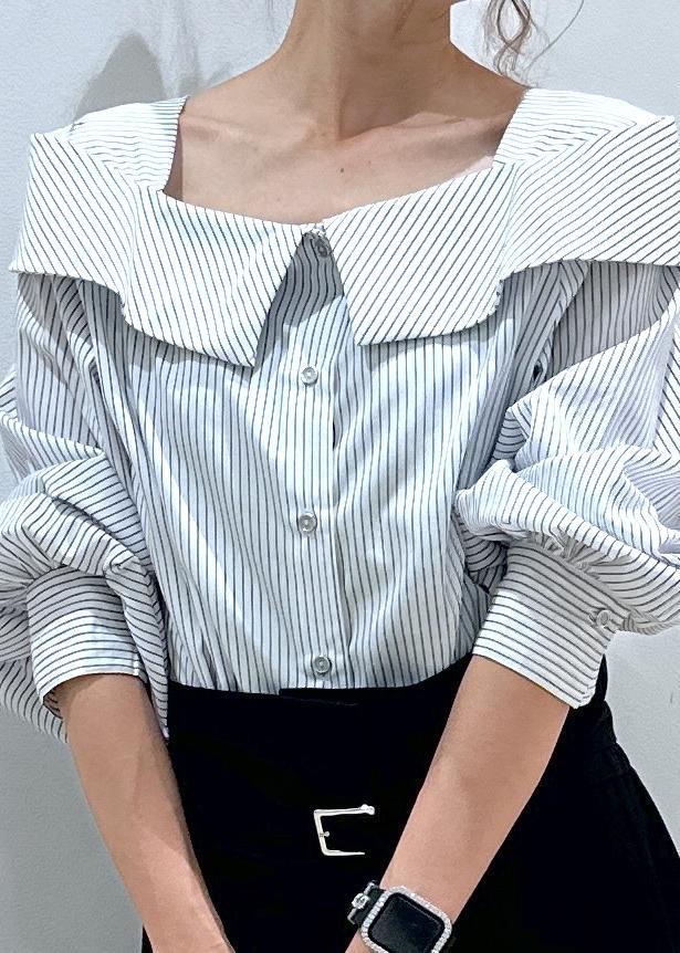 デコルテ綺麗見えストライプブラウス
