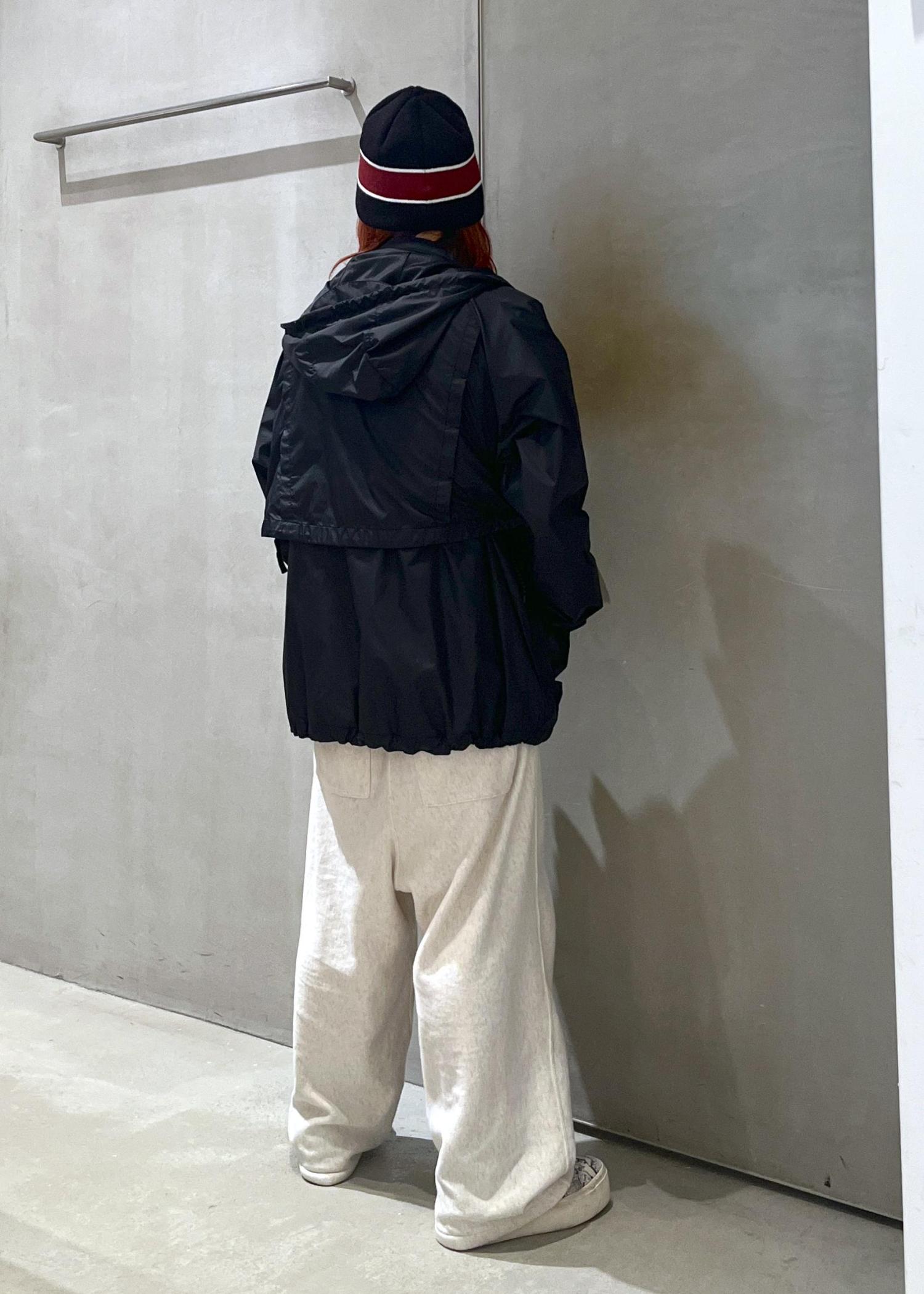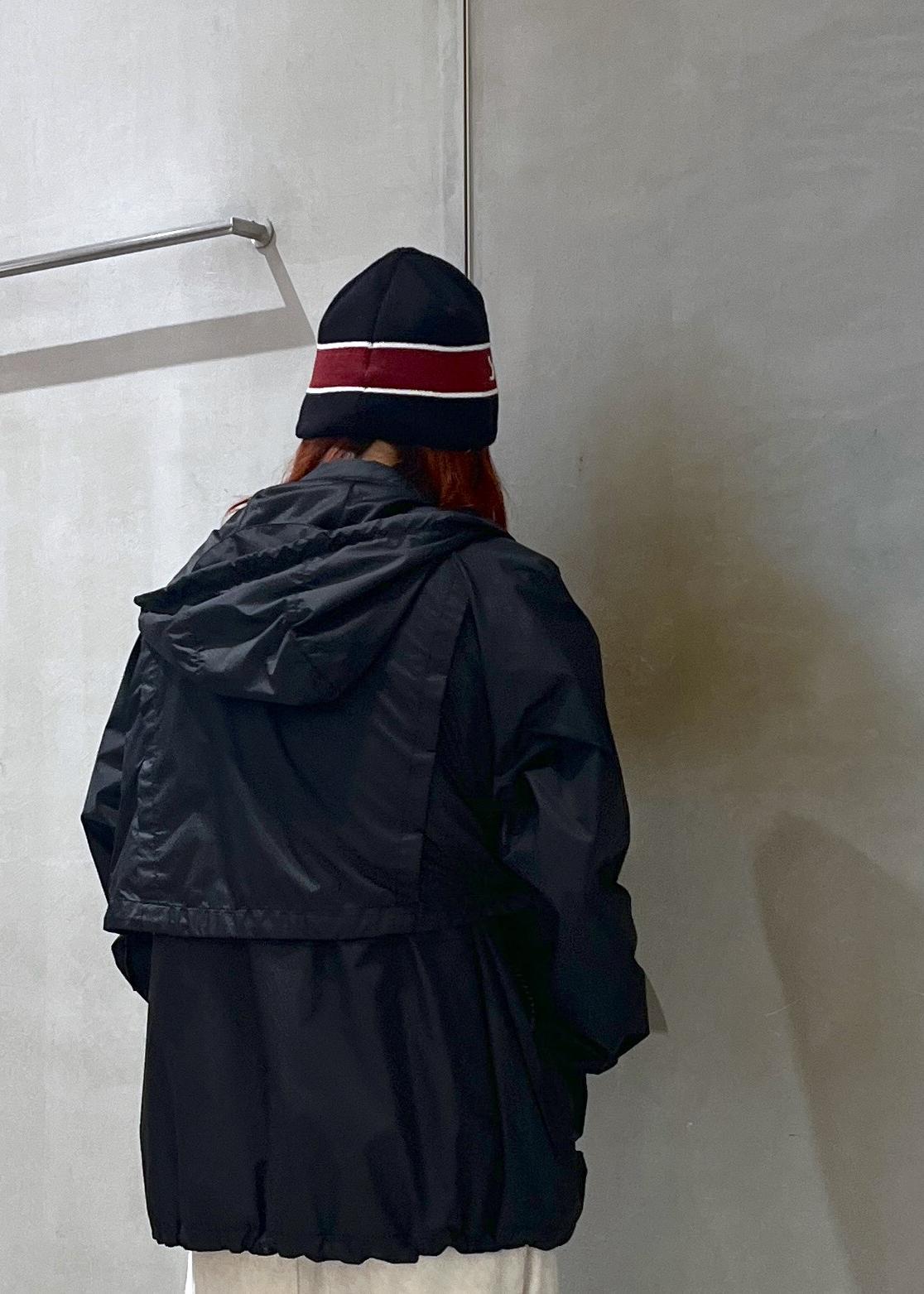 ショート丈のフードジャケット、ベストになるのでロングシーズン着用出来ます。