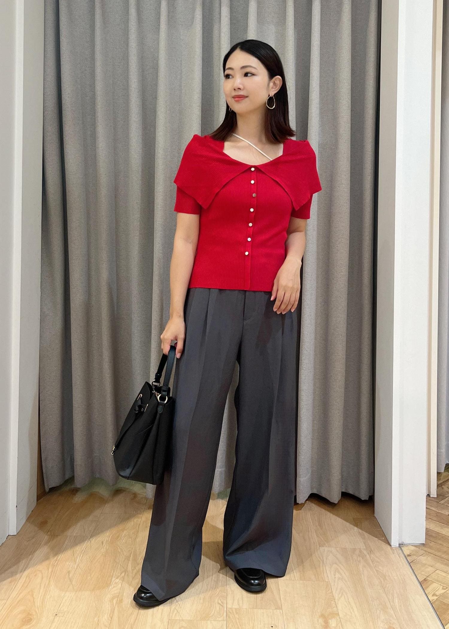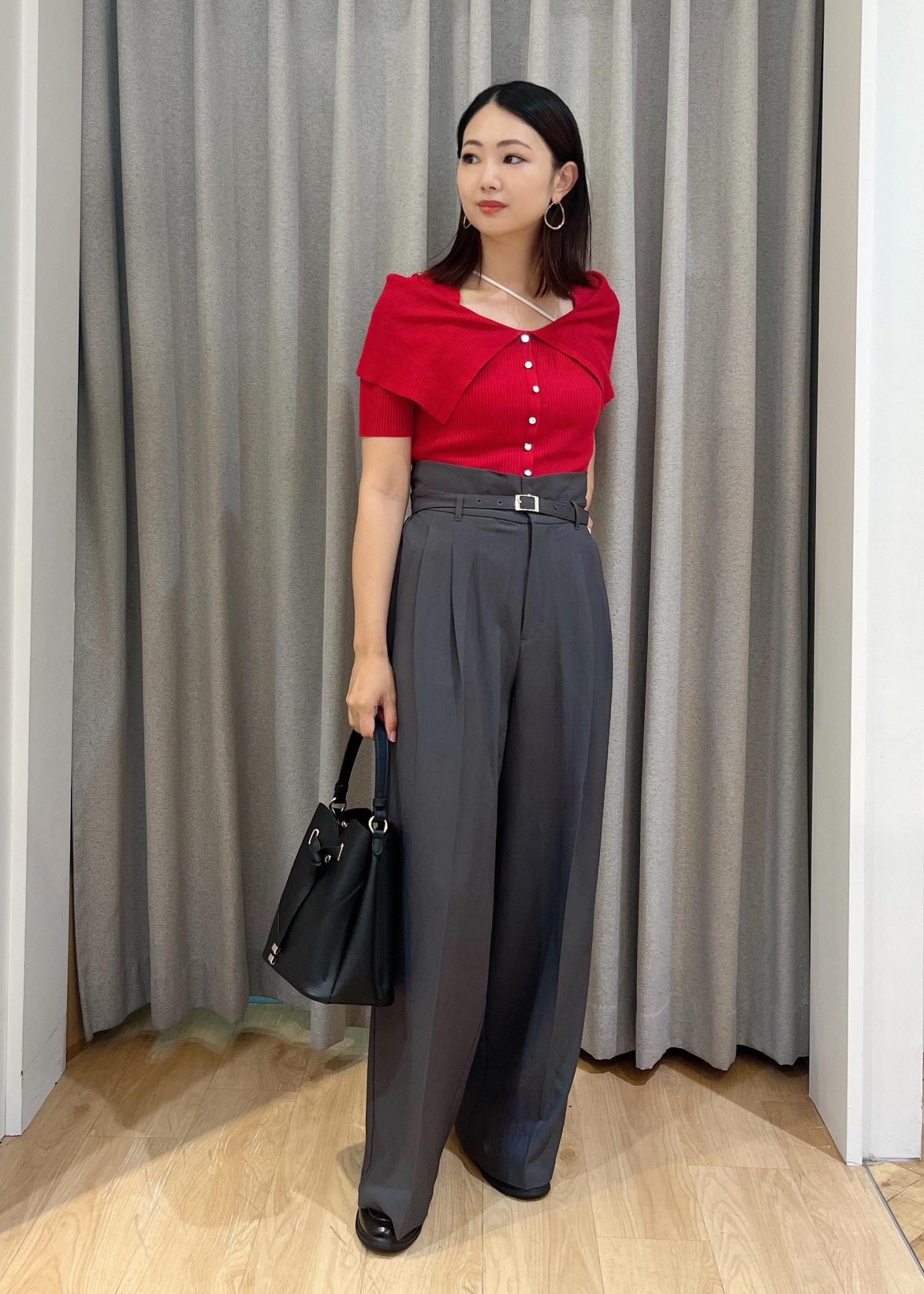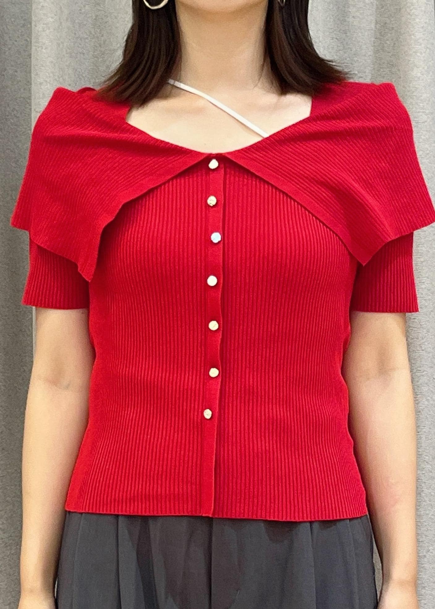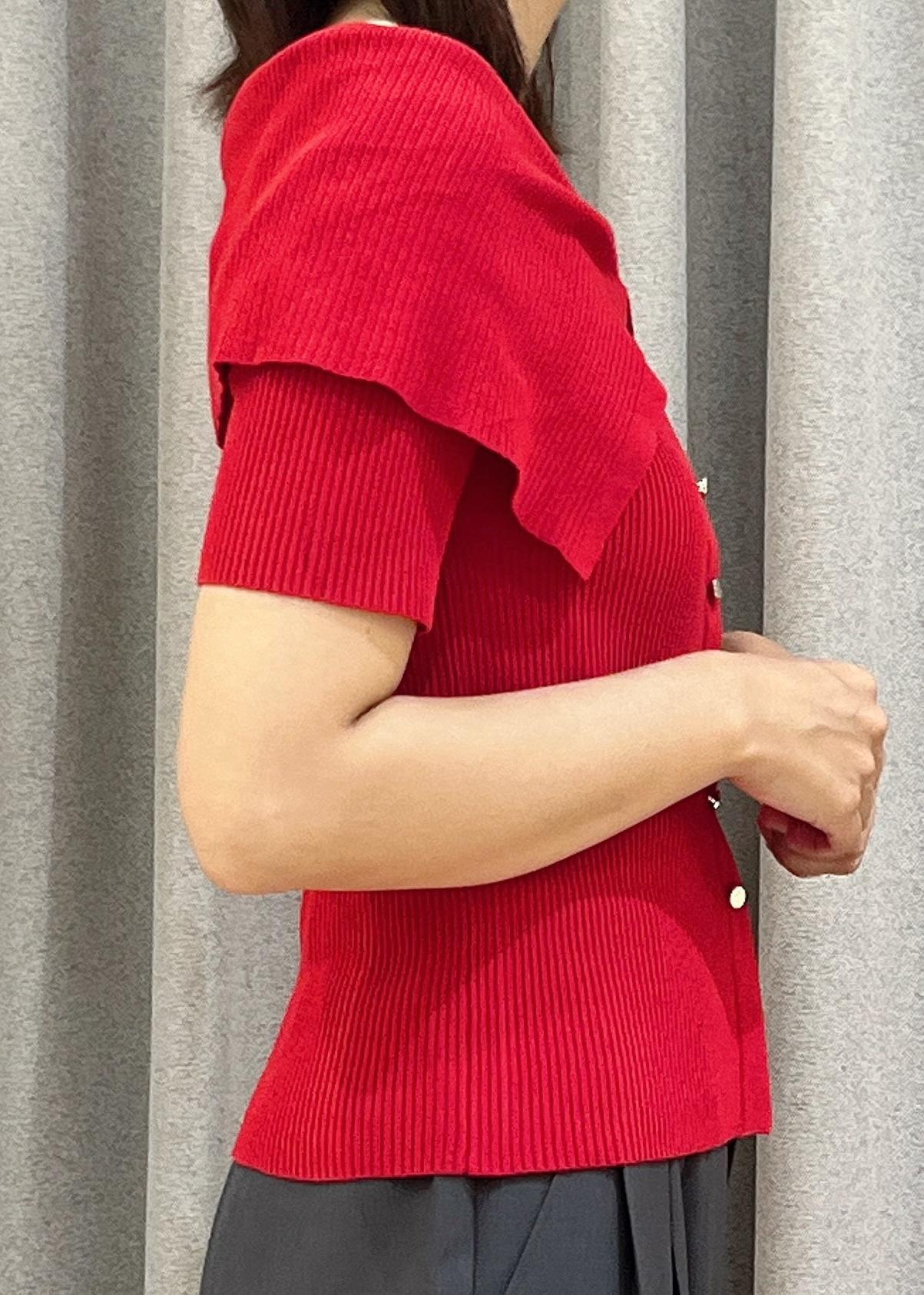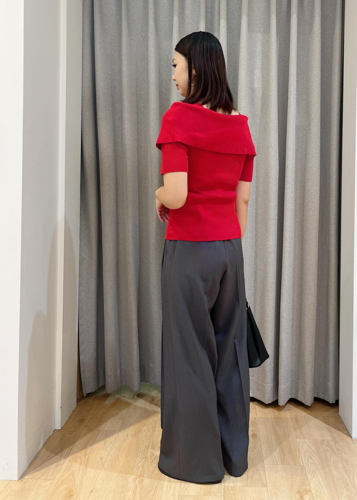 VISビックカラーオフショルハーフスリーブニットレッド / F¥2,963レビュー薄手のニットで今の時期にピッタリ。チクチク感もありません。着丈はおへそ辺りです。