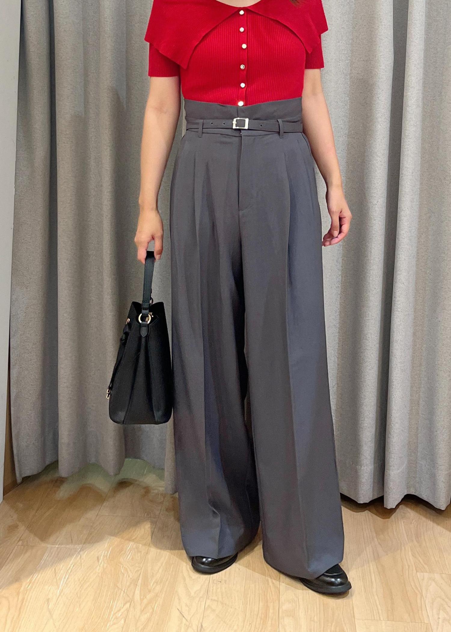 VIS【新色追加】【防シワ/接触冷感】ベルトディテールタックワイドスラックスパンツチャコール / M¥6,589レビューサラッとしていて接触冷感機能付きなのでとても涼しいです。Mサイズでウエスト周りピッタリで着丈は足首あたりです。