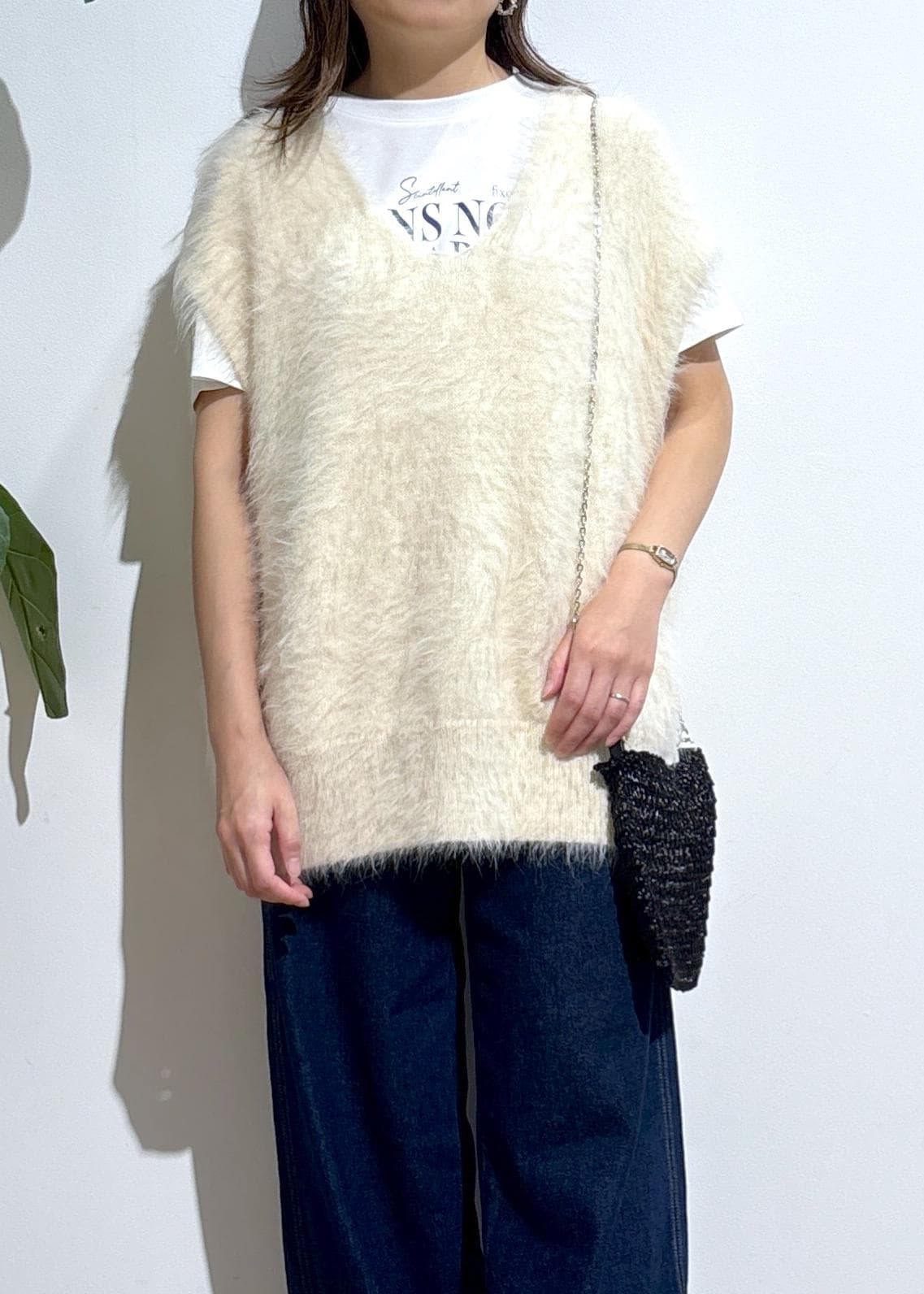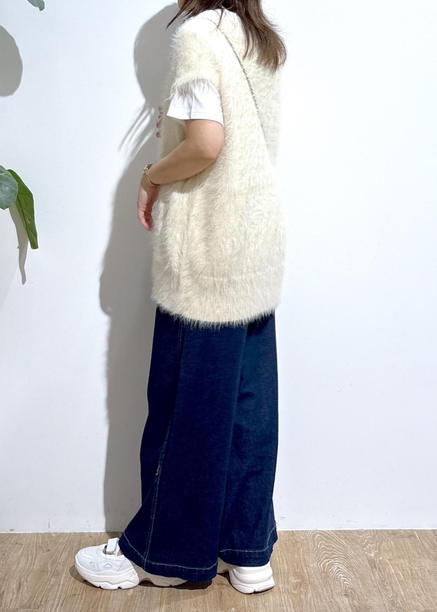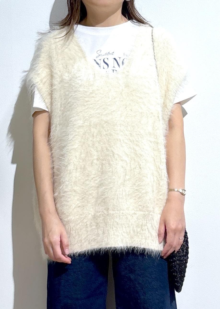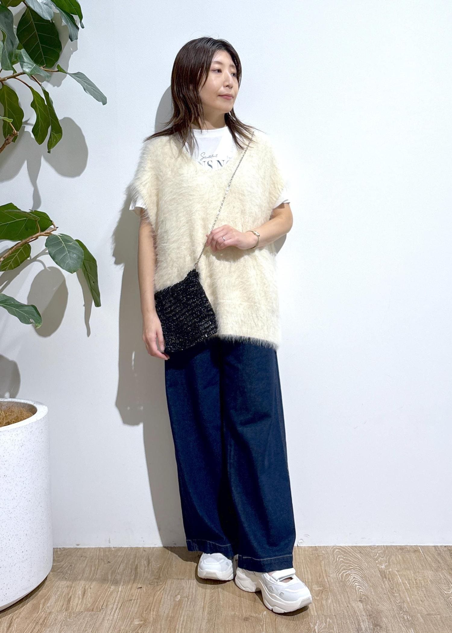 毛足のあるシャギーニットですが、素肌に触れてもチクチク感はなく柔らかい着心地でした♩