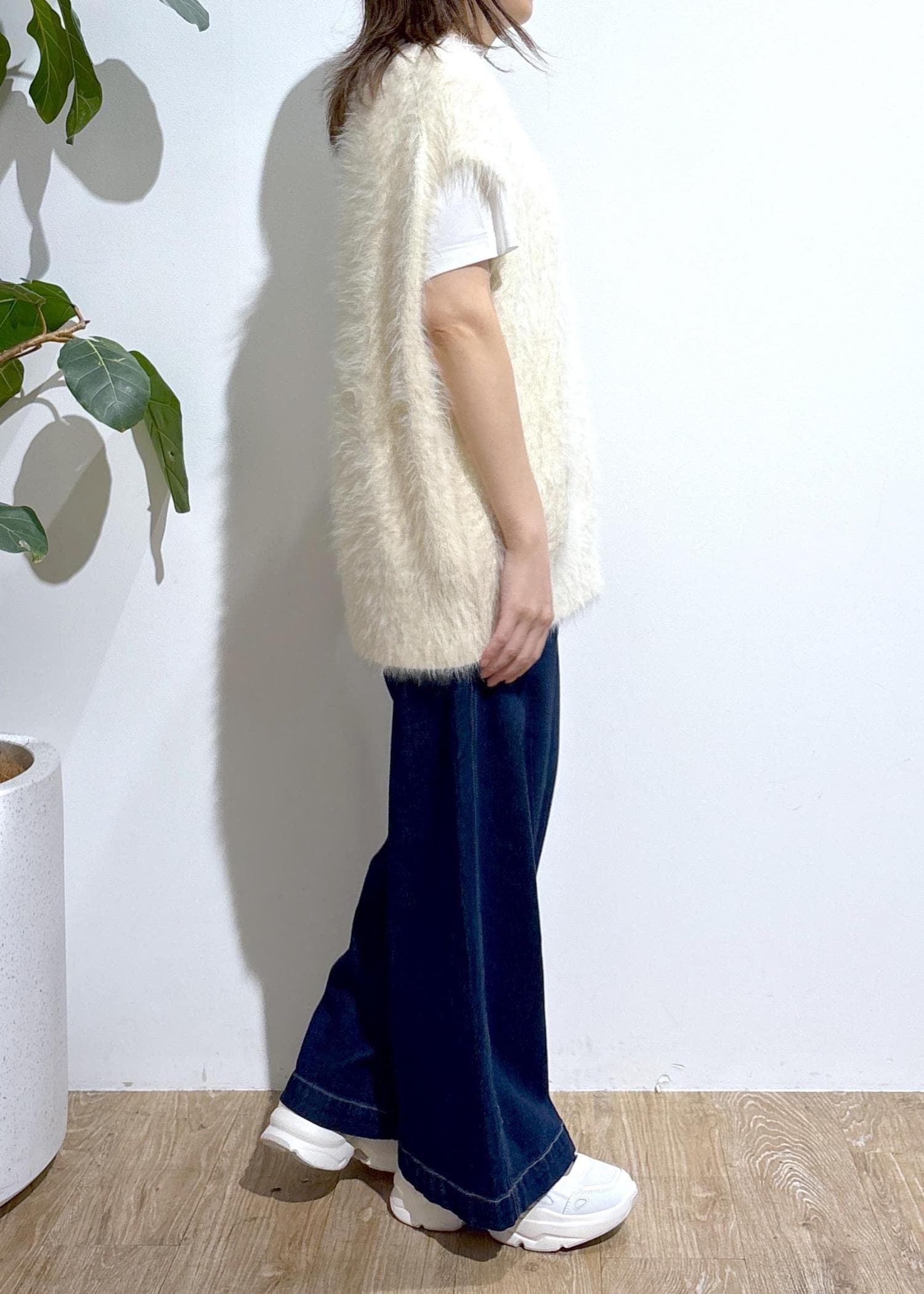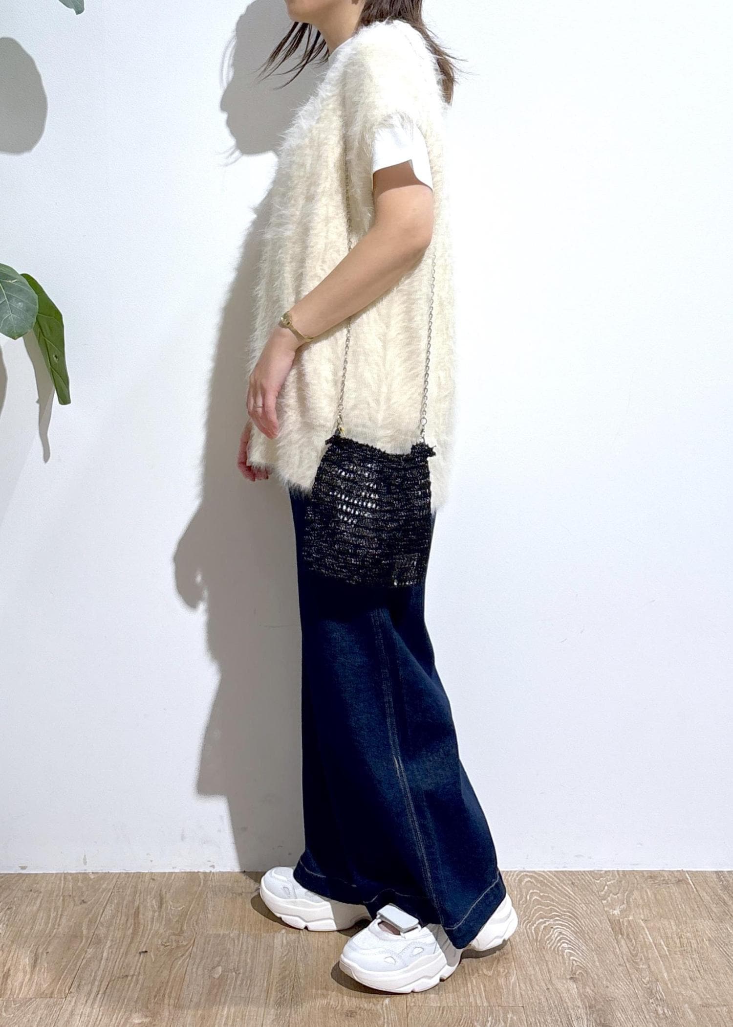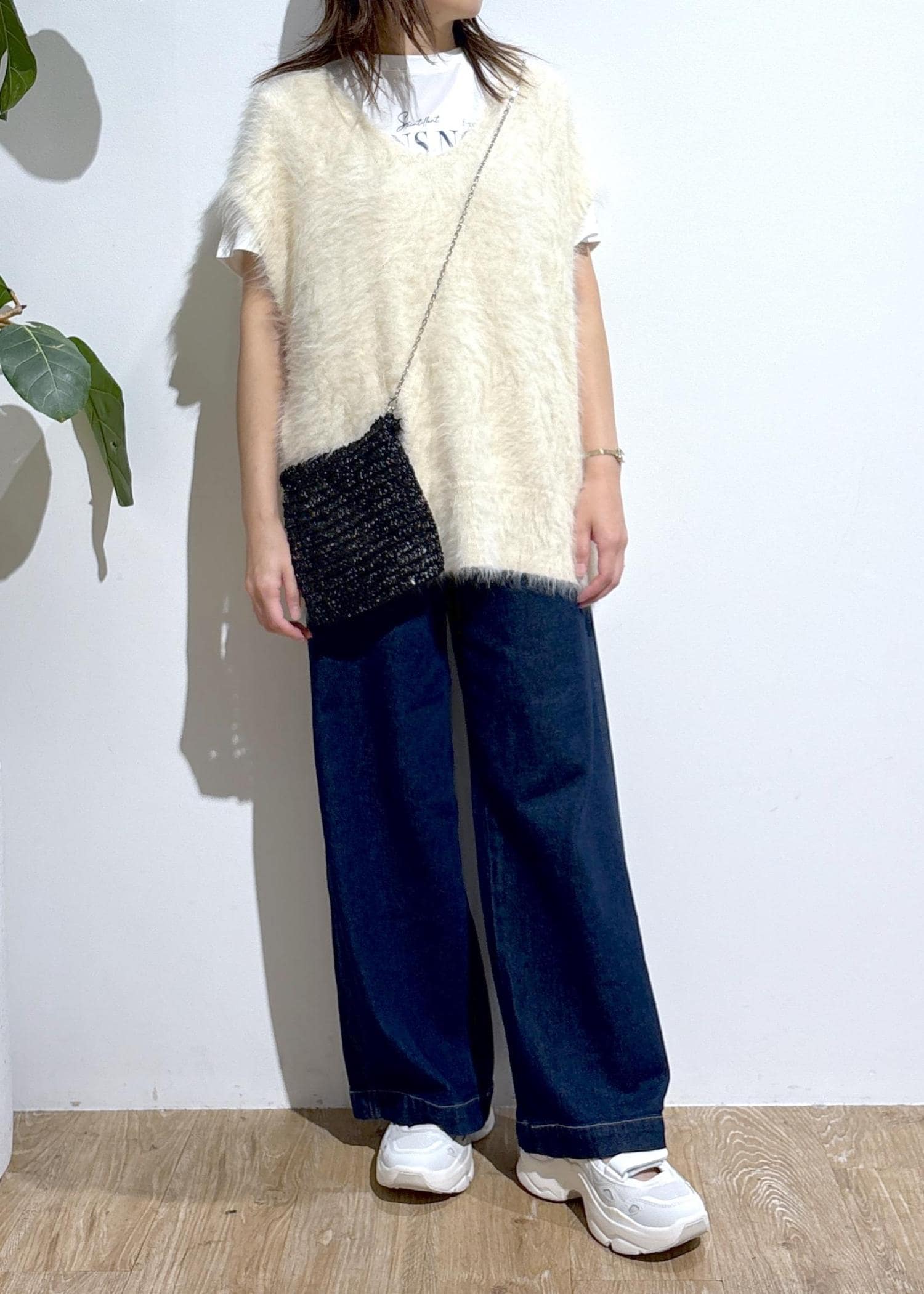 毛足のあるシャギーニットですが、素肌に触れてもチクチク感はなく柔らかい着心地でした♩