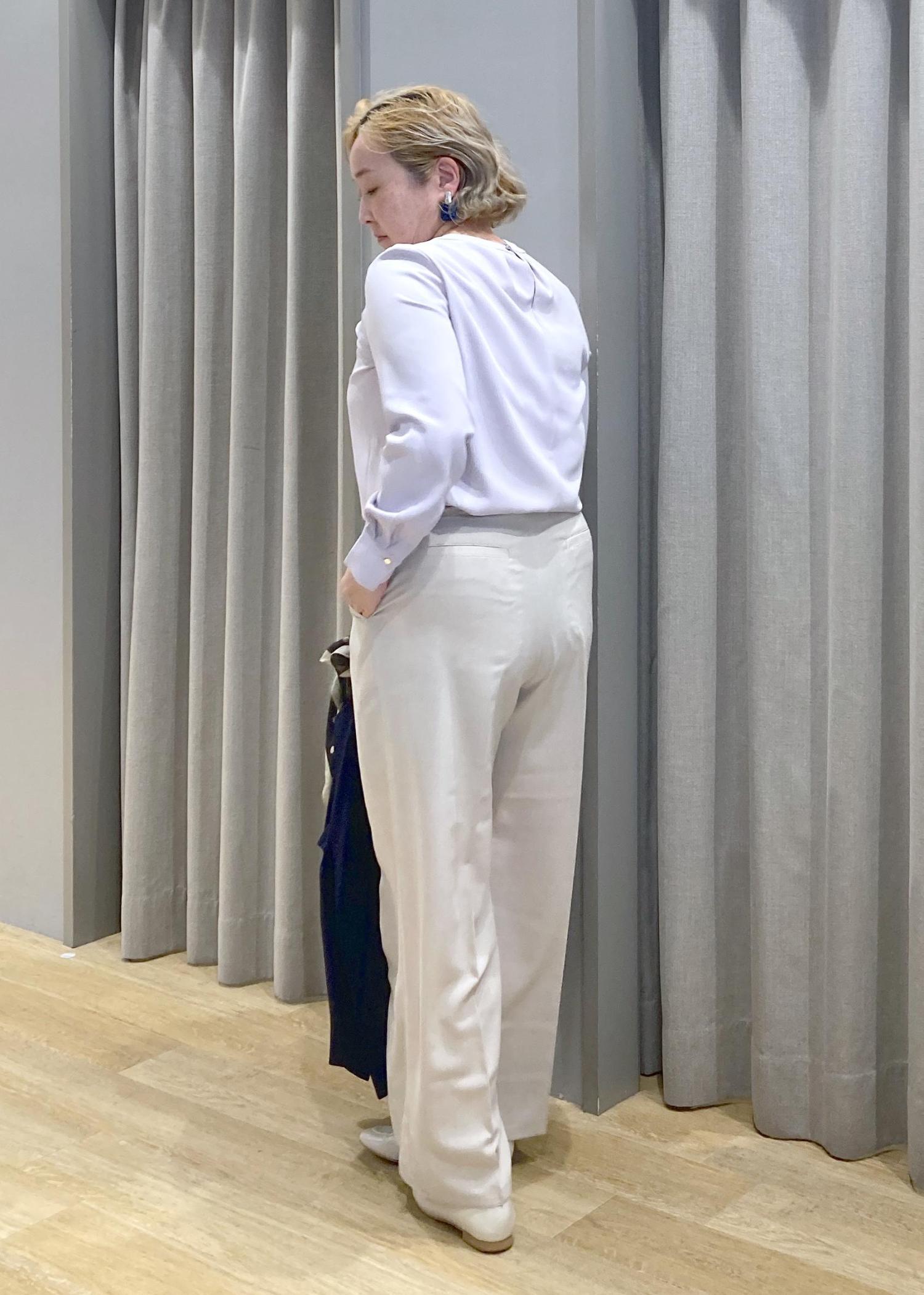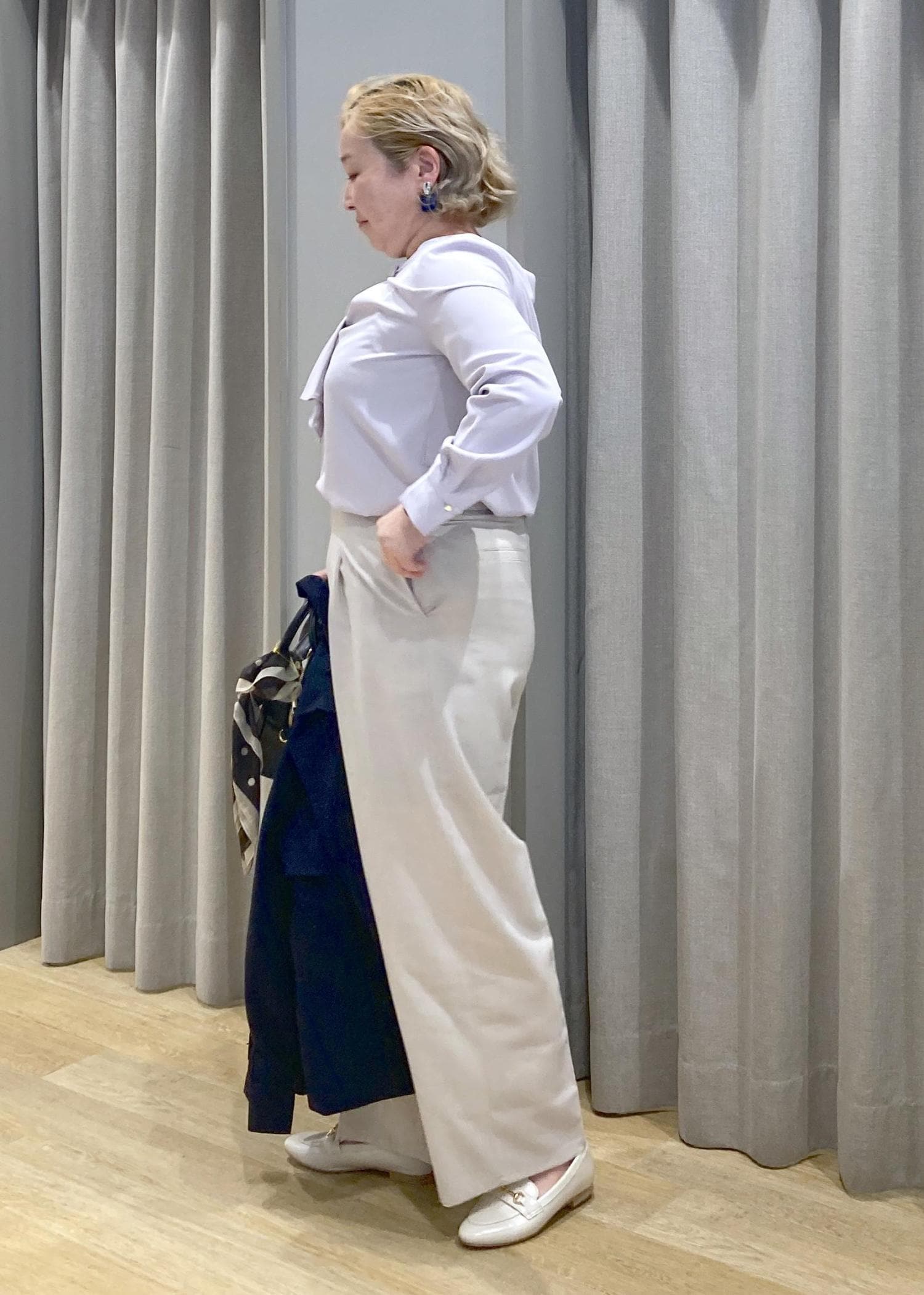 ハイウエストに細ベルトがついてるのでマークアップすることができるのもいいところです -
