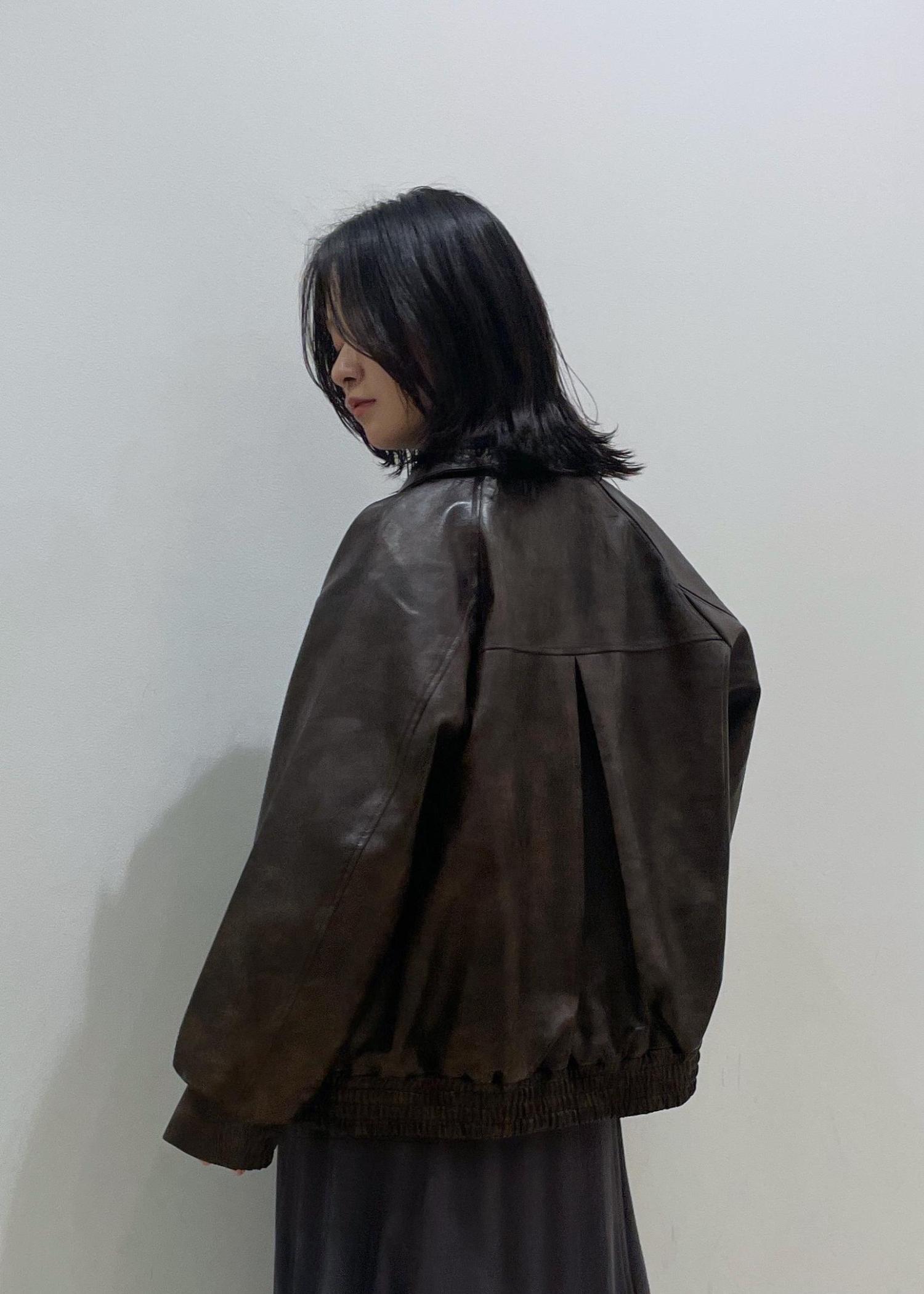 VIS合皮&スエードライクジップアップブルゾンダークブラウン / F¥10,989レビュー程よいヴィンテージ感とツヤで、着るだけで大人っぽく決まります!!