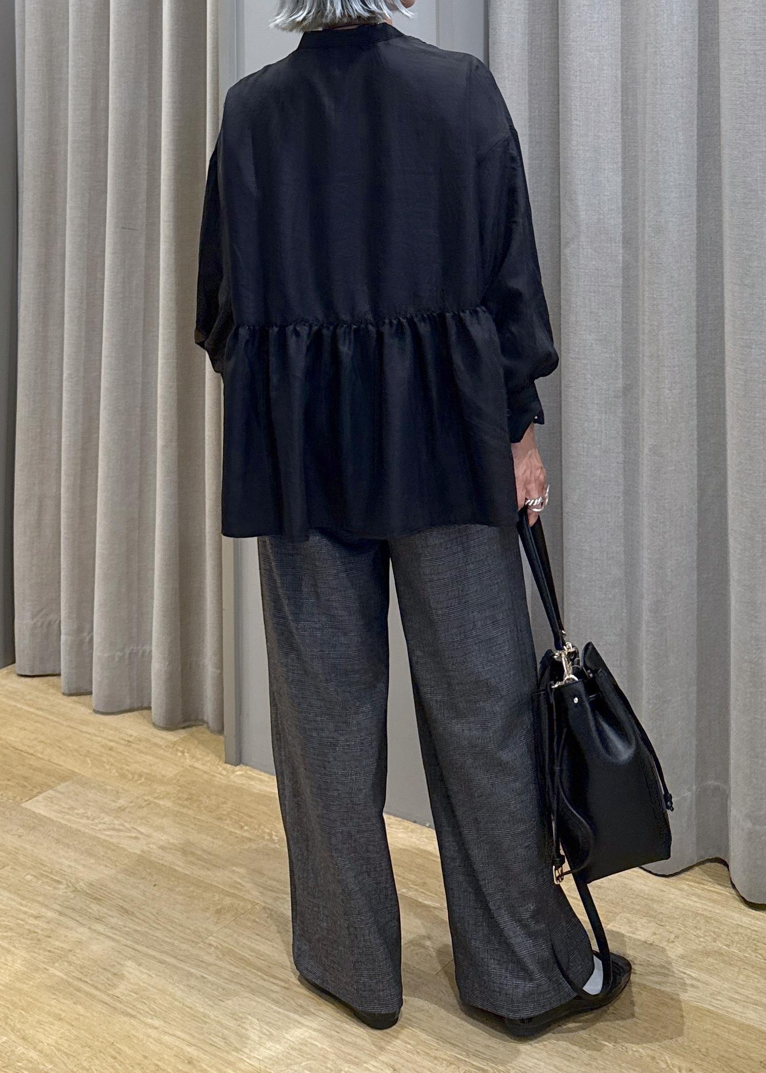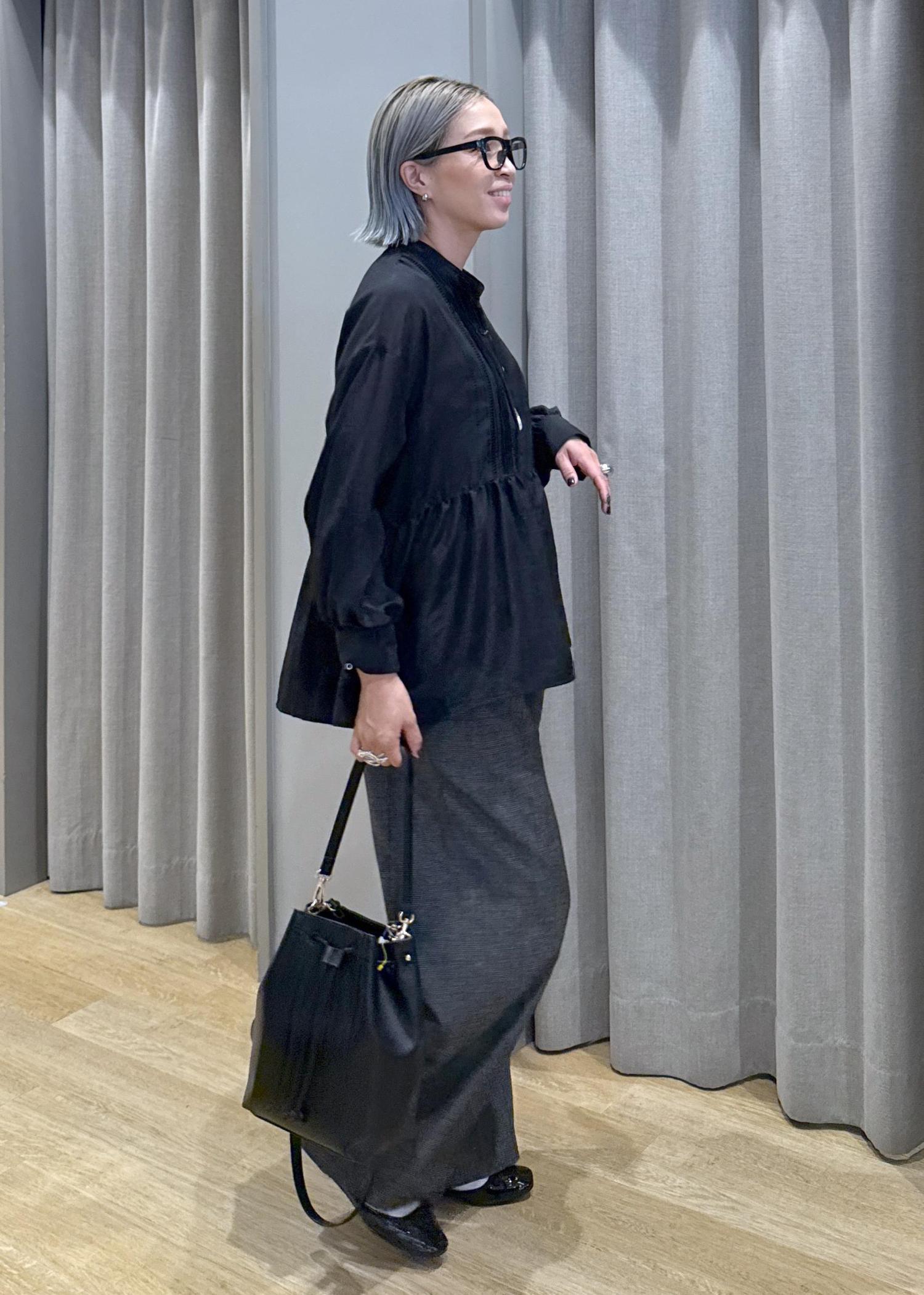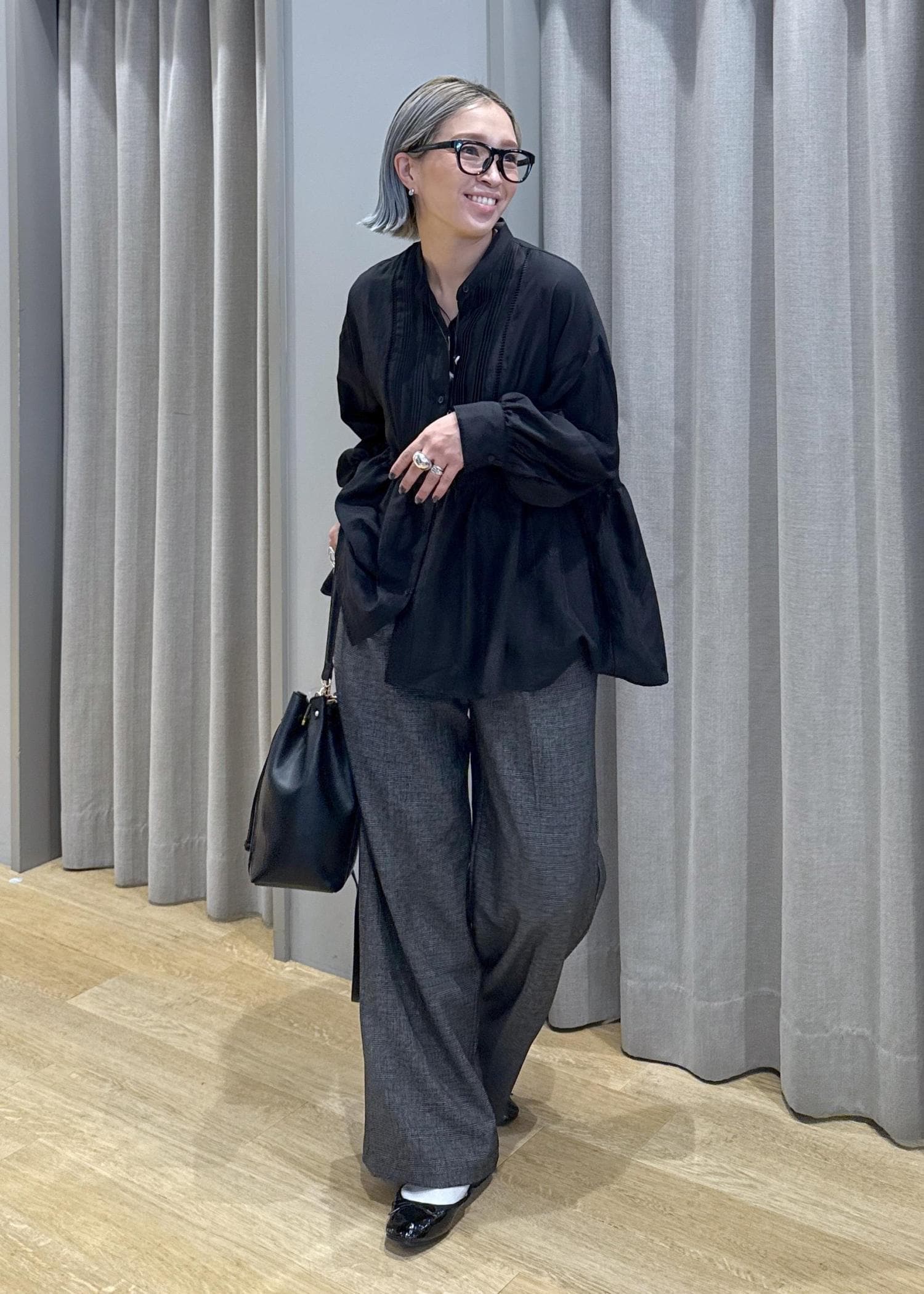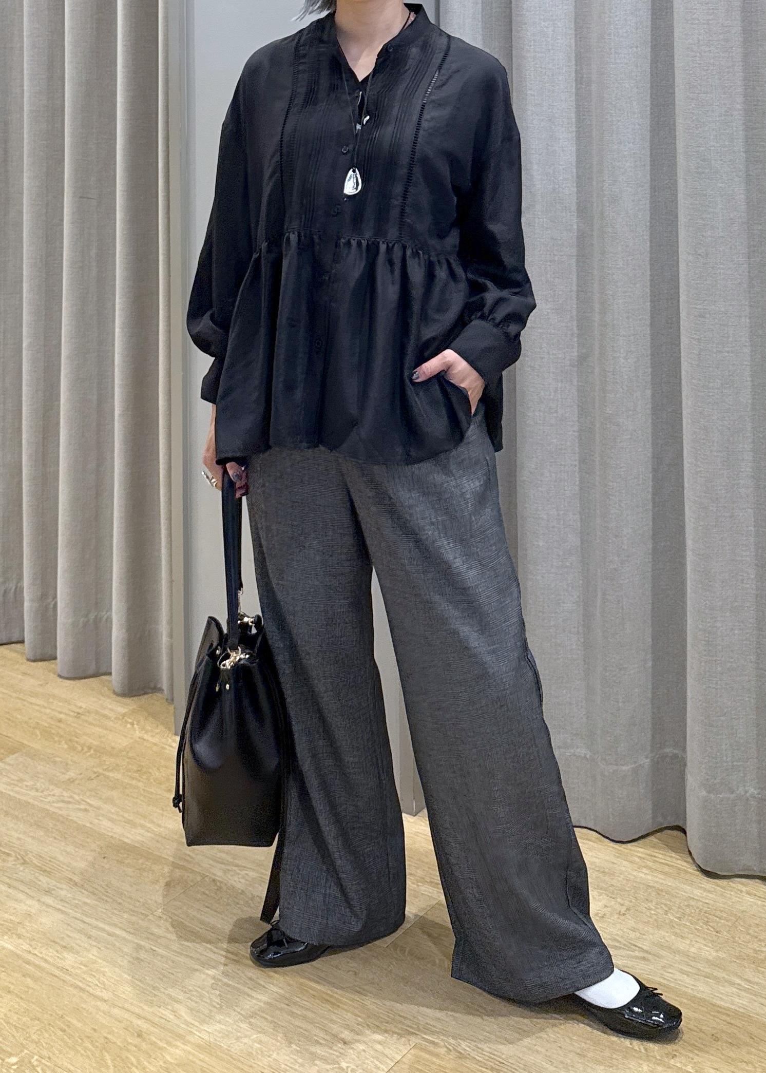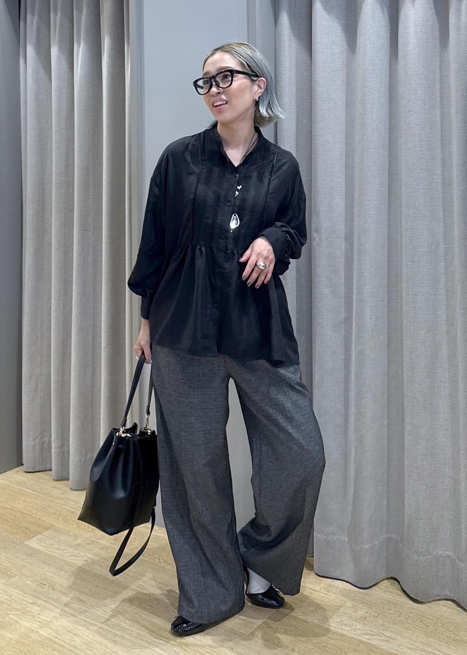 気になるヒップ周りをタックと太ももからのワイドラインがカバーしてくれます。