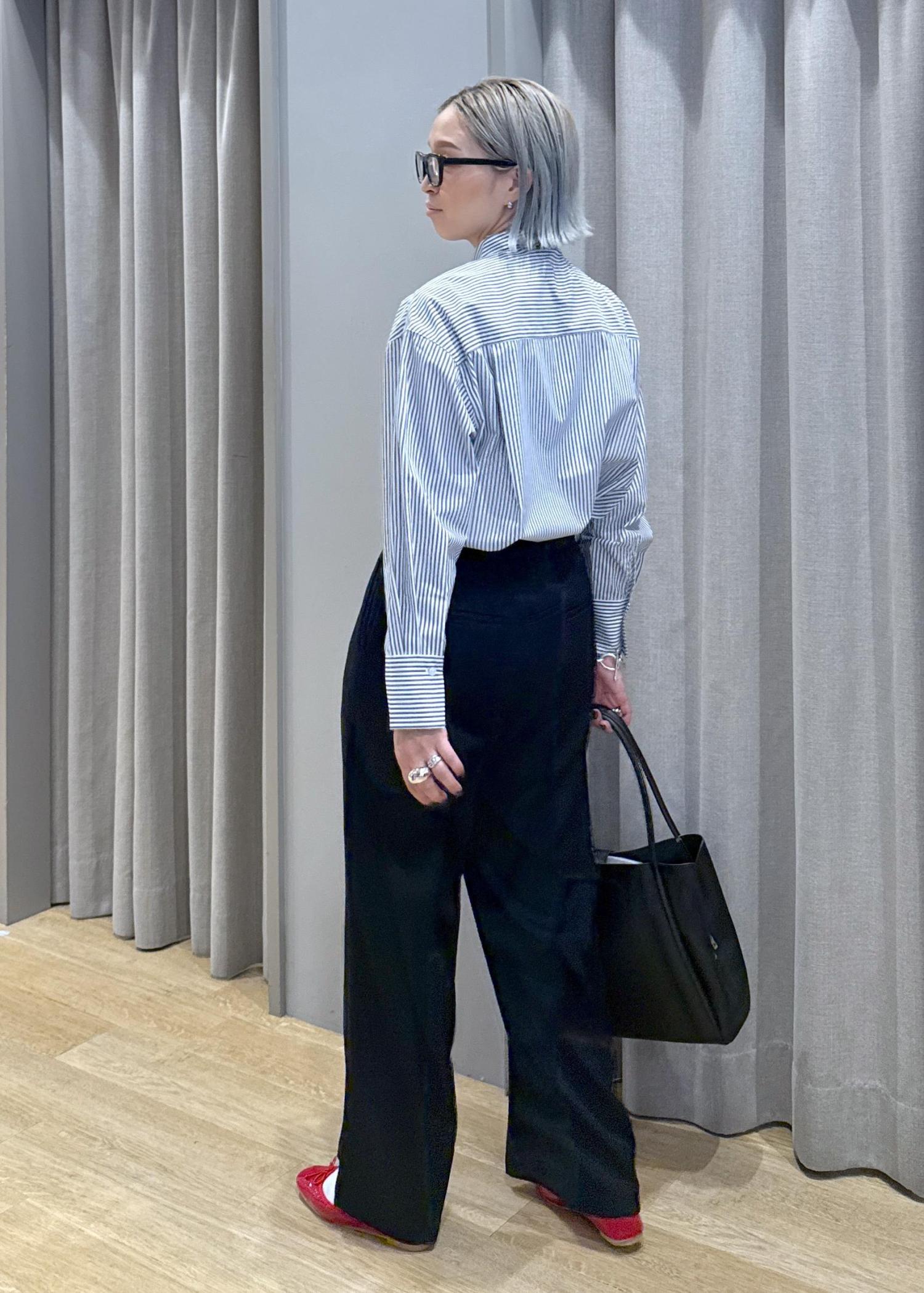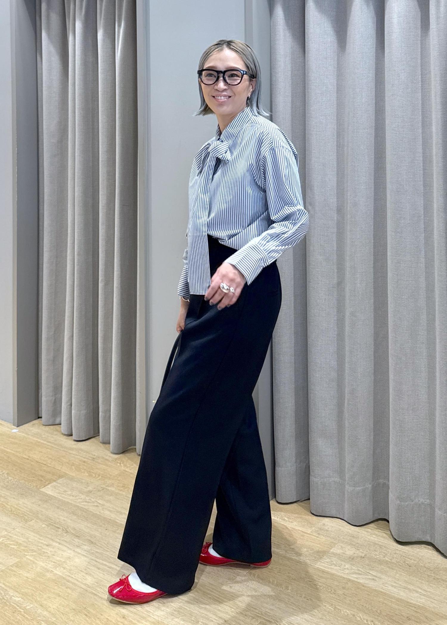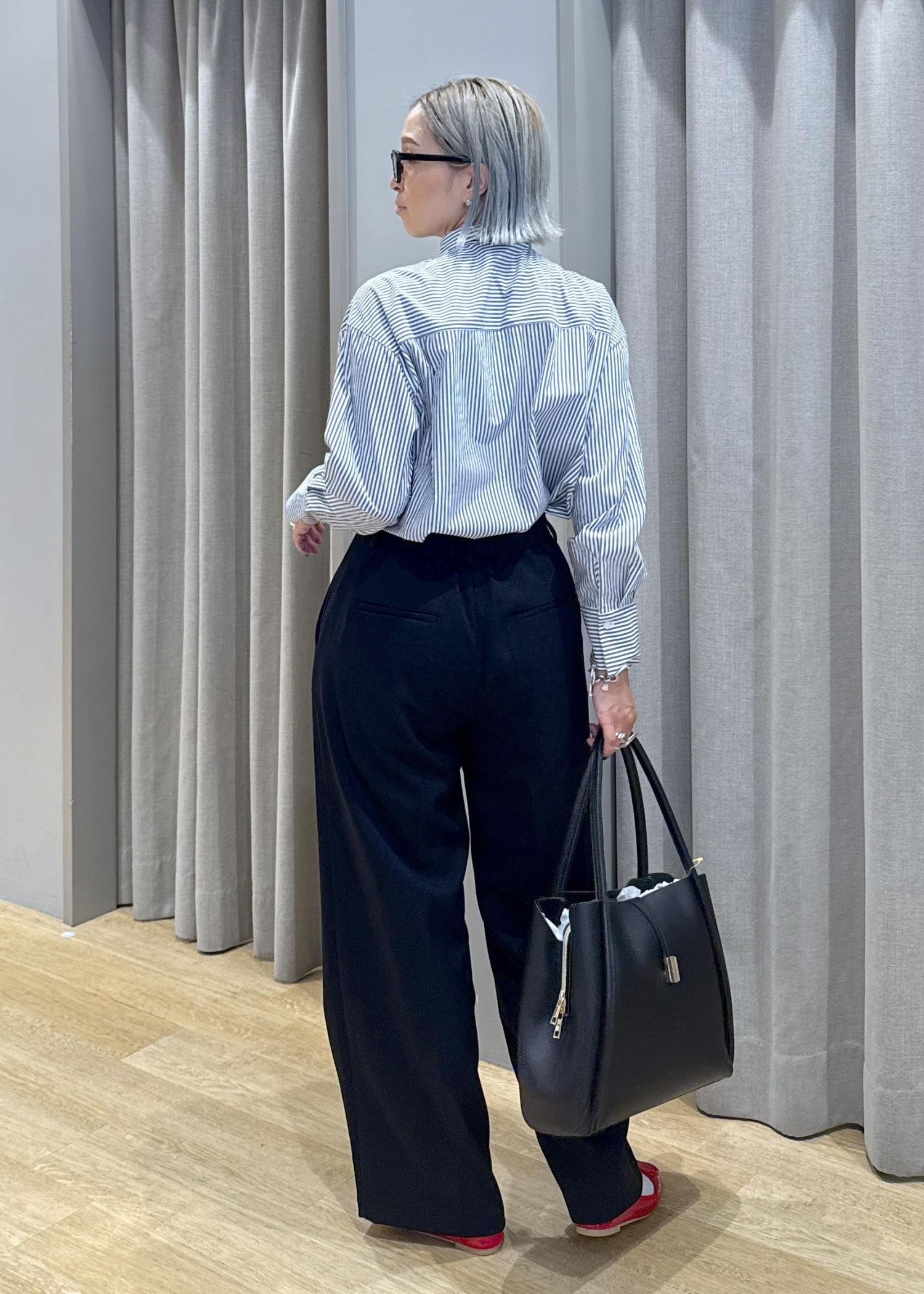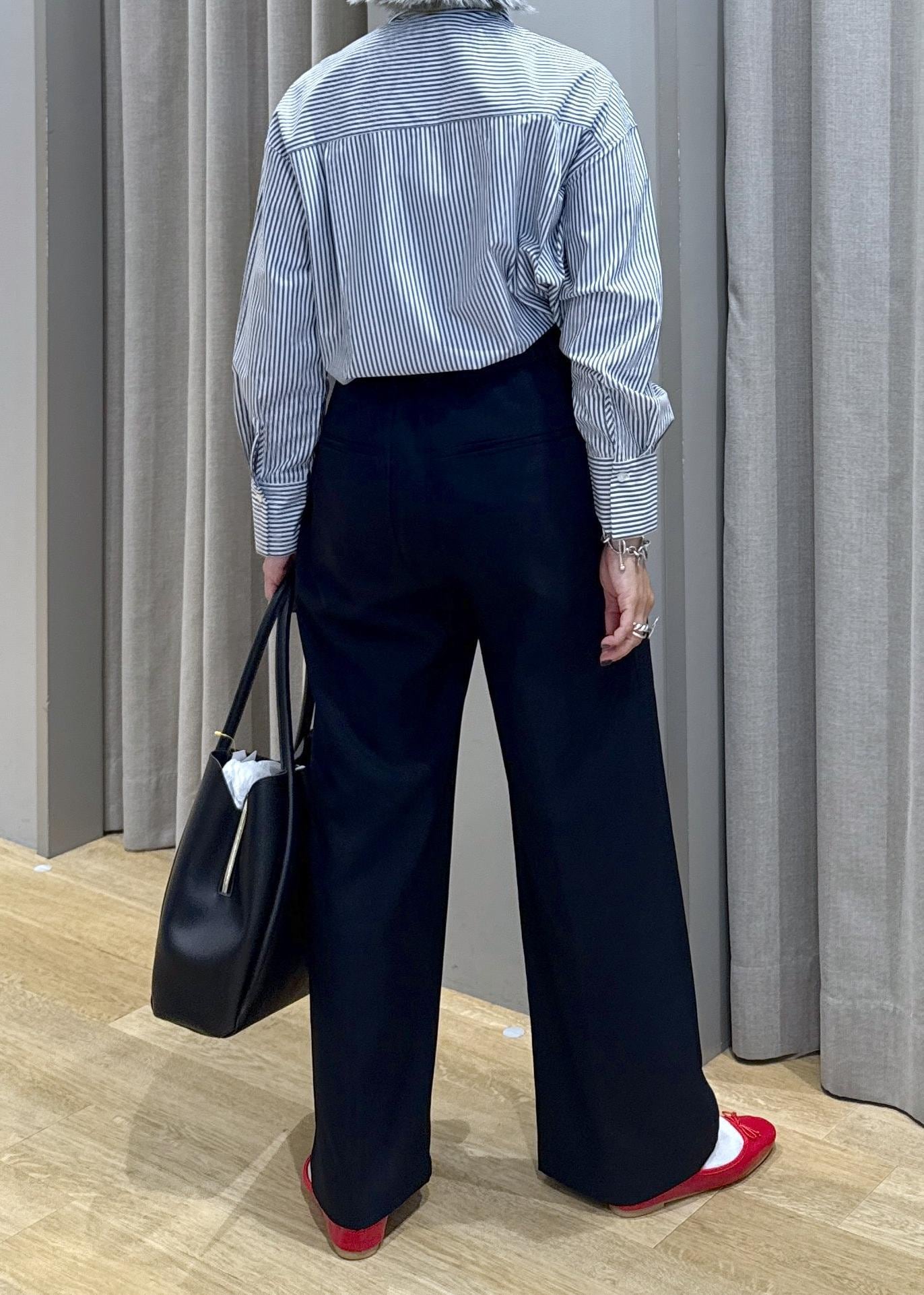 気になるヒップ周りをタックと太ももからのワイドラインがカバーしてくれます。