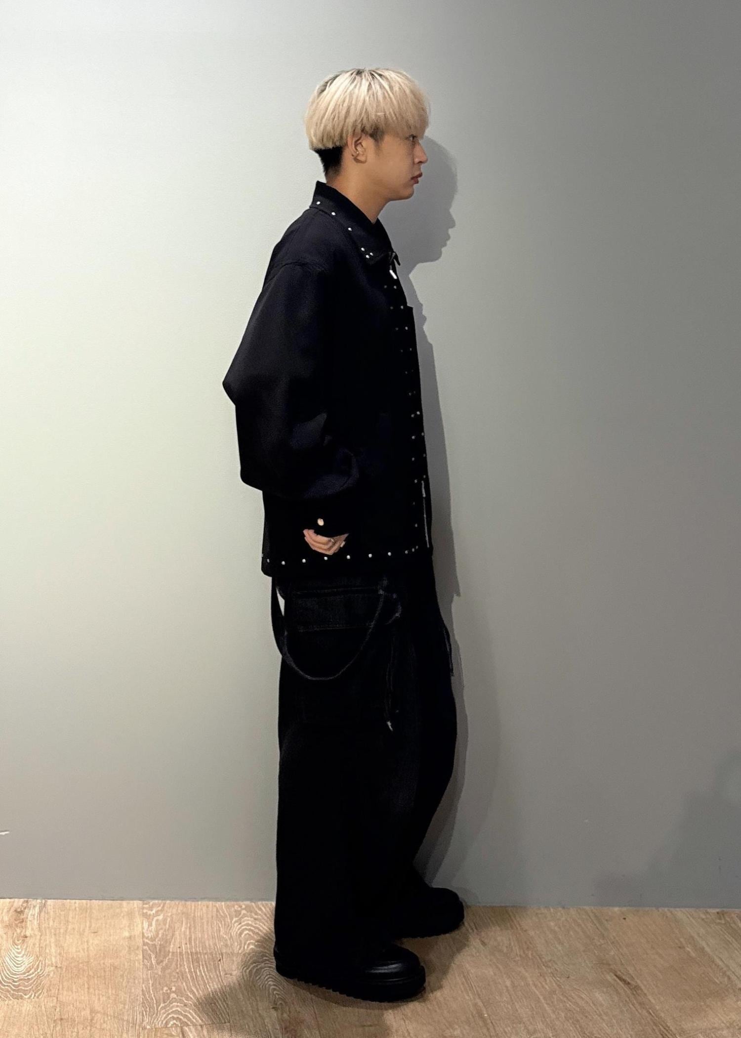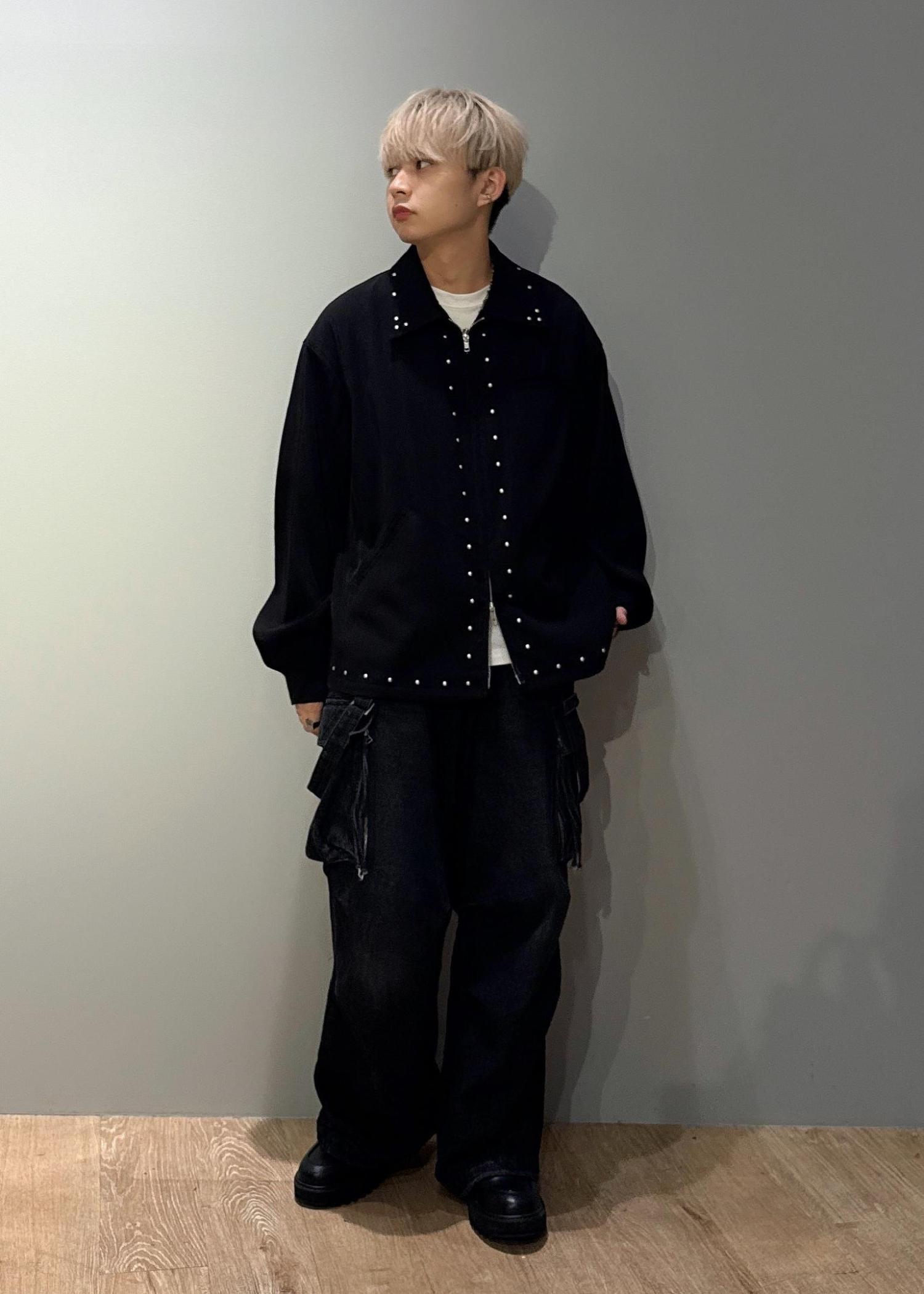 熱圧着でスタッズを配置しているので、生地への負担も少なく着用感も軽い仕上がりです。 -