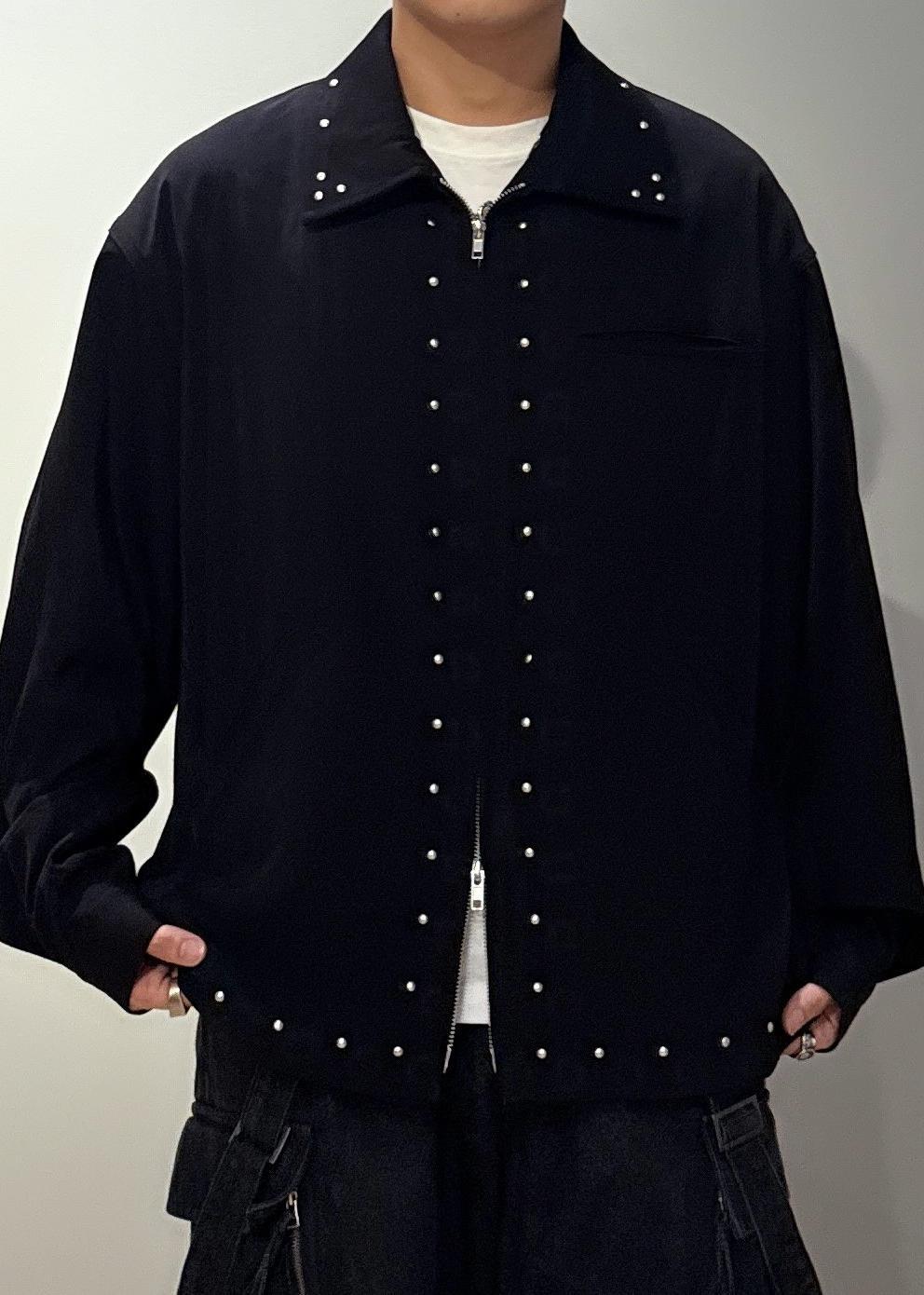ライン状にスタッズを配置した、ヴィンテージのレザーブルゾンのようなデザイン。