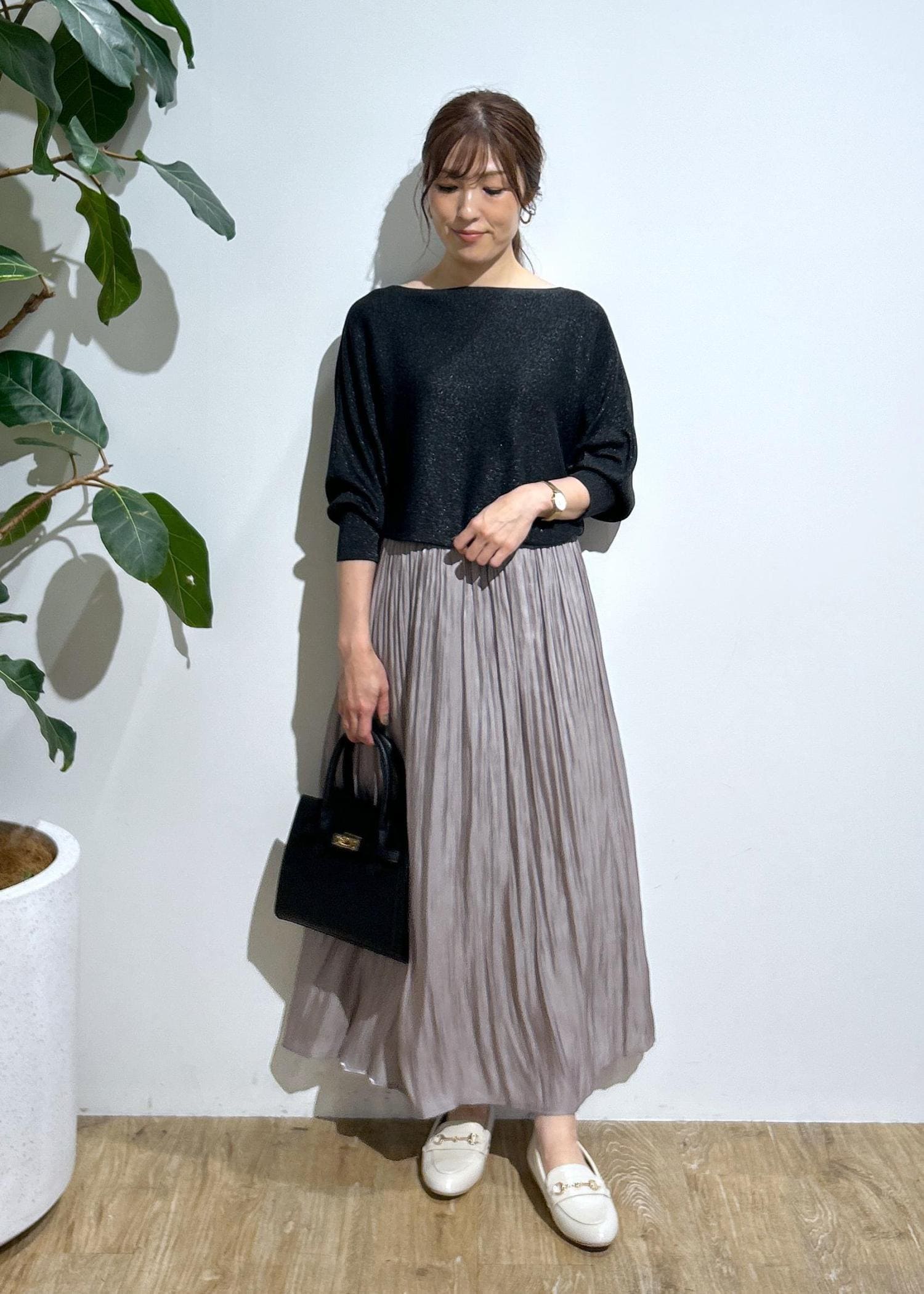 ドルマンニット×プリーツスカート