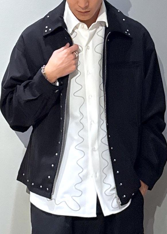 アウトレットJUNREDウェーブ刺繍レギュラーカラーシャツホワイト / L¥3,168レビュードレープ感のあるポリエステル素材を使用。
