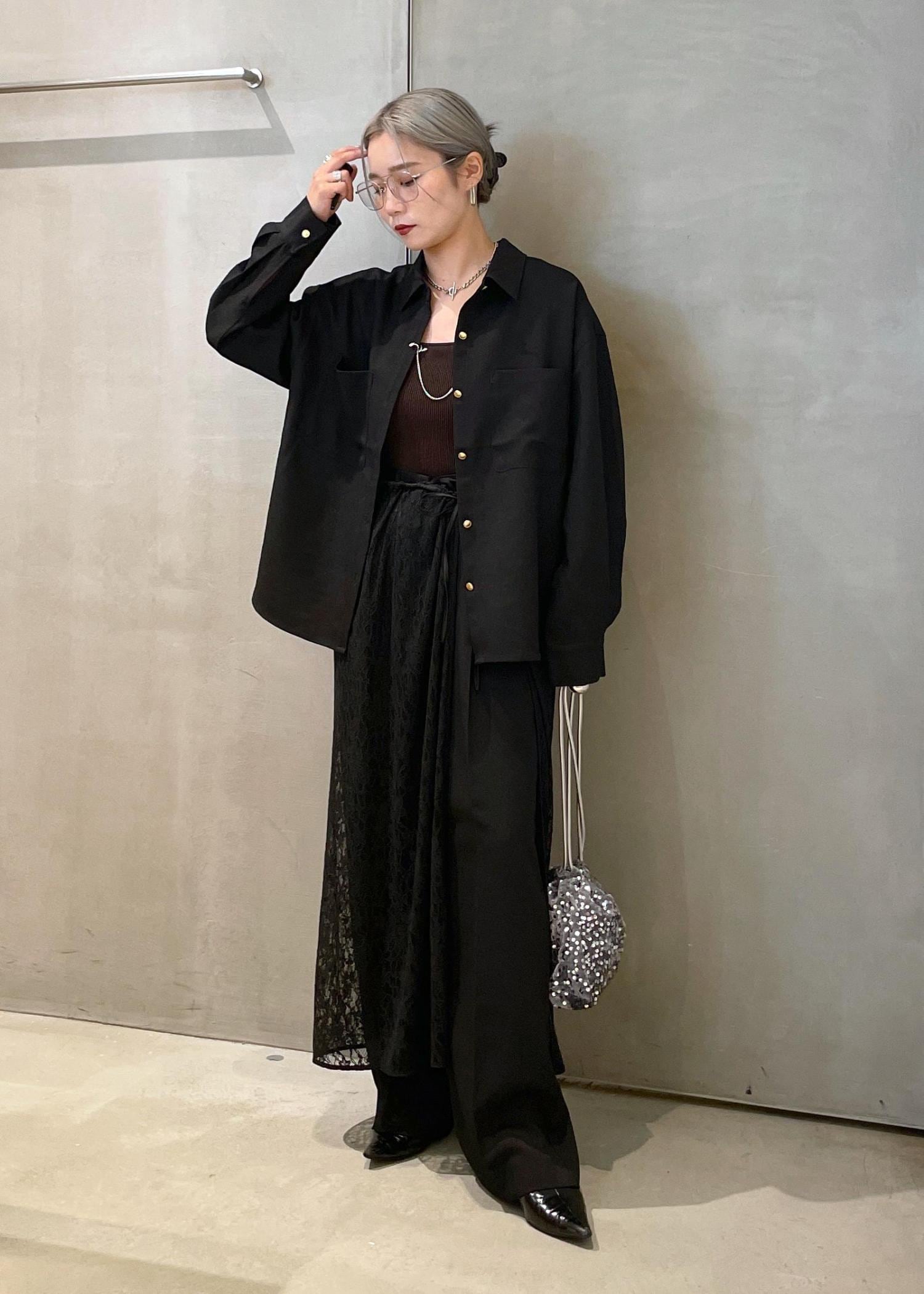 【Elisa Novelli /エリサノヴェリ】のレーススカートを同色でさりげなくアクセントにしています。