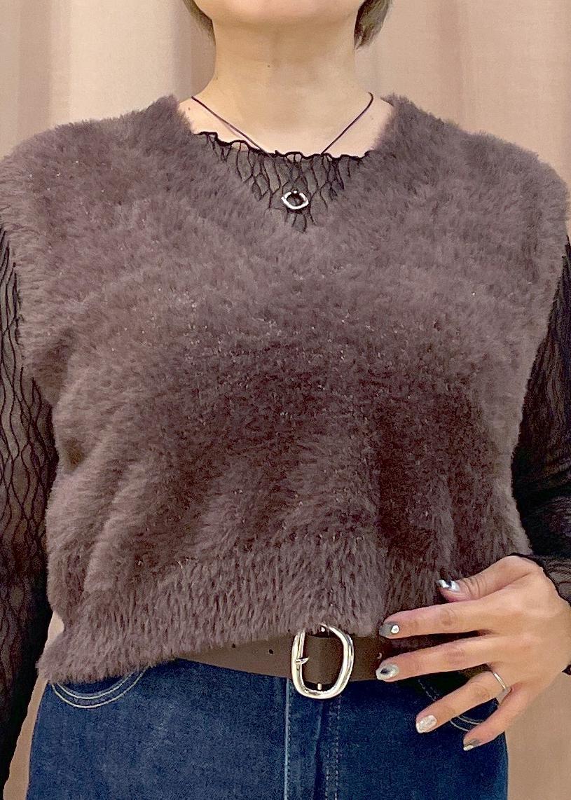ROPÉ PICNICショートフェザーニットベストダークブラウン / F¥3,993レビューMサイズ、ワンサイズ展開