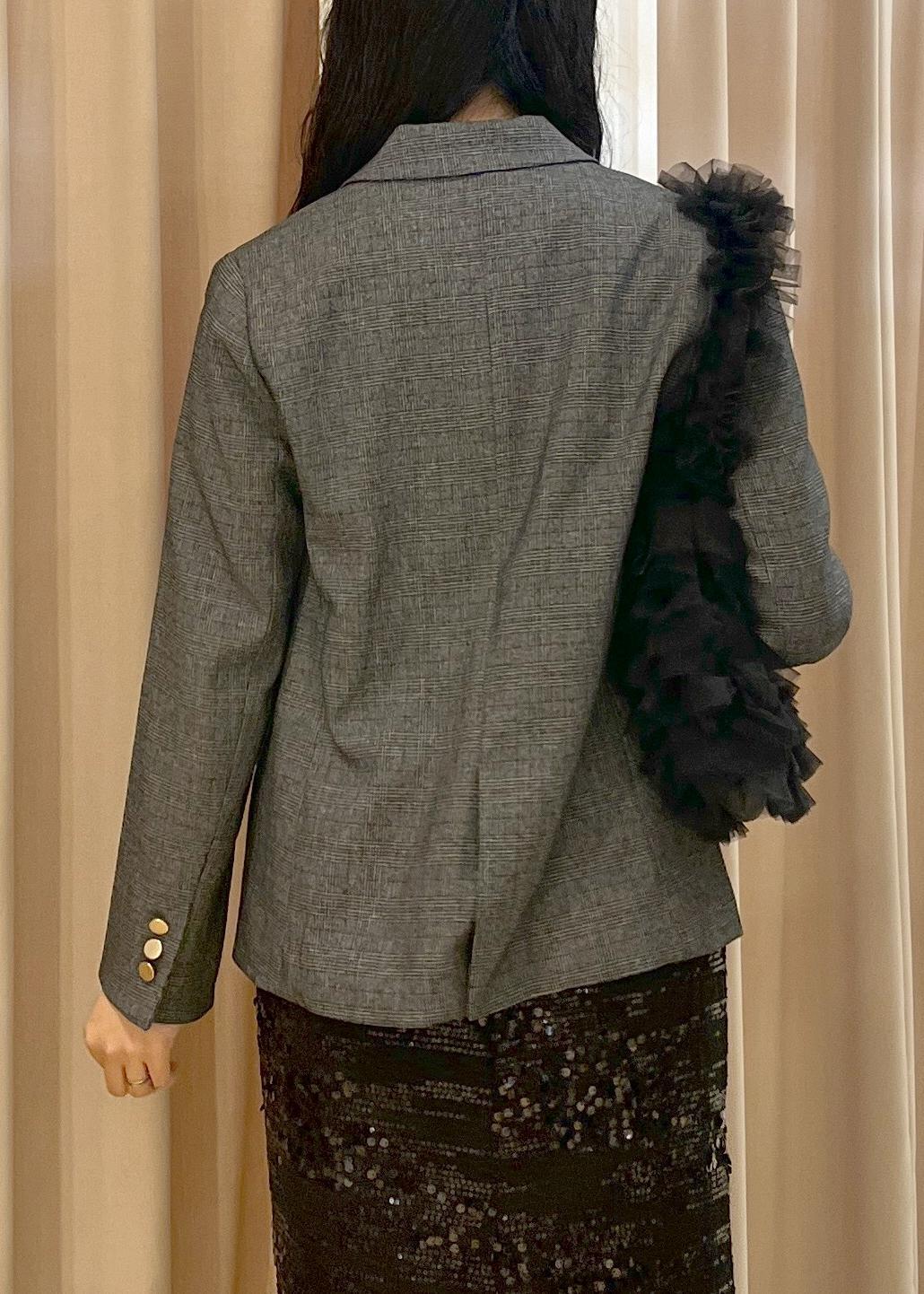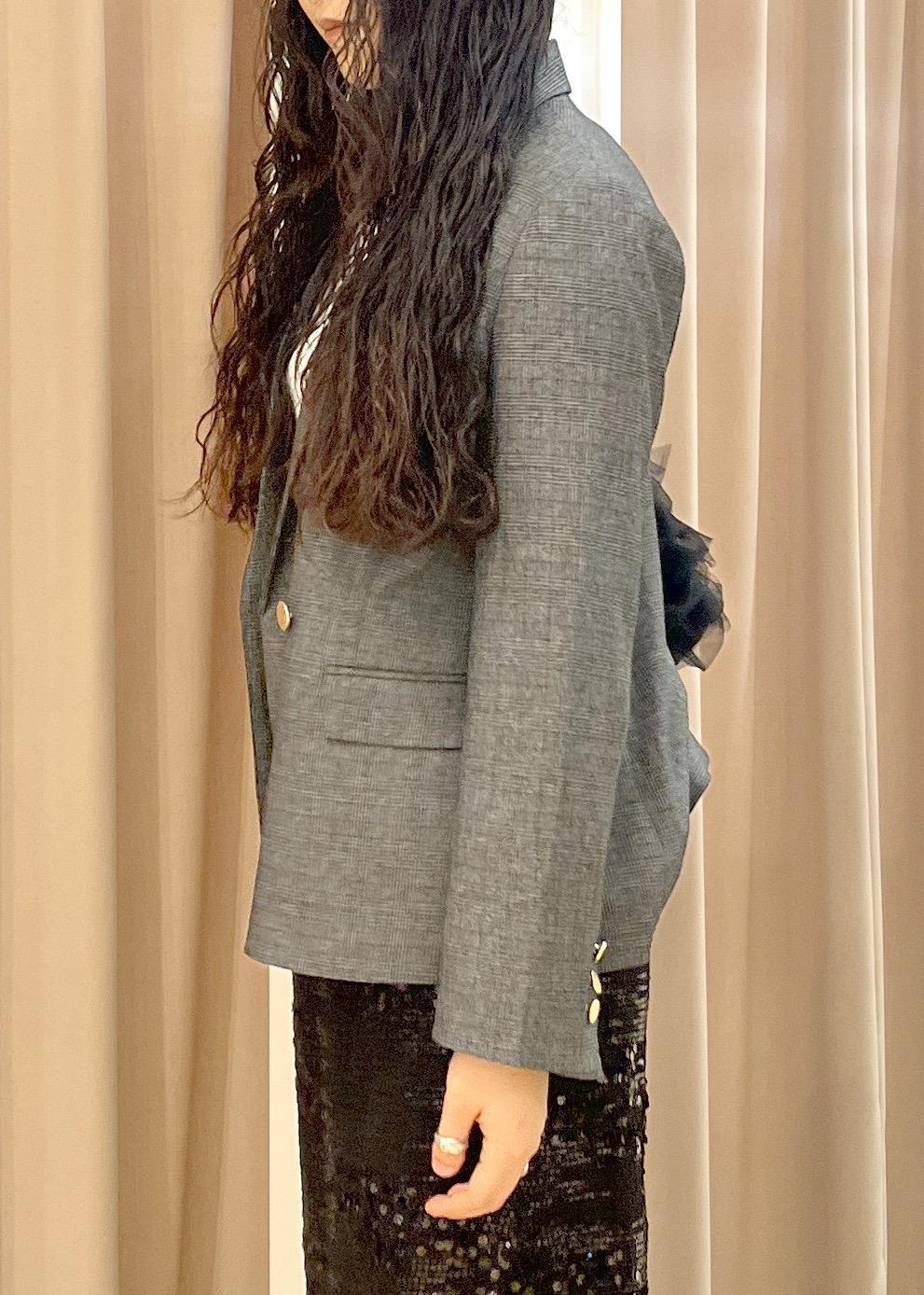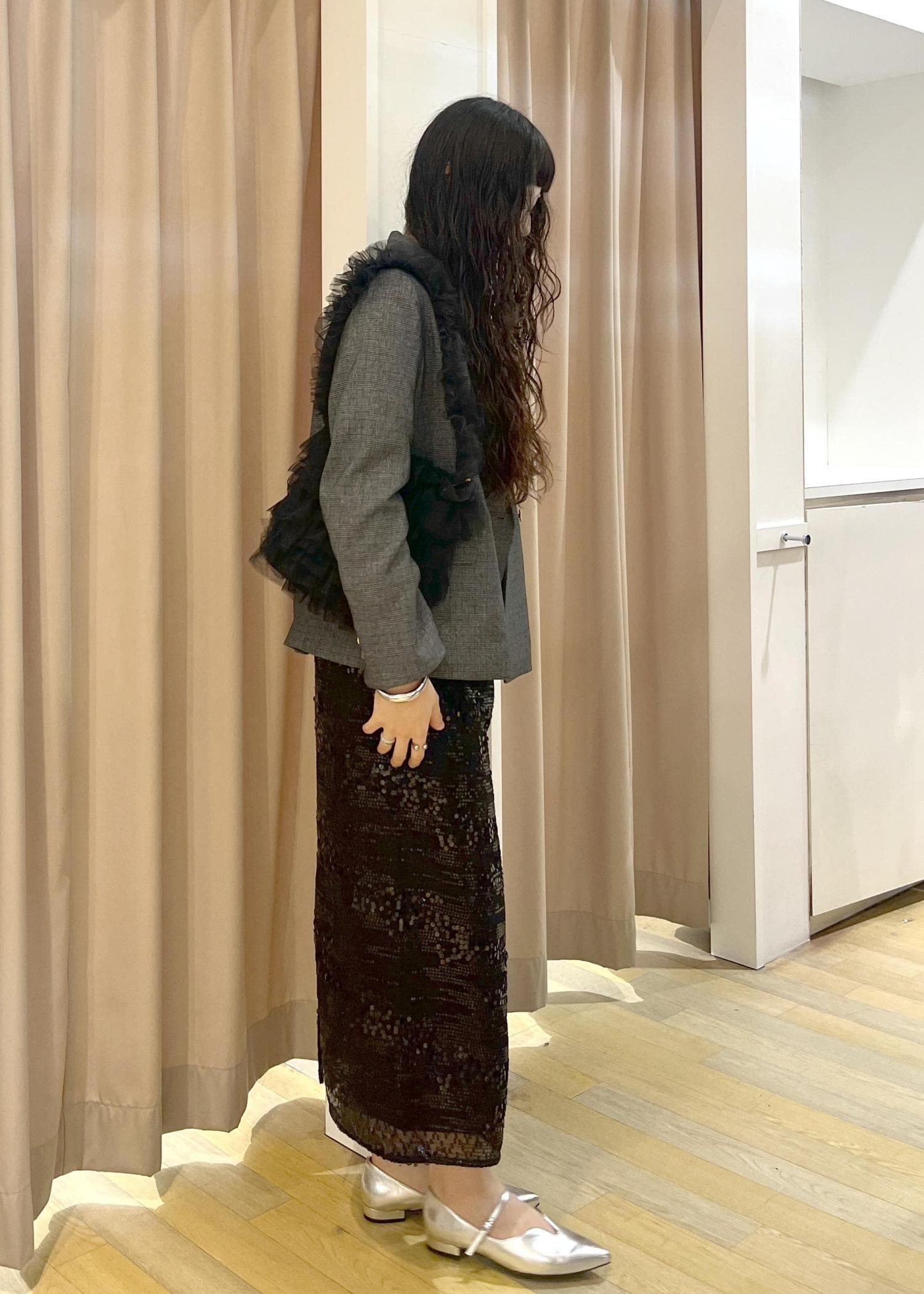 キレイめのジャケットに、動くとキラキラ輝くスカートを合わせ、堅苦しくなりすぎないジャケットコーデを組みましたᐩᕀ