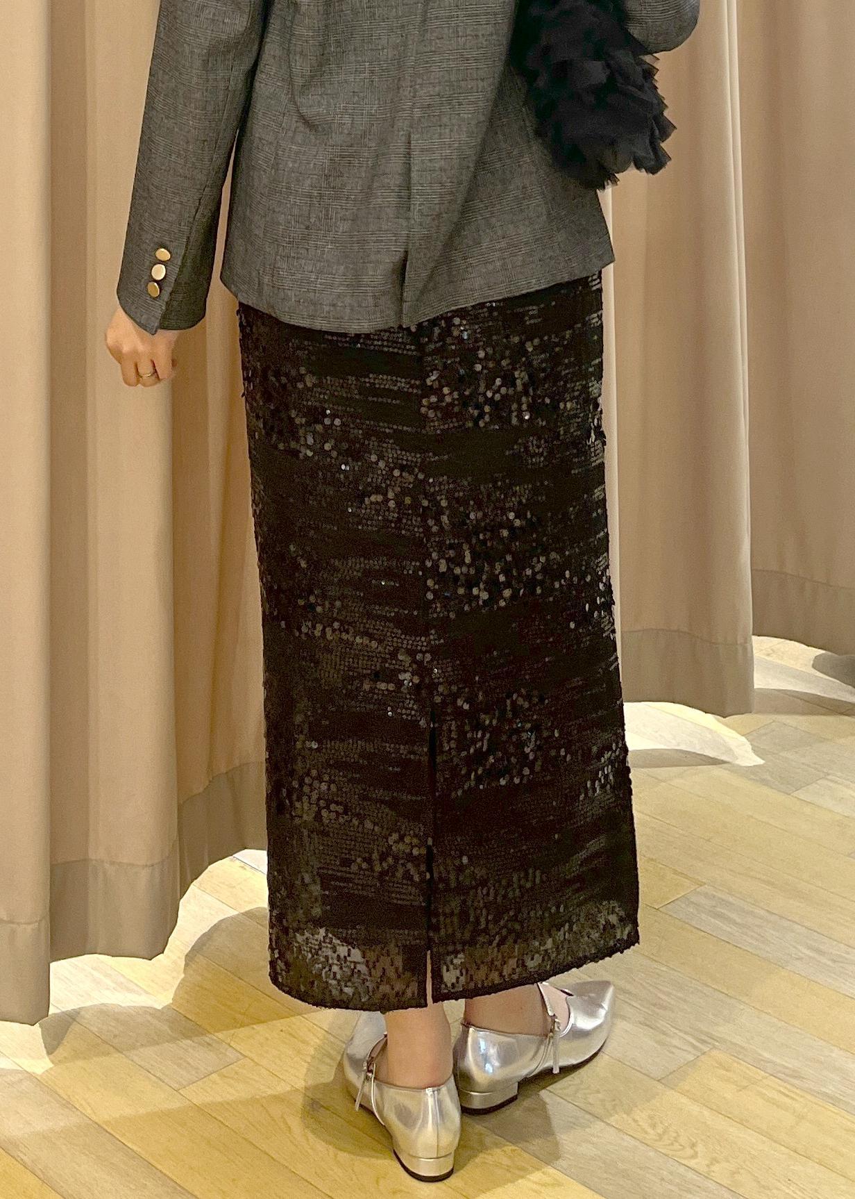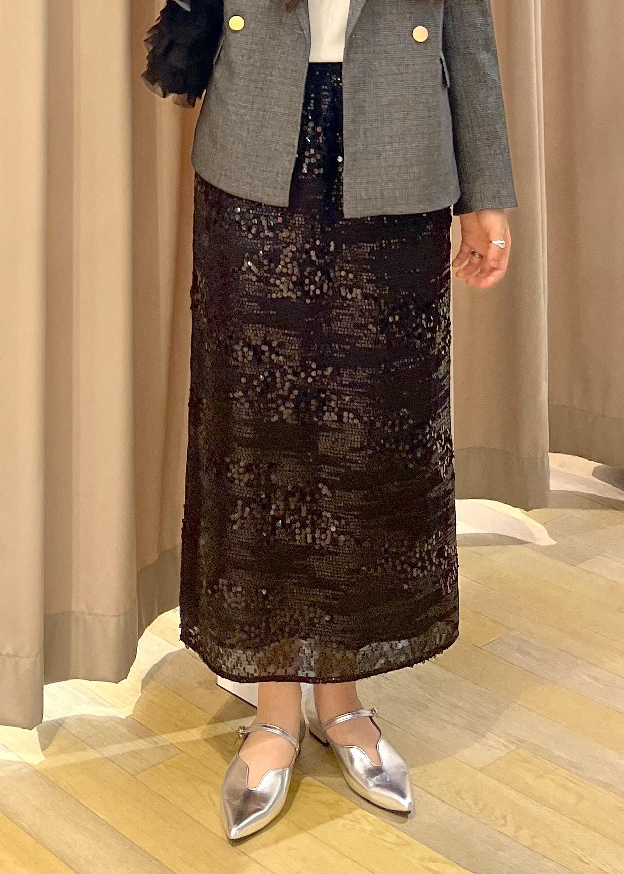 アウトレットROPÉ PICNICスパンコールアイラインスカートブラック / 38¥3,245レビュー165cmでくるぶしが見える丈感です。スパンコールがキラキラ輝くデザイン性のあるスカートですᐩᕀ
