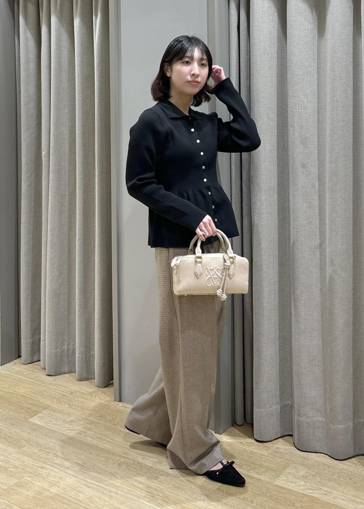 ペプラムカーデ×美easyウーリッシュワイドパンツ
