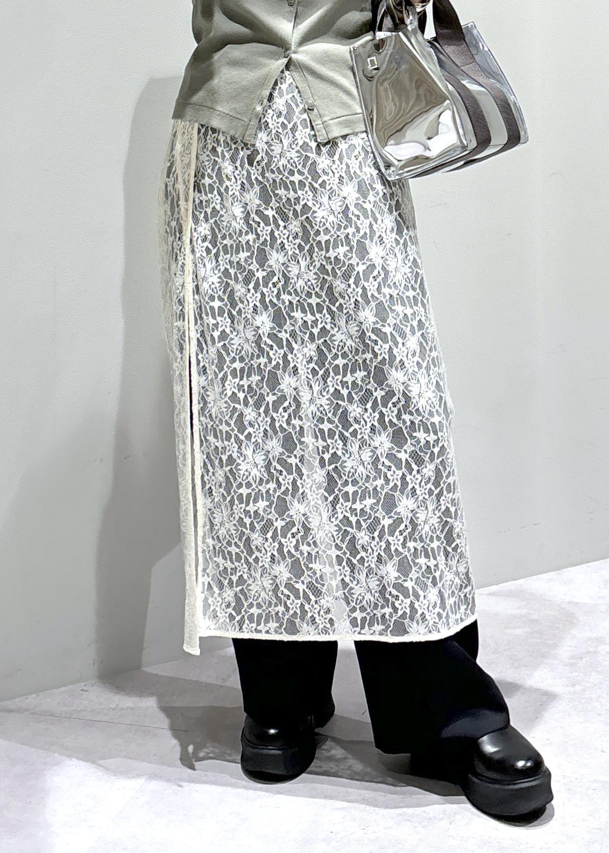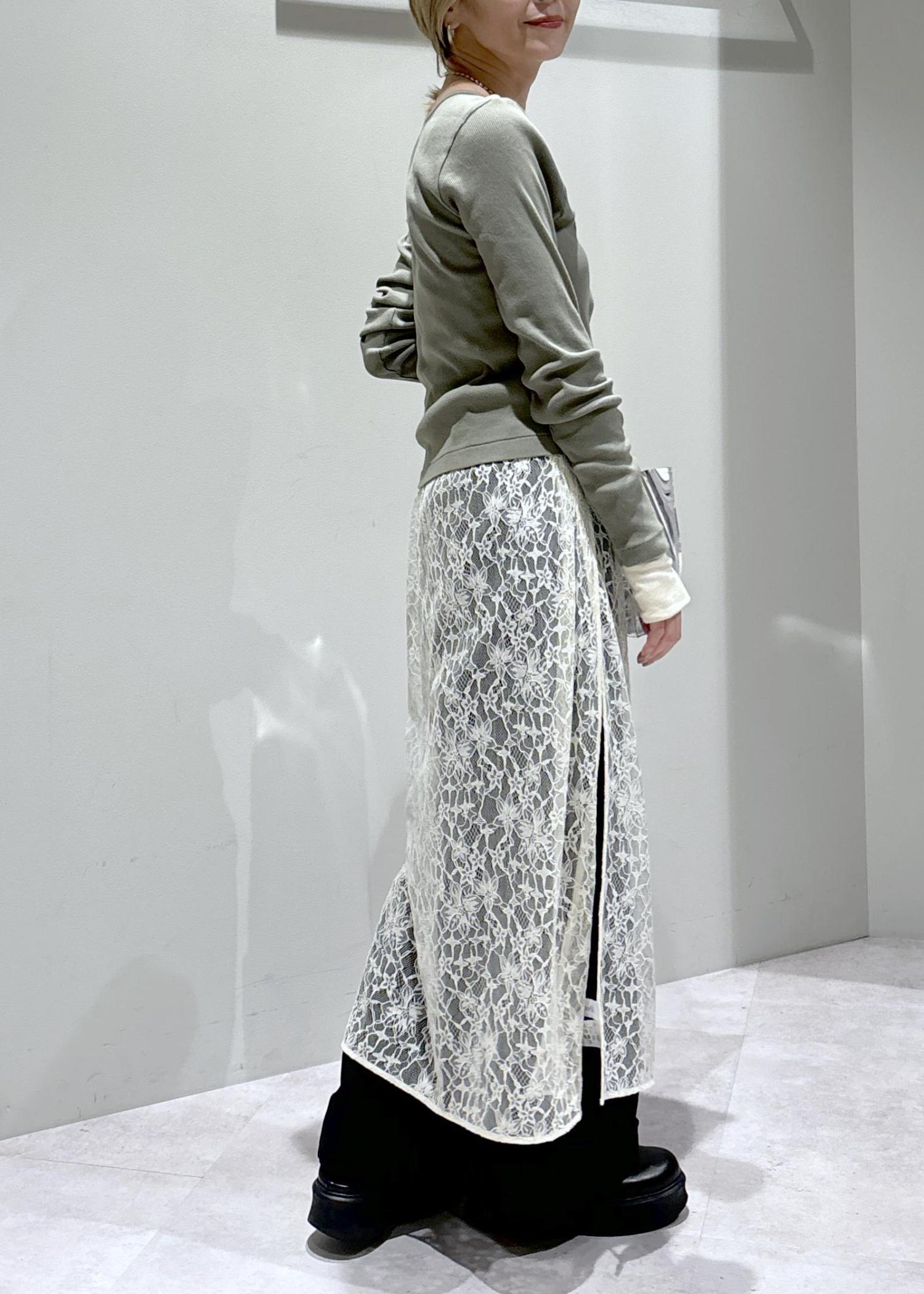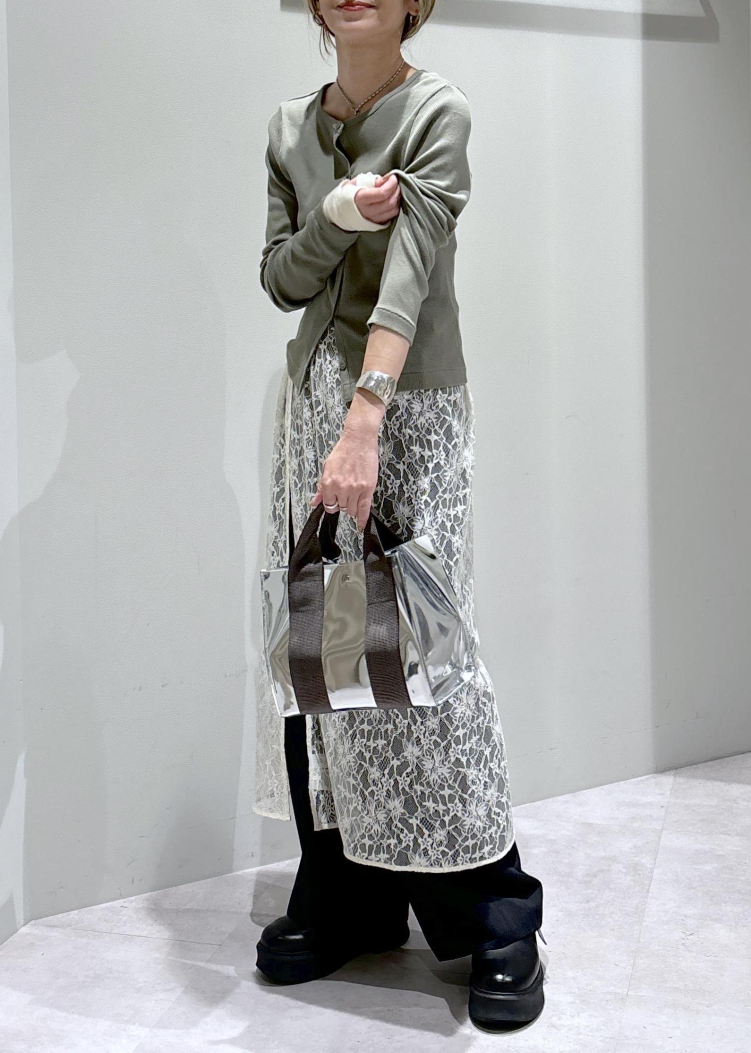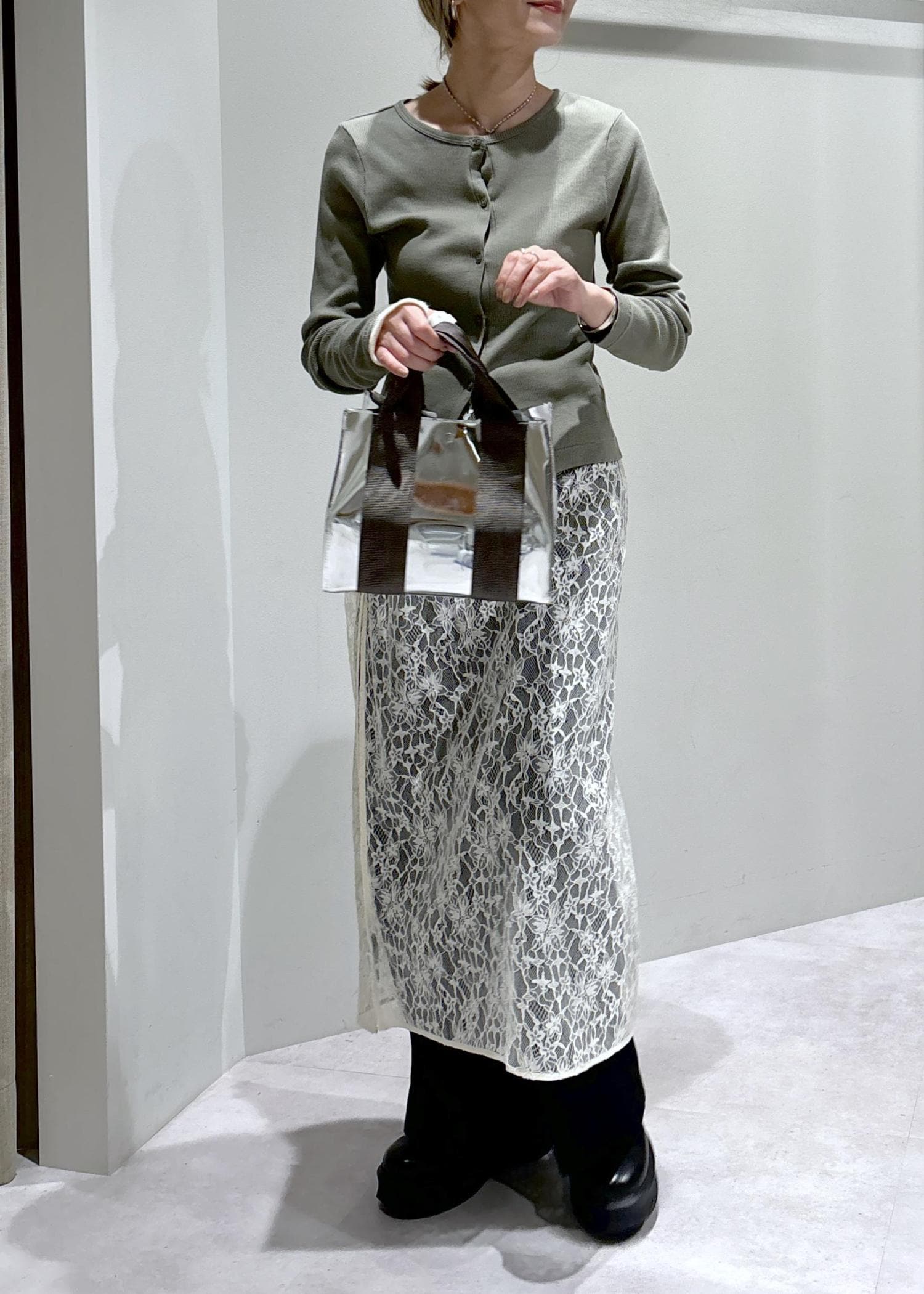 カーキ×ブラックのシンプルなスタイルもよいですが、ラップスカートで女性らしさをプラスして雰囲気を変えてみました