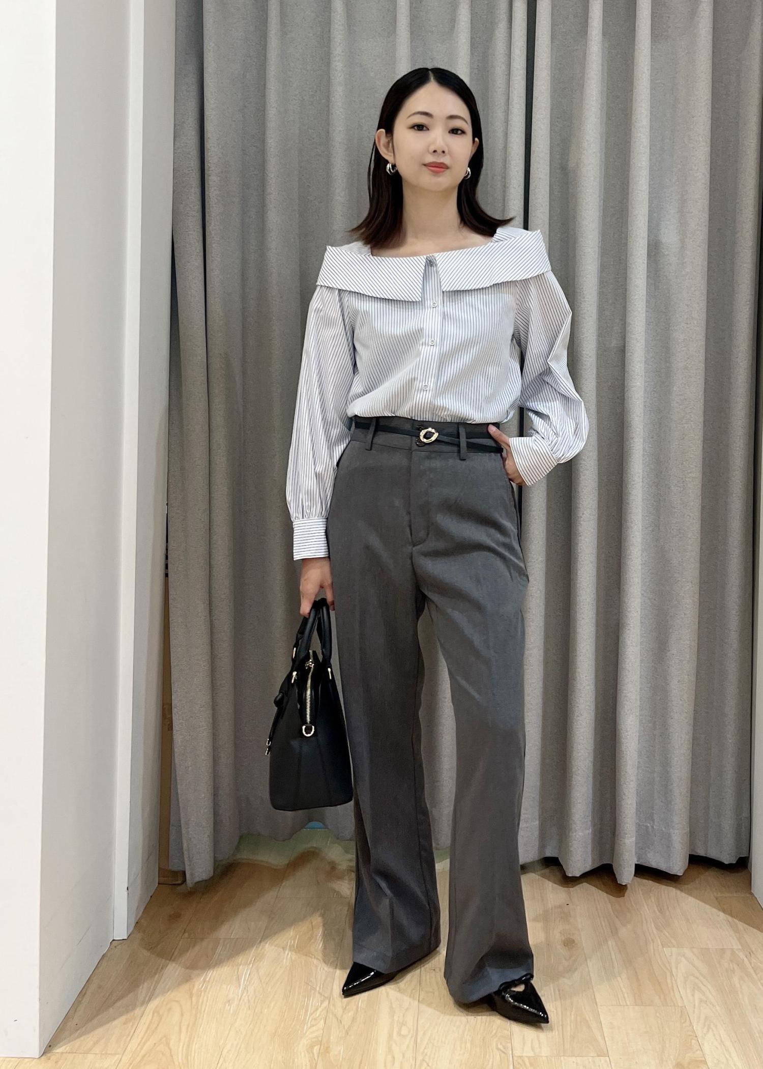 VISフレアーリラックススラックスチャコール / M¥4,150レビューセミフレアのシルエットが足を綺麗に見せてくれます。サイドがゴム仕様で窮屈感なく楽チンに履けます。