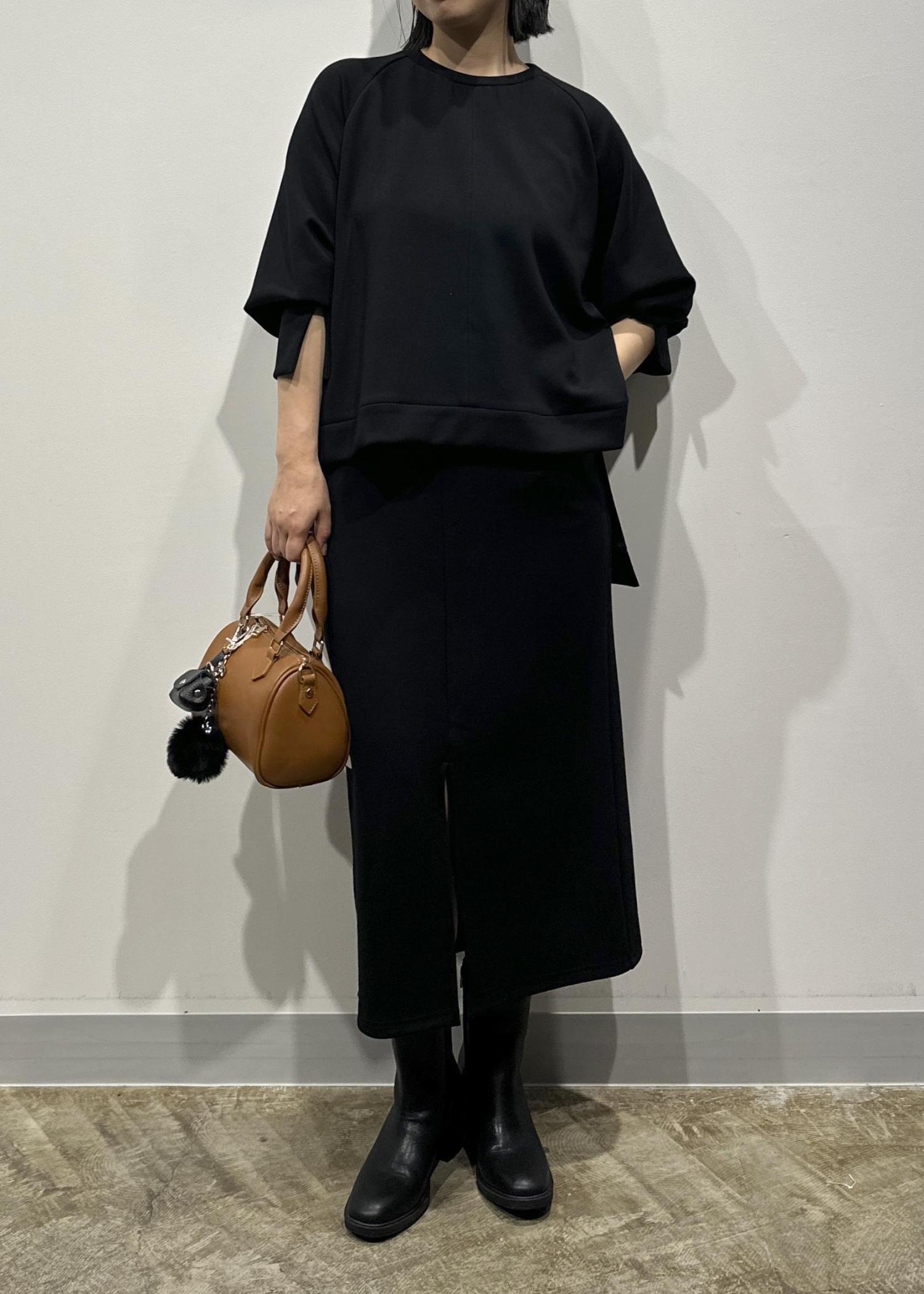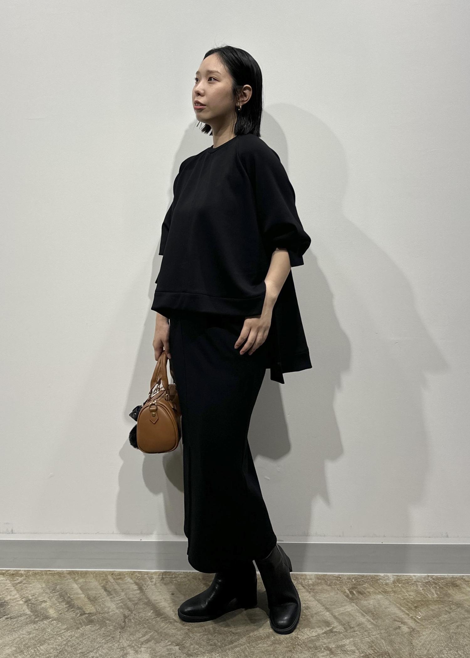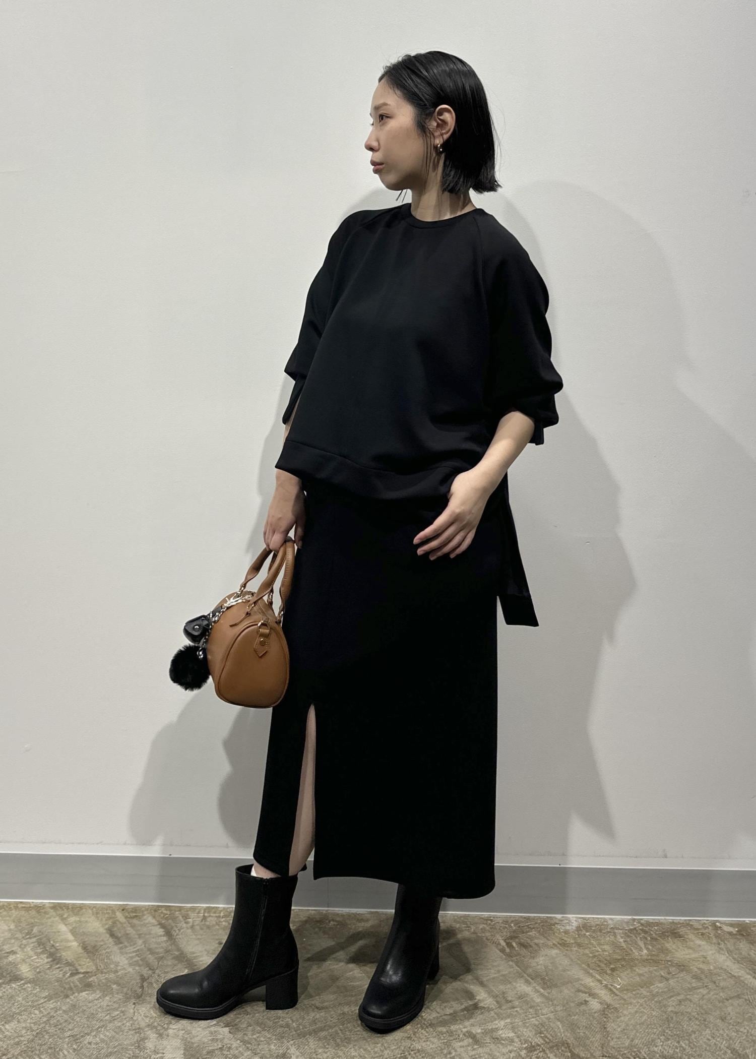 前後差があり、バックスタイルはヒップまで隠してくれるので、ワイドパンツやタイトスカート等、