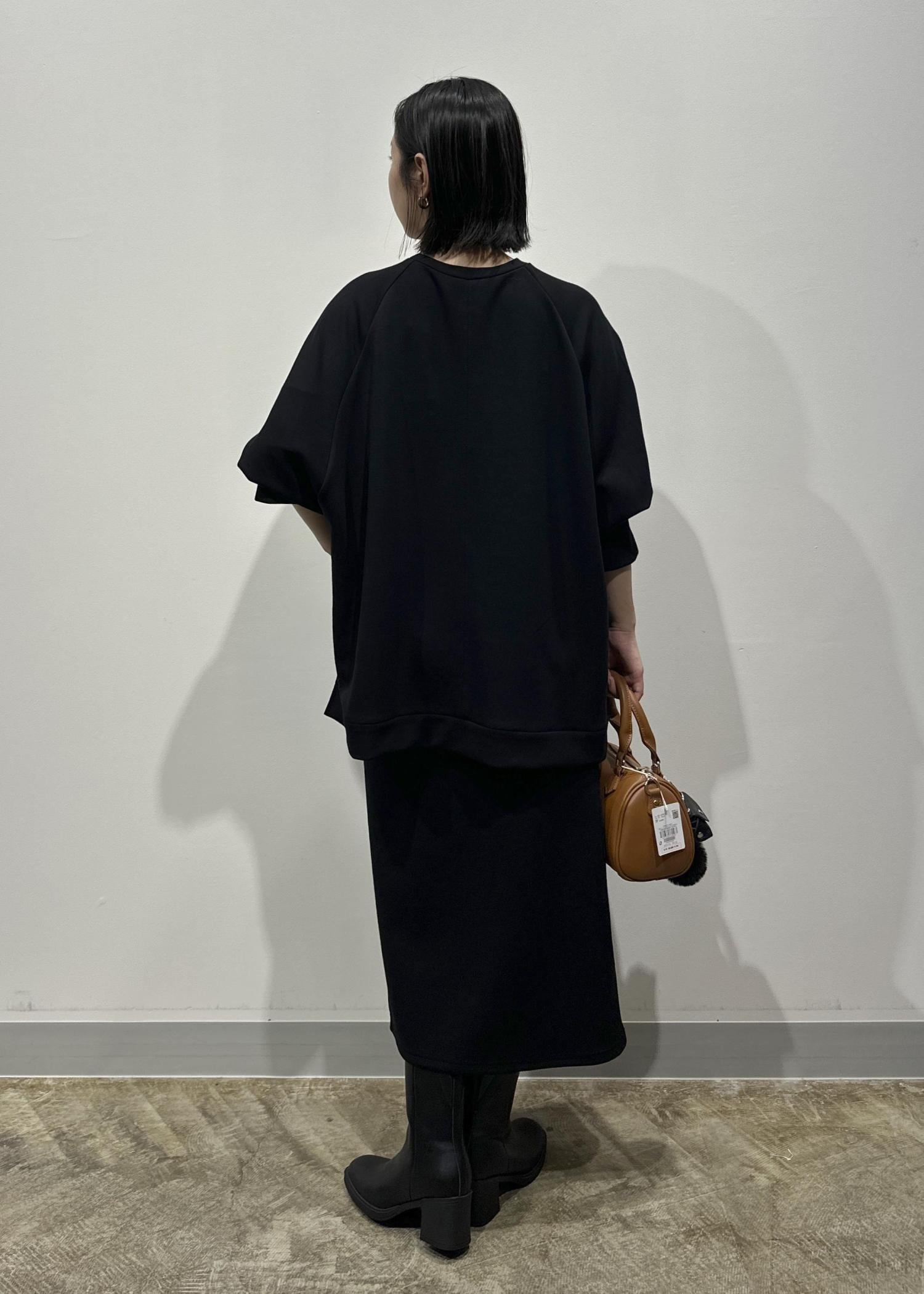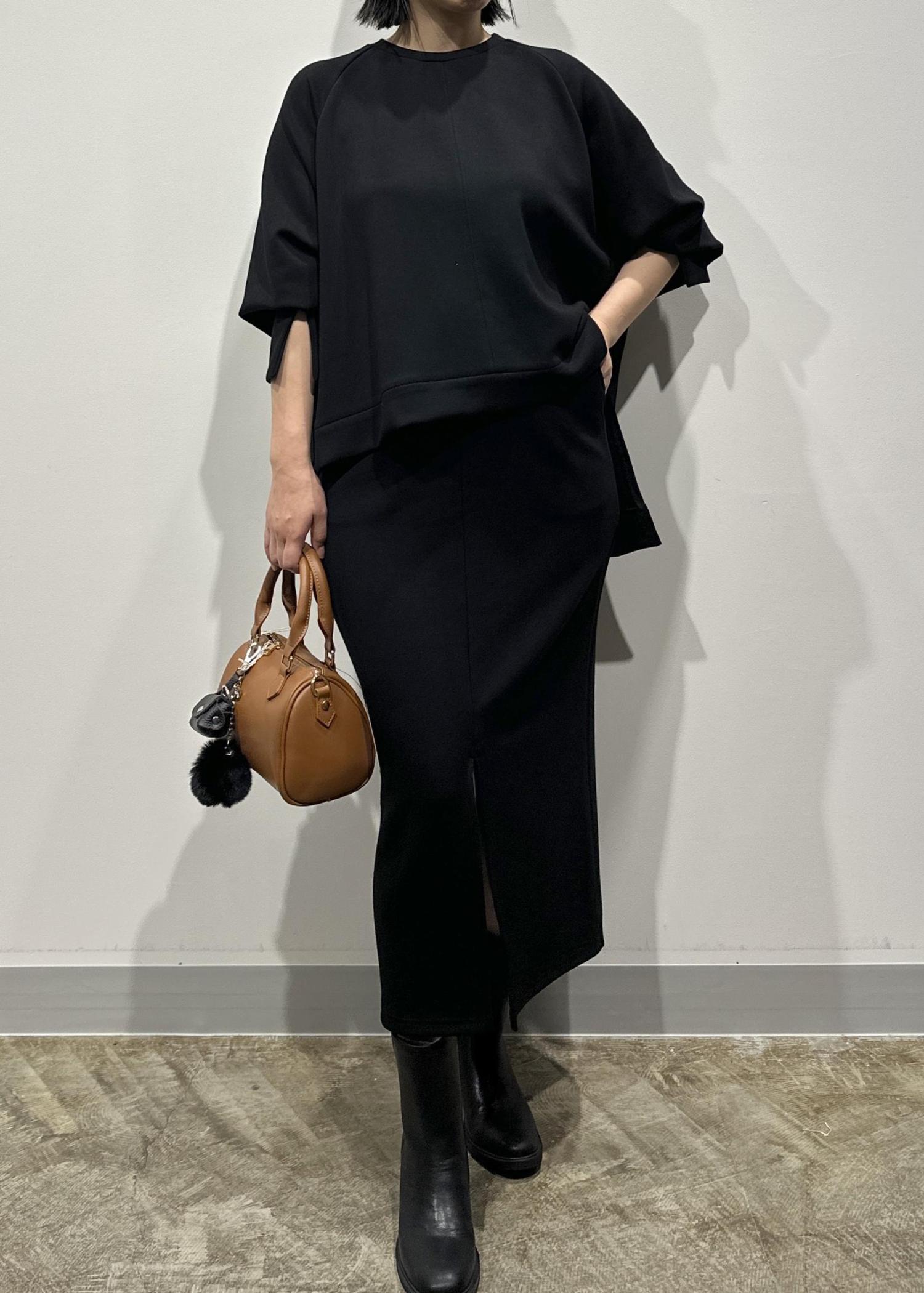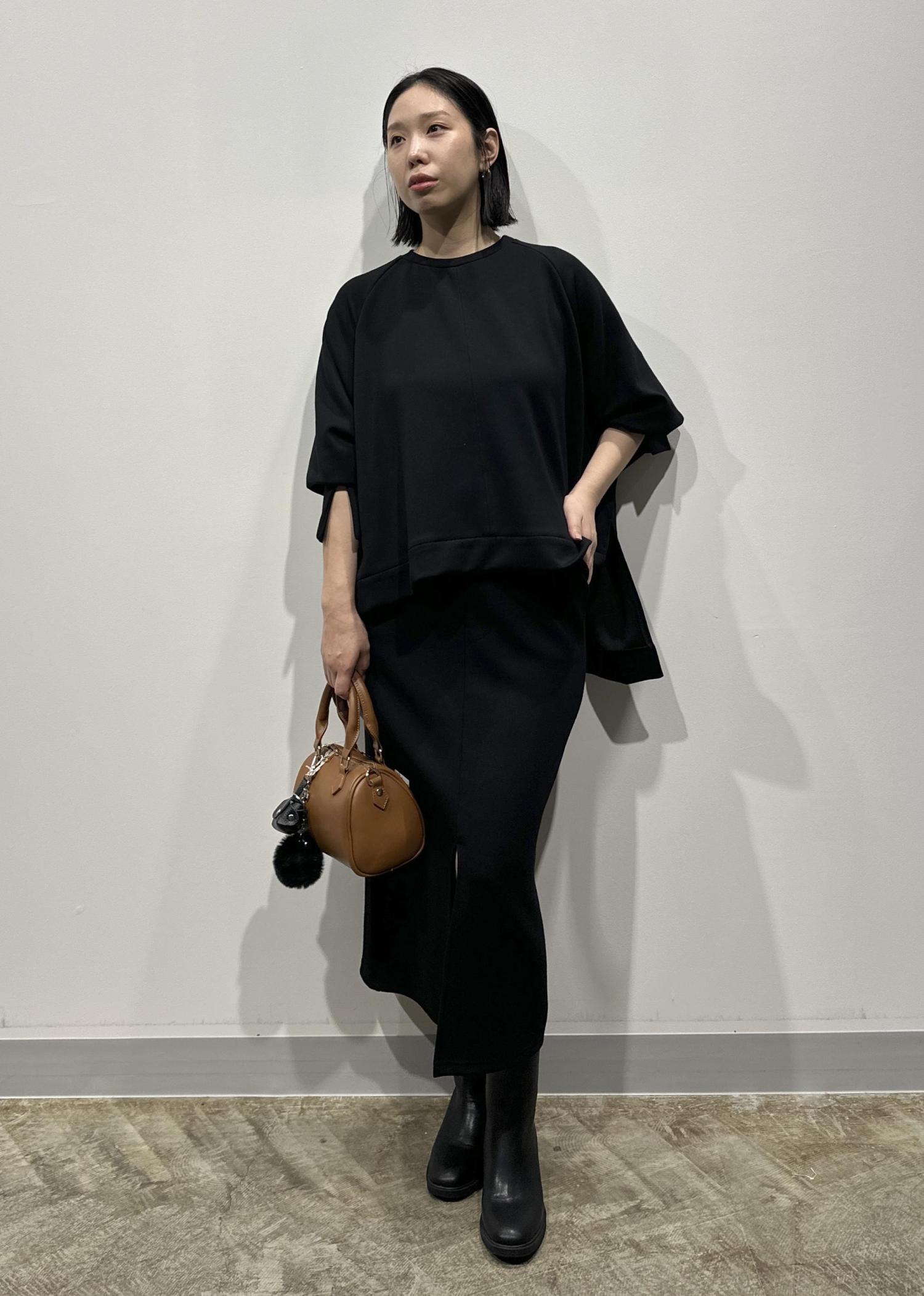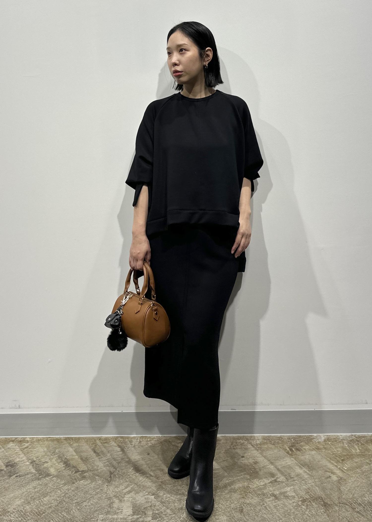 前後差があり、バックスタイルはヒップまで隠してくれるので、ワイドパンツやタイトスカート等、
