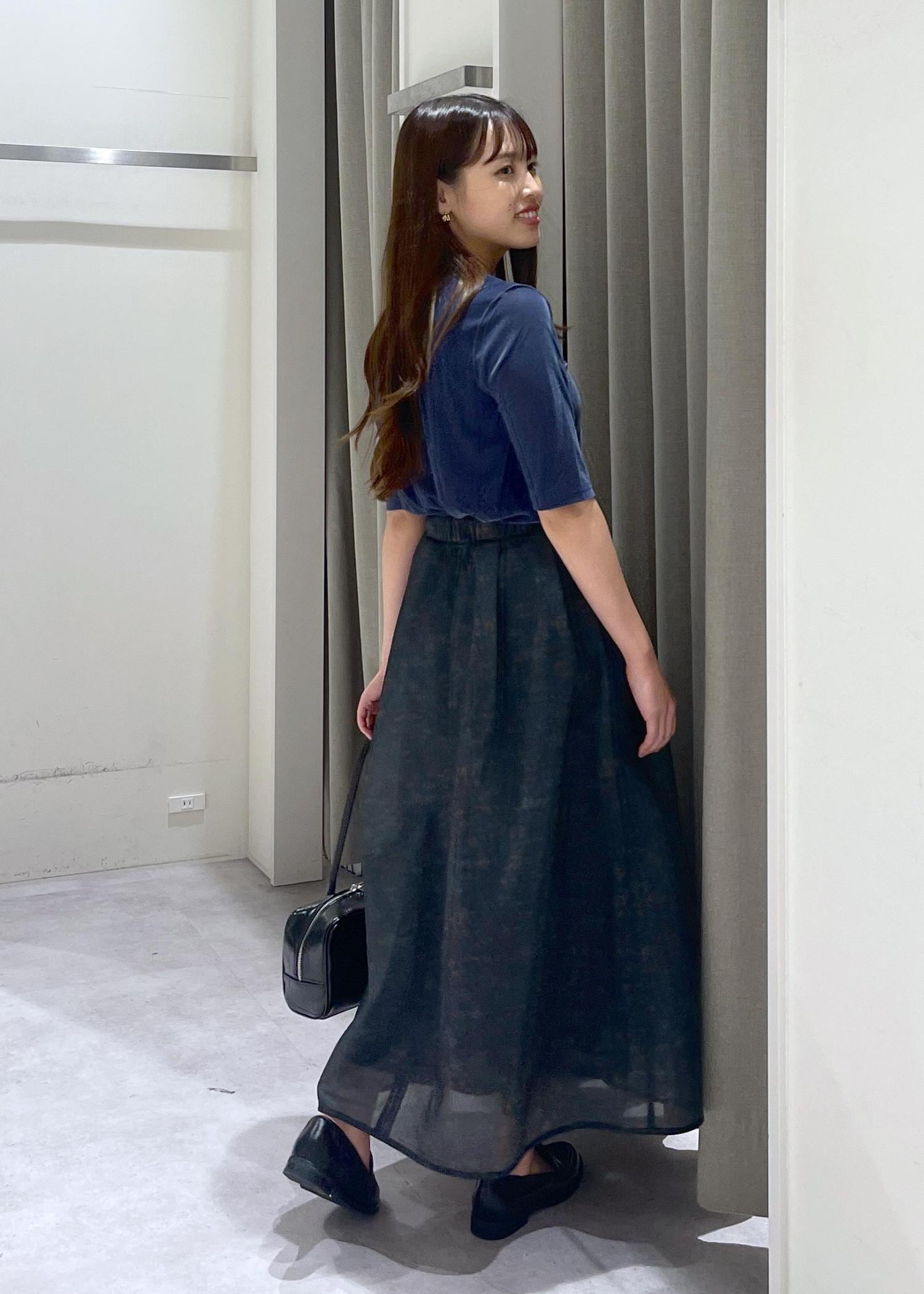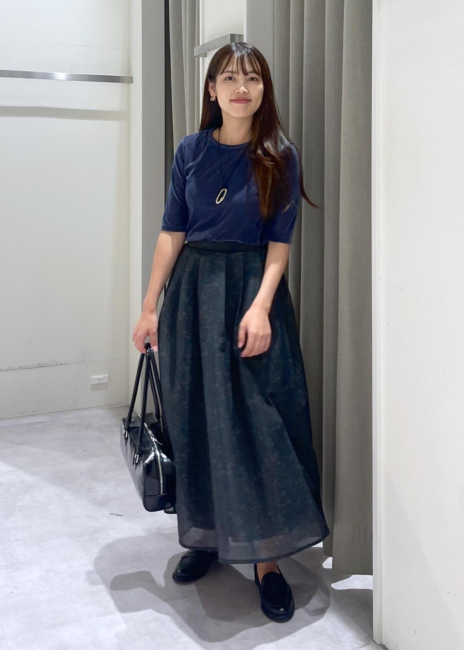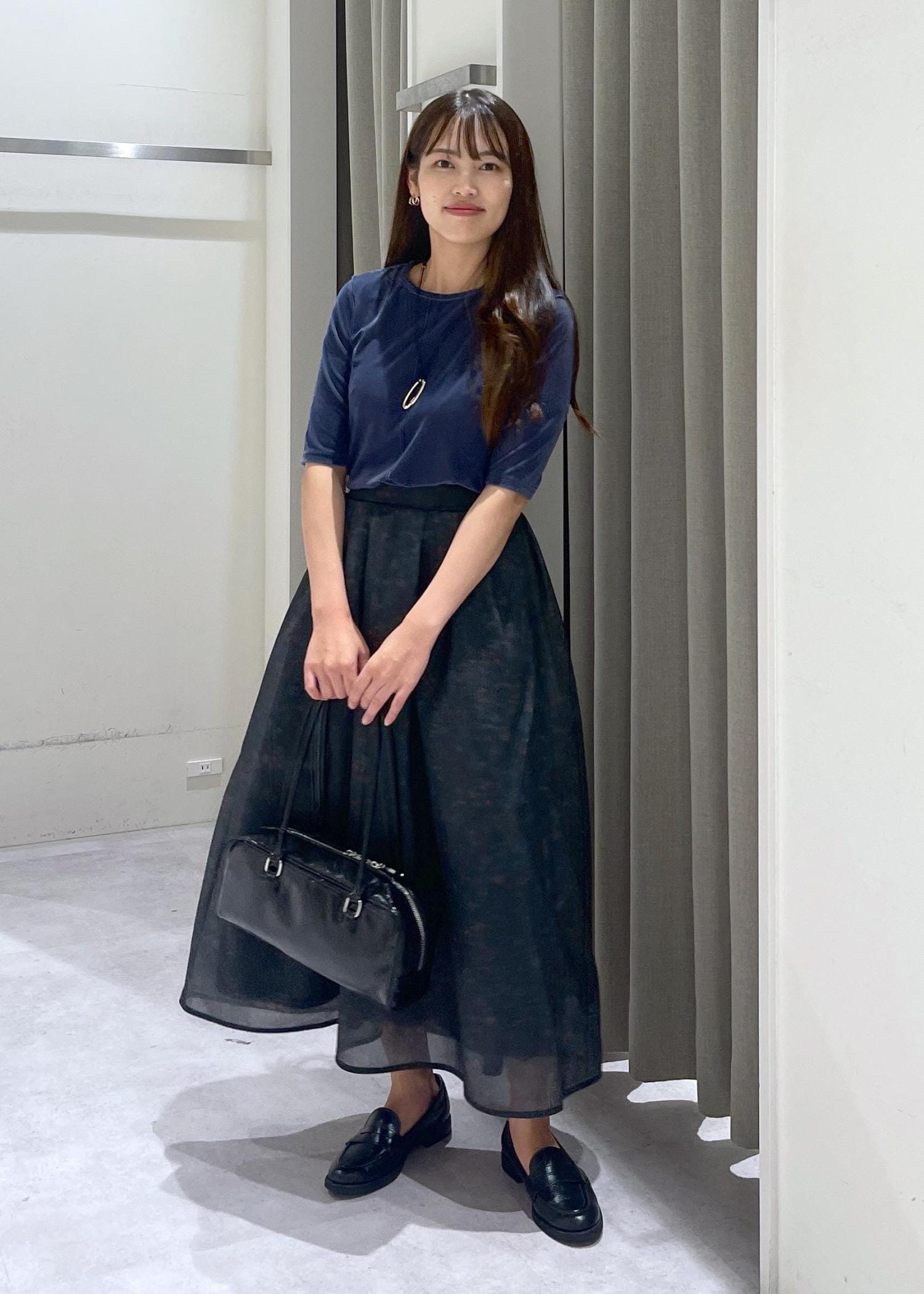 シアースカートを合わせてフェミニンで上品な雰囲気にしました☺︎