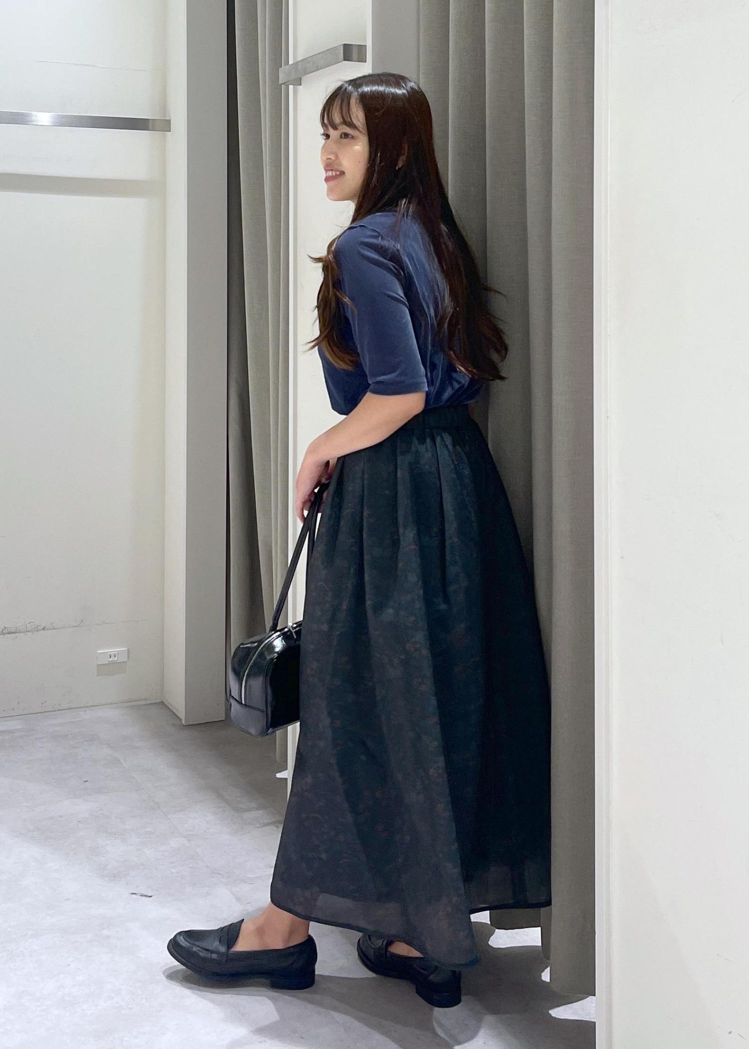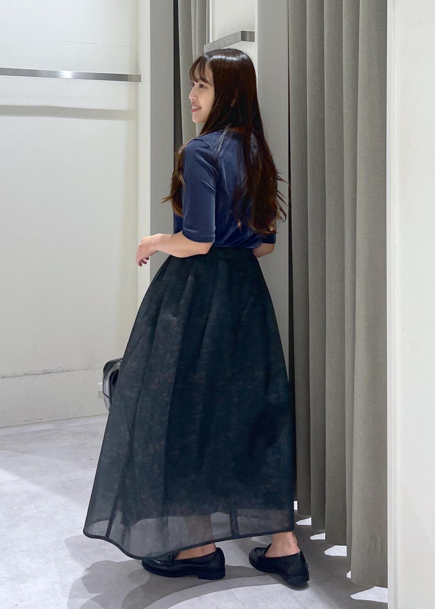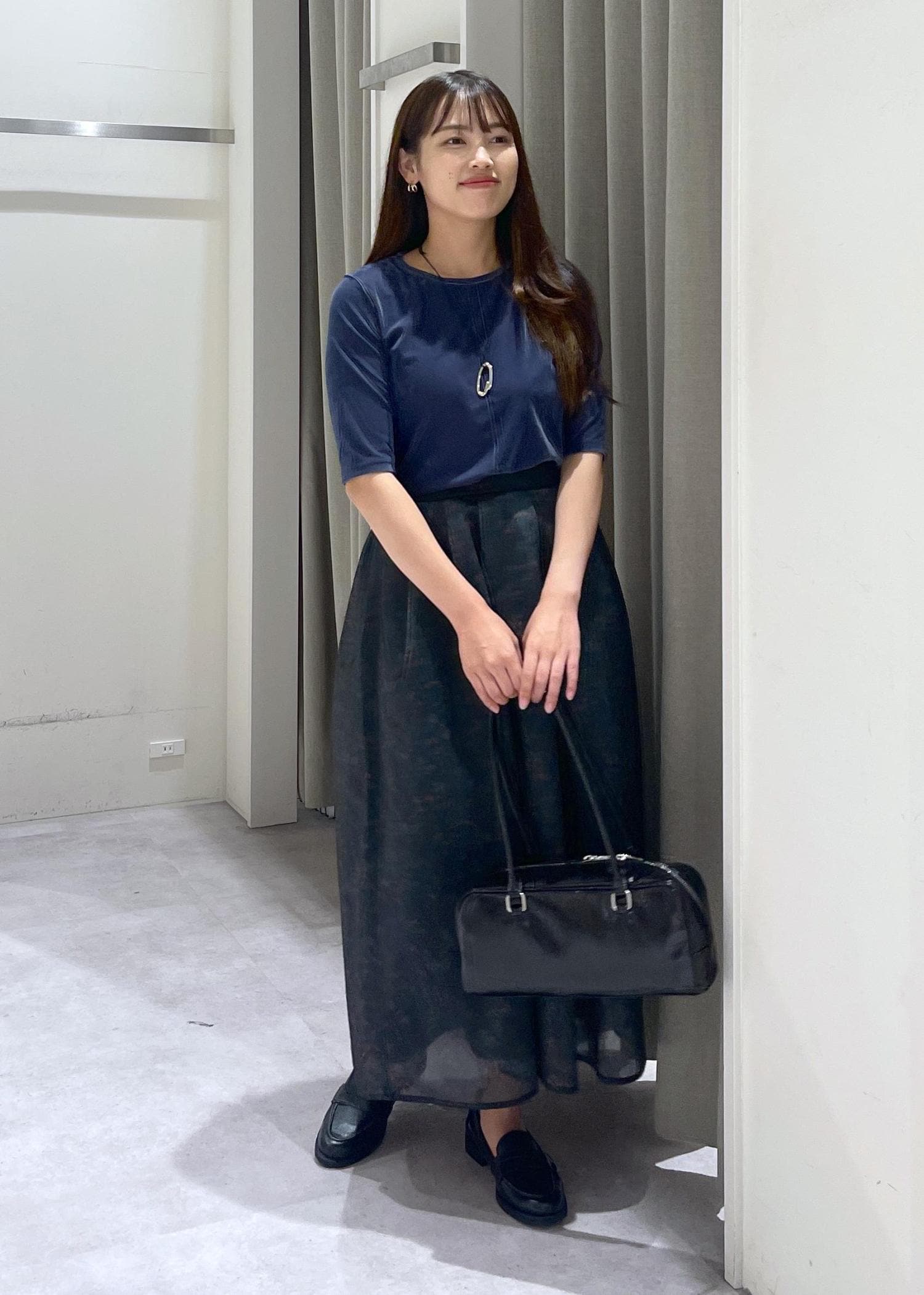シアースカートを合わせてフェミニンで上品な雰囲気にしました☺︎