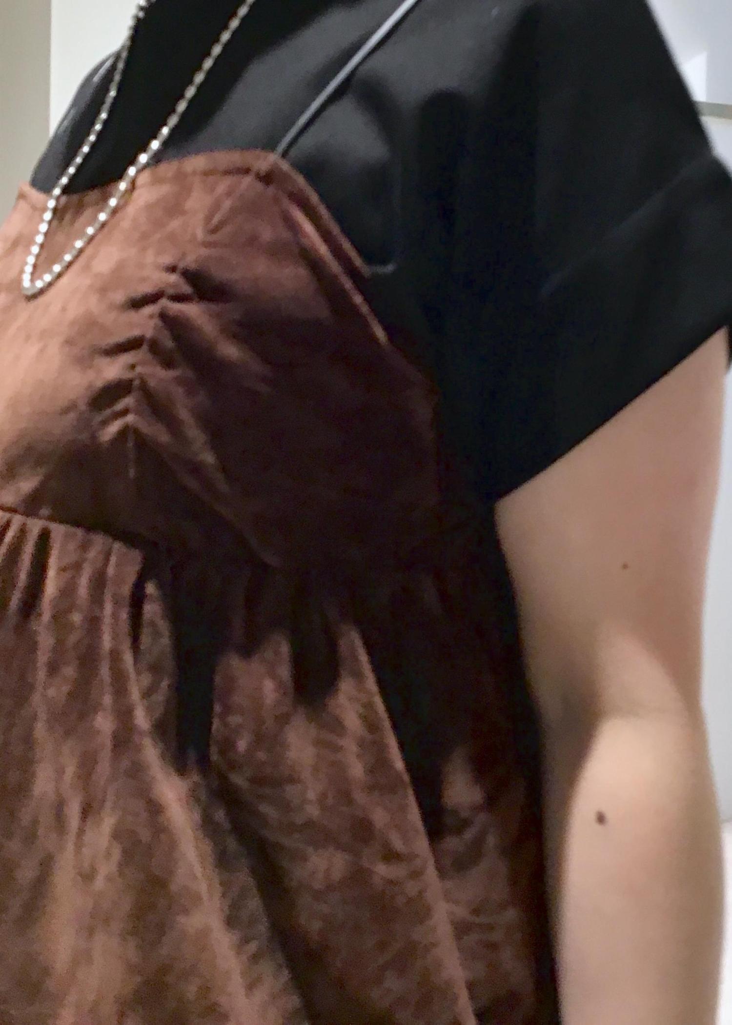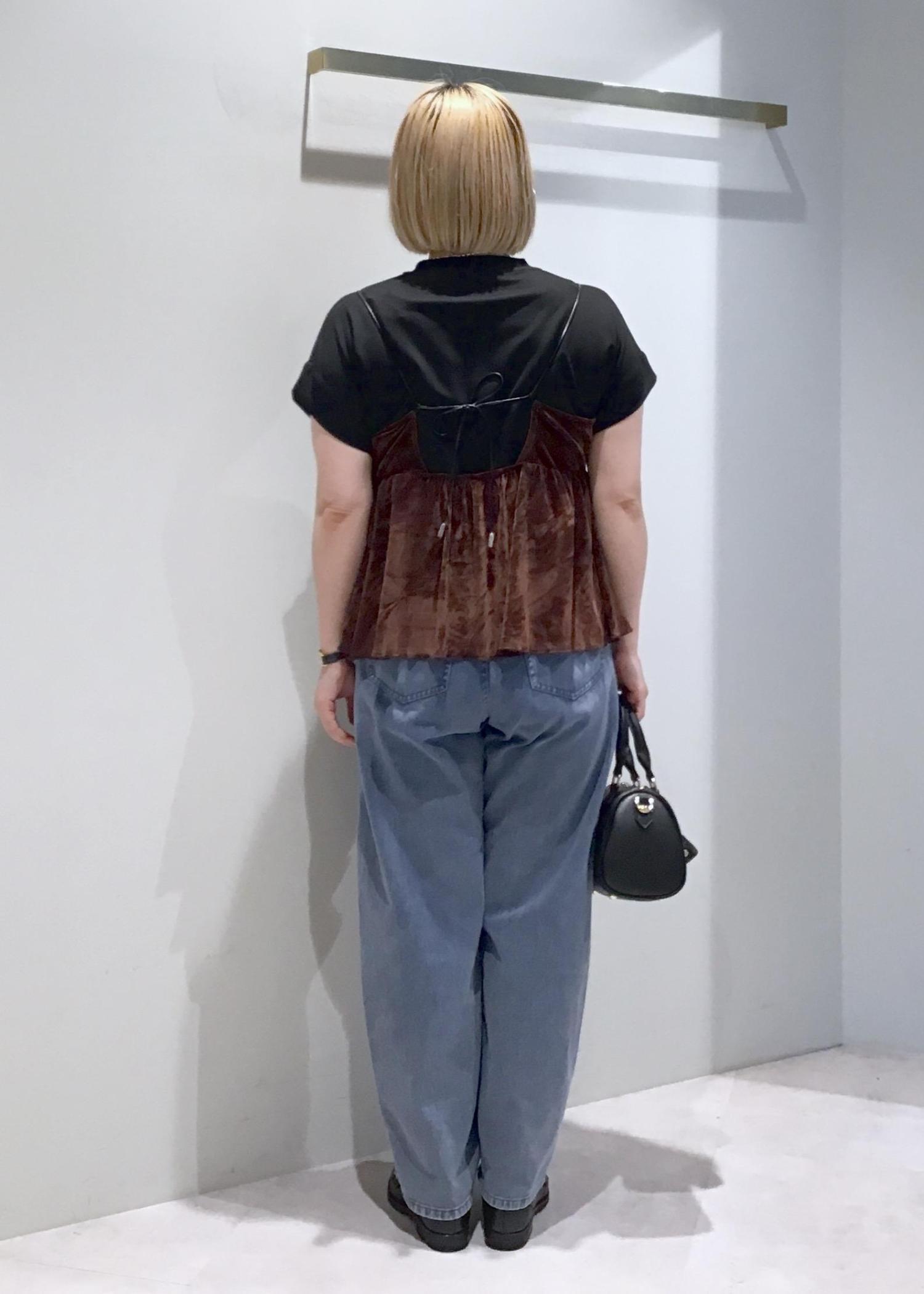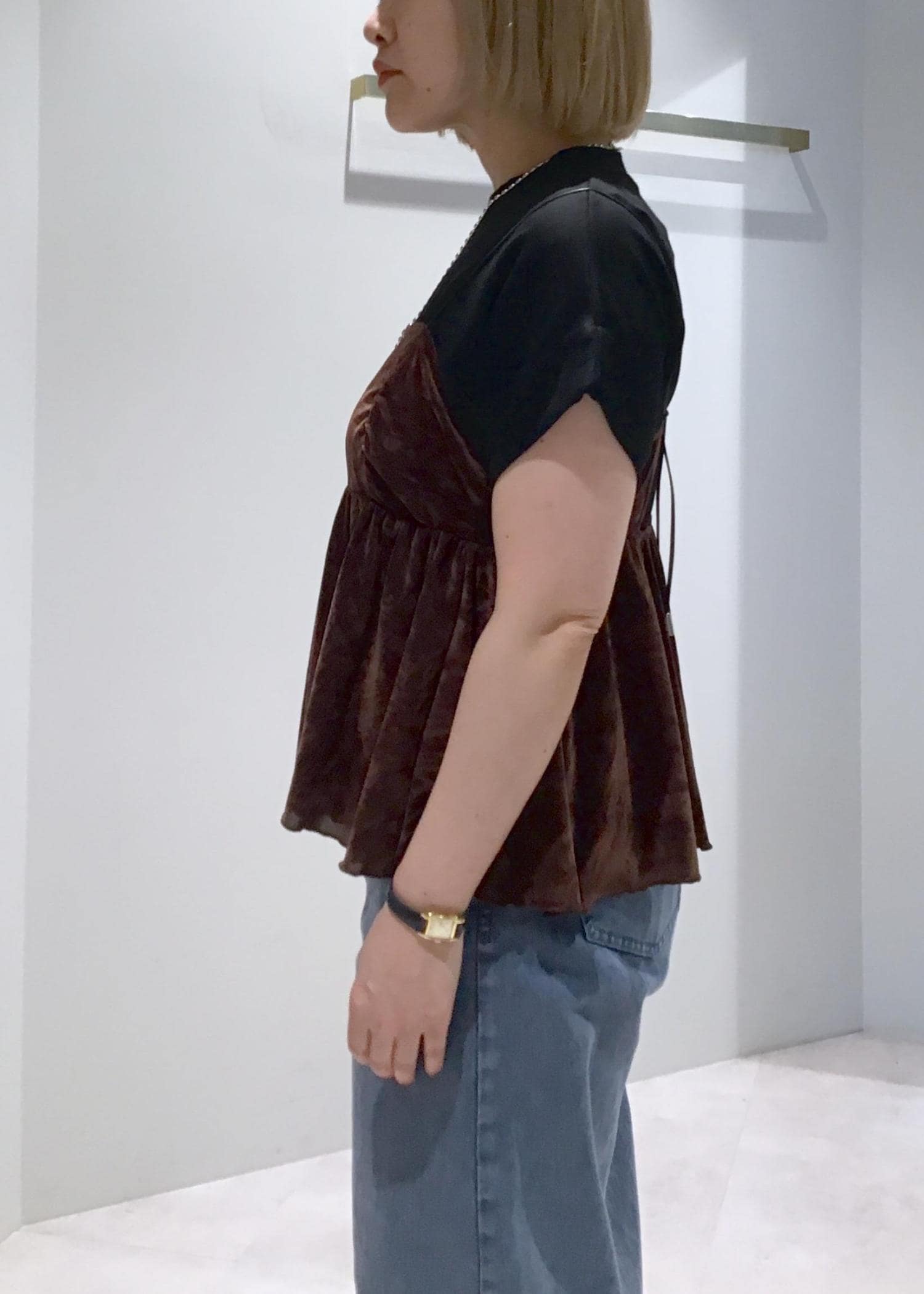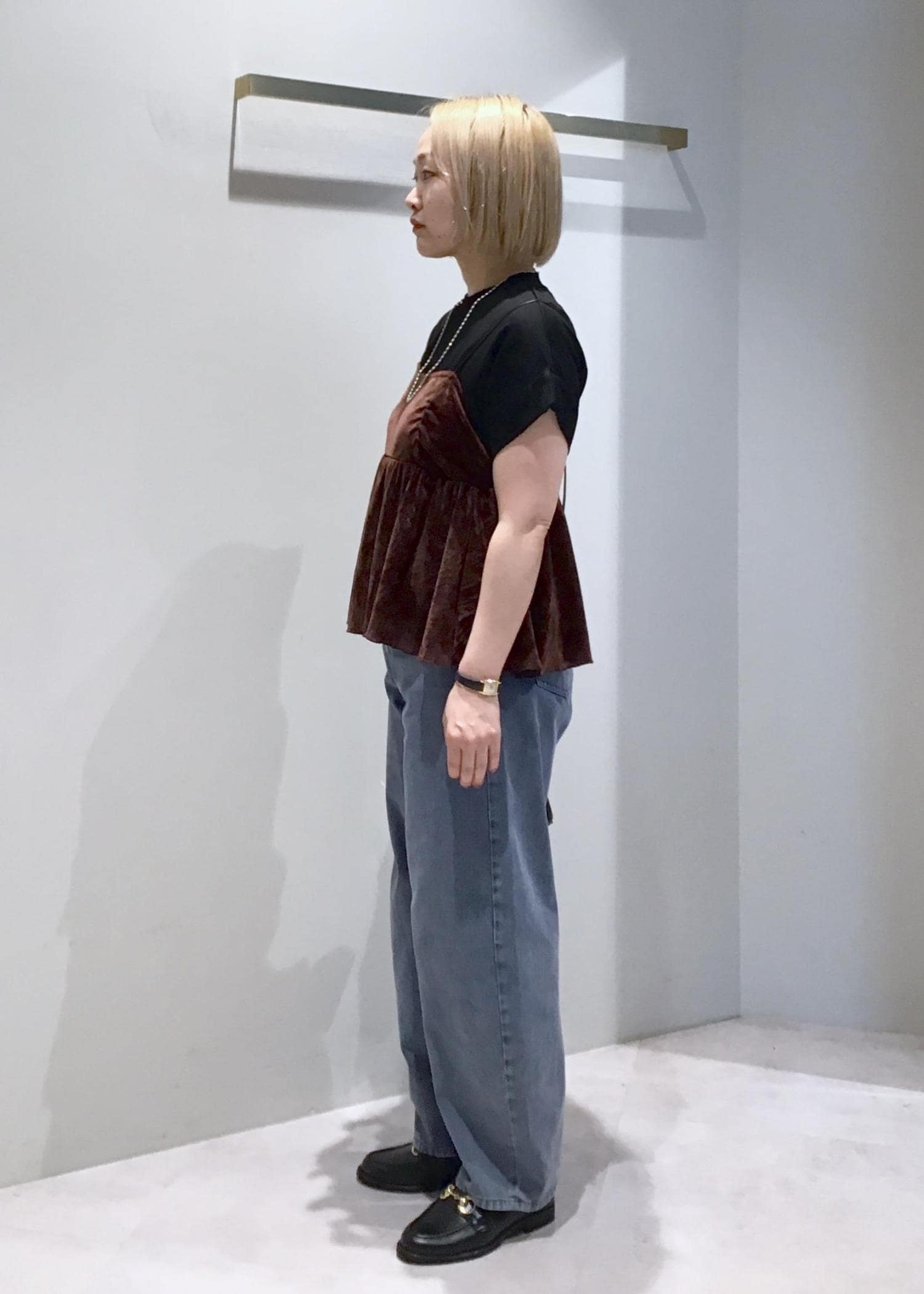 トレンドのベロア素材のキャミソールは、インナーを変えて長く楽しんでいただけますよ。