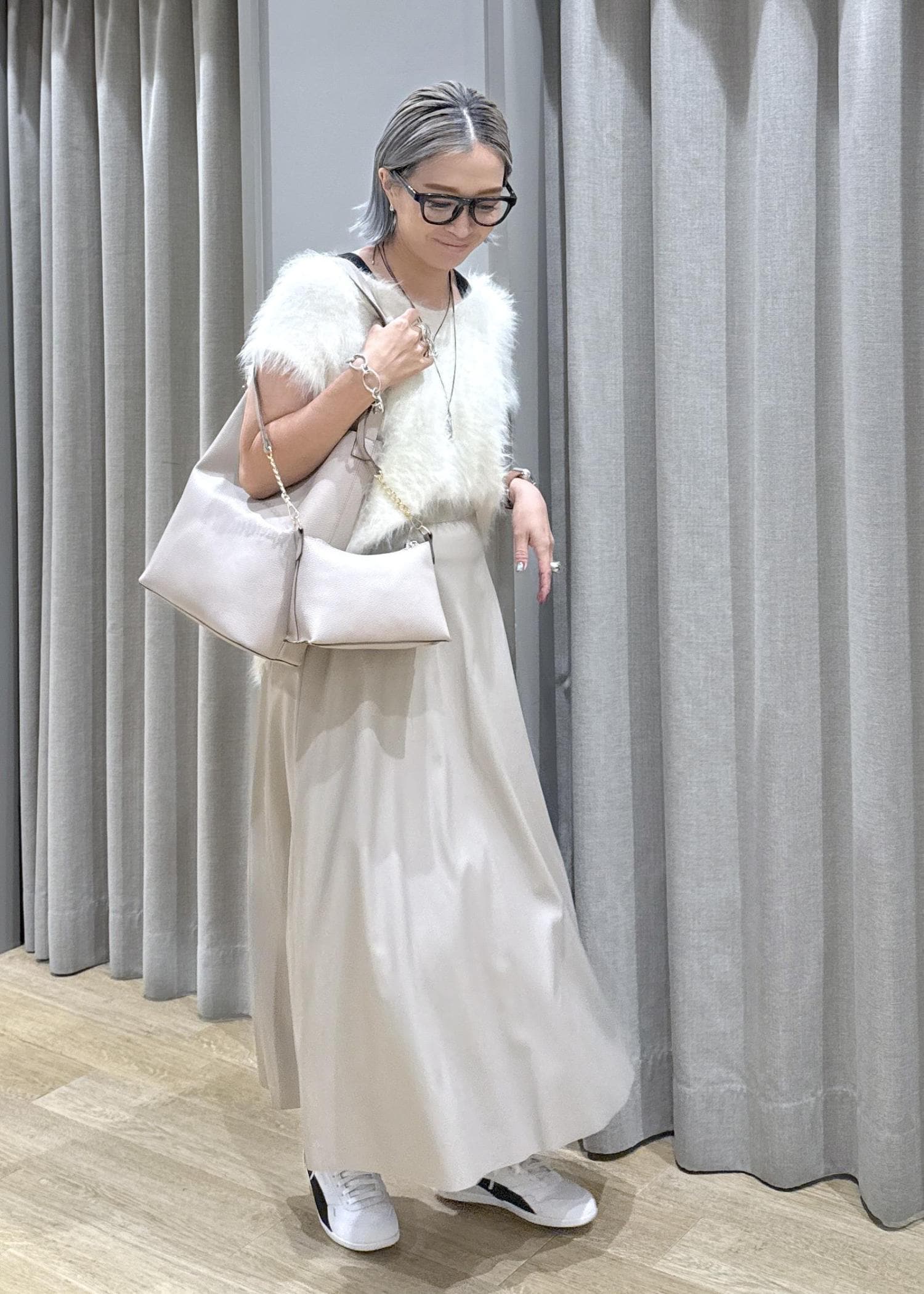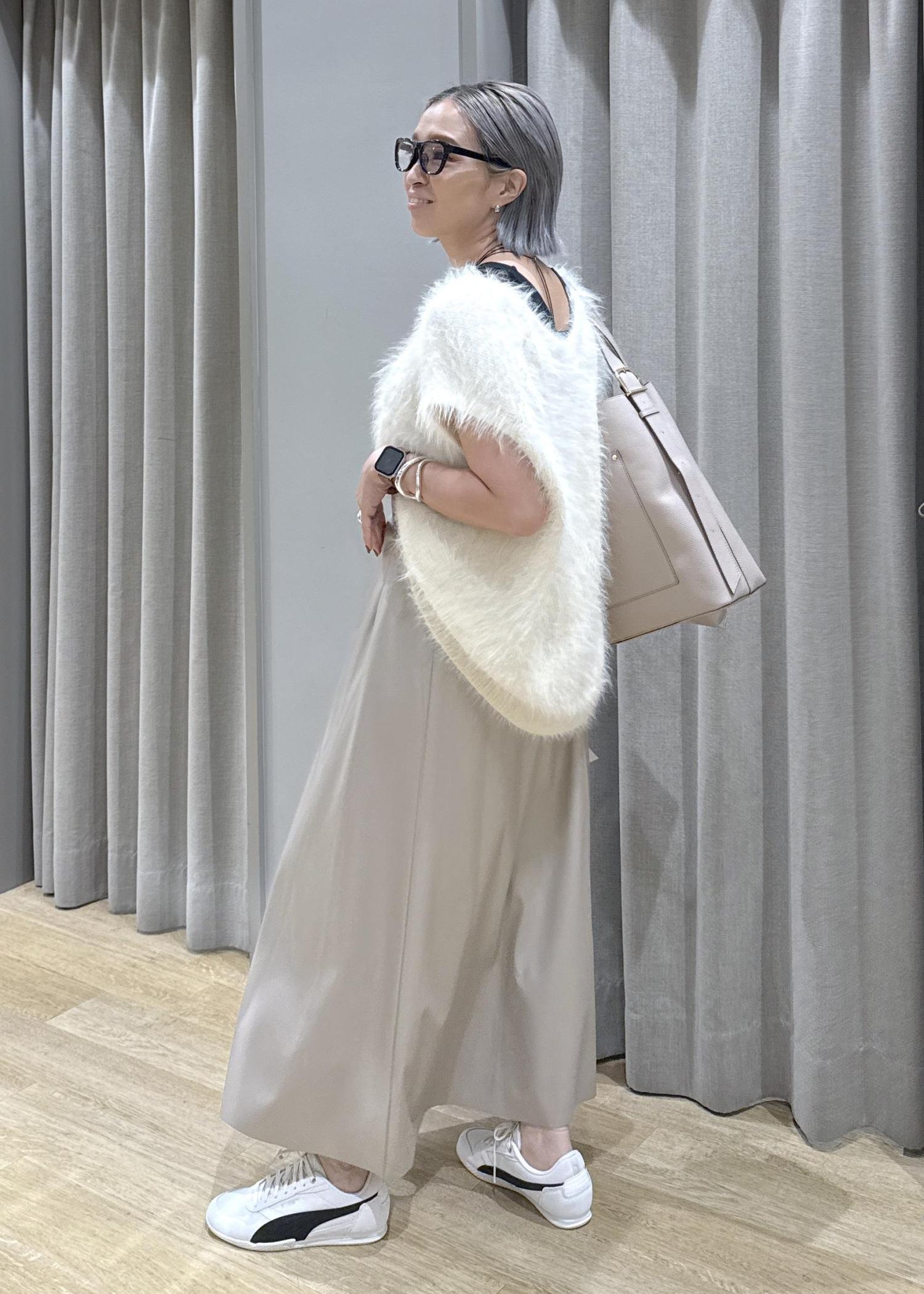体のラインが程よく出ないので、安心感のあるスタイリング。