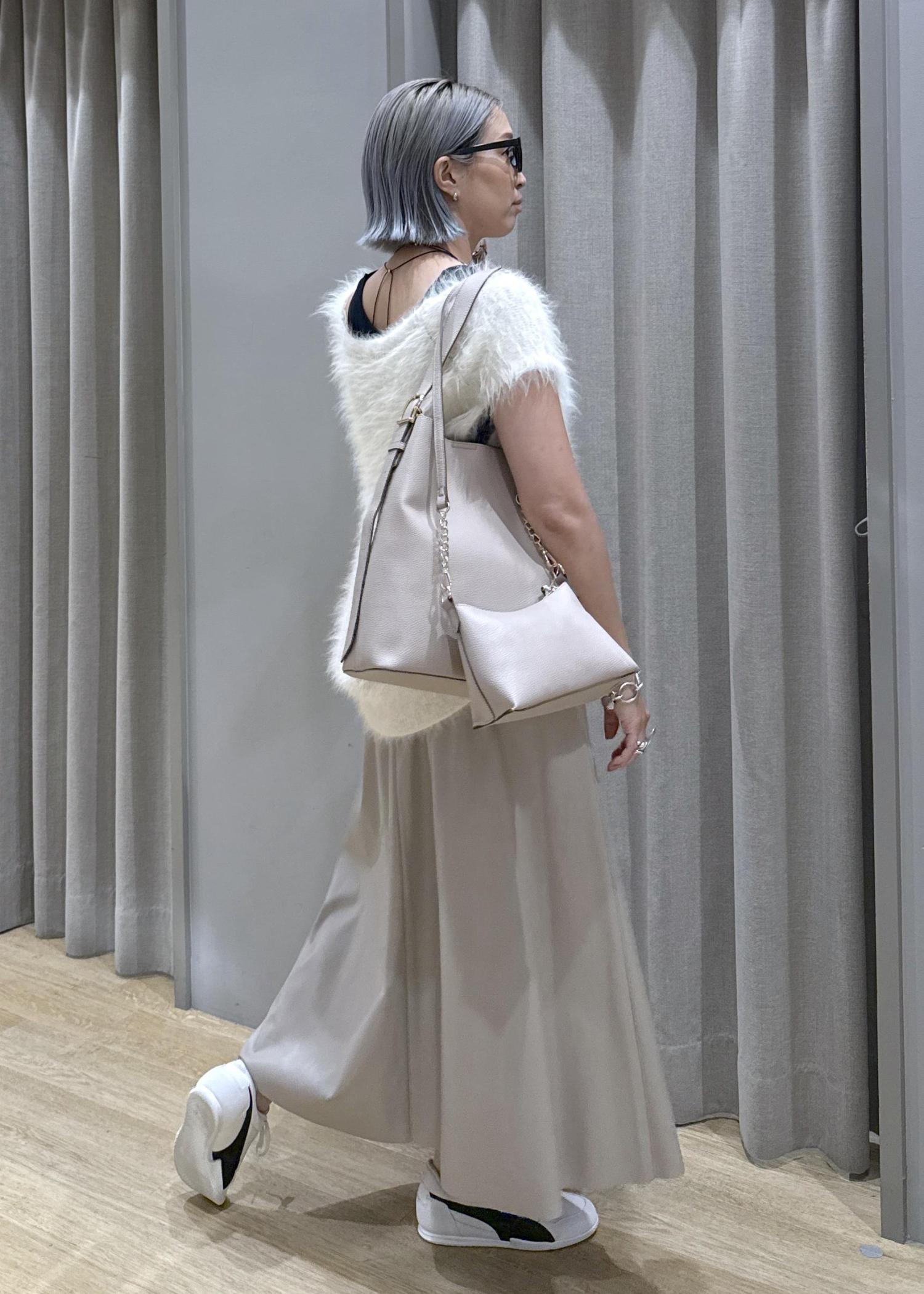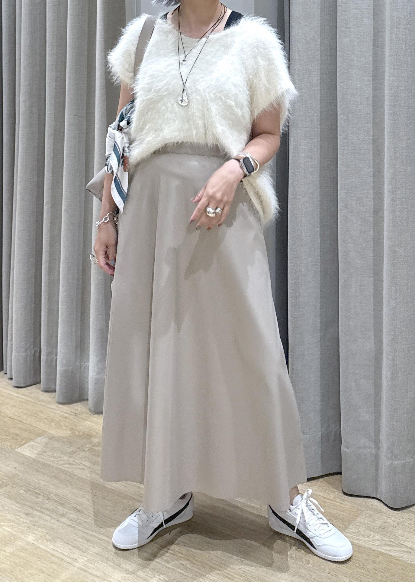 ROPÉ PICNICシンセティックレザーフレアロングスカートベージュ / S¥4,994レビュー背中部分がゴムになっているフェイクレザーマキシスカート。