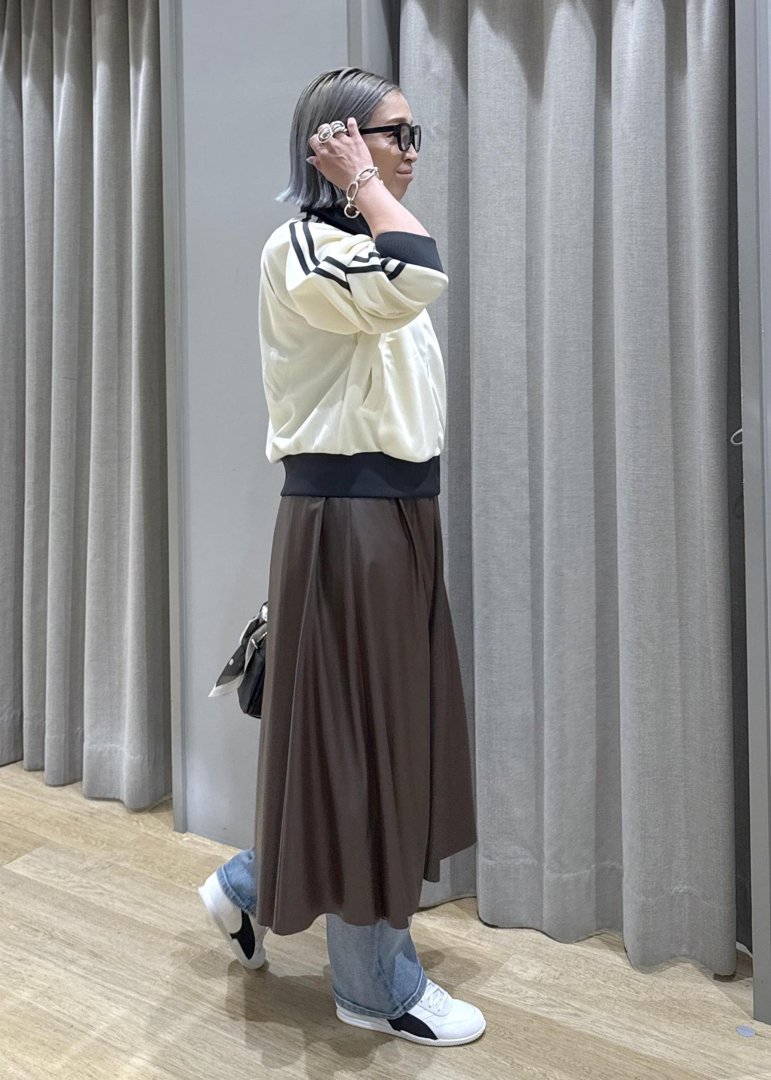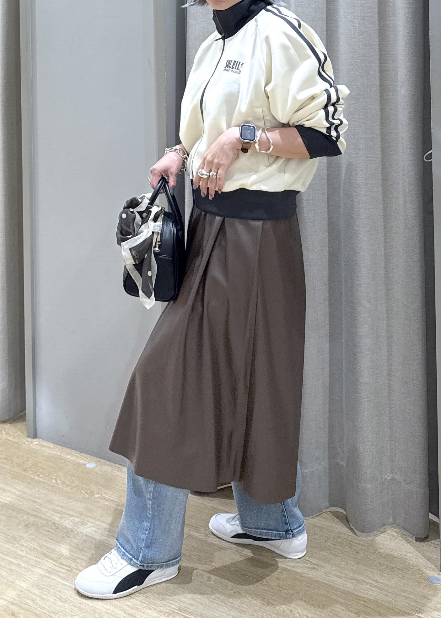 気持ちウエスト位置を上げて履くと脚長効果もでて◎