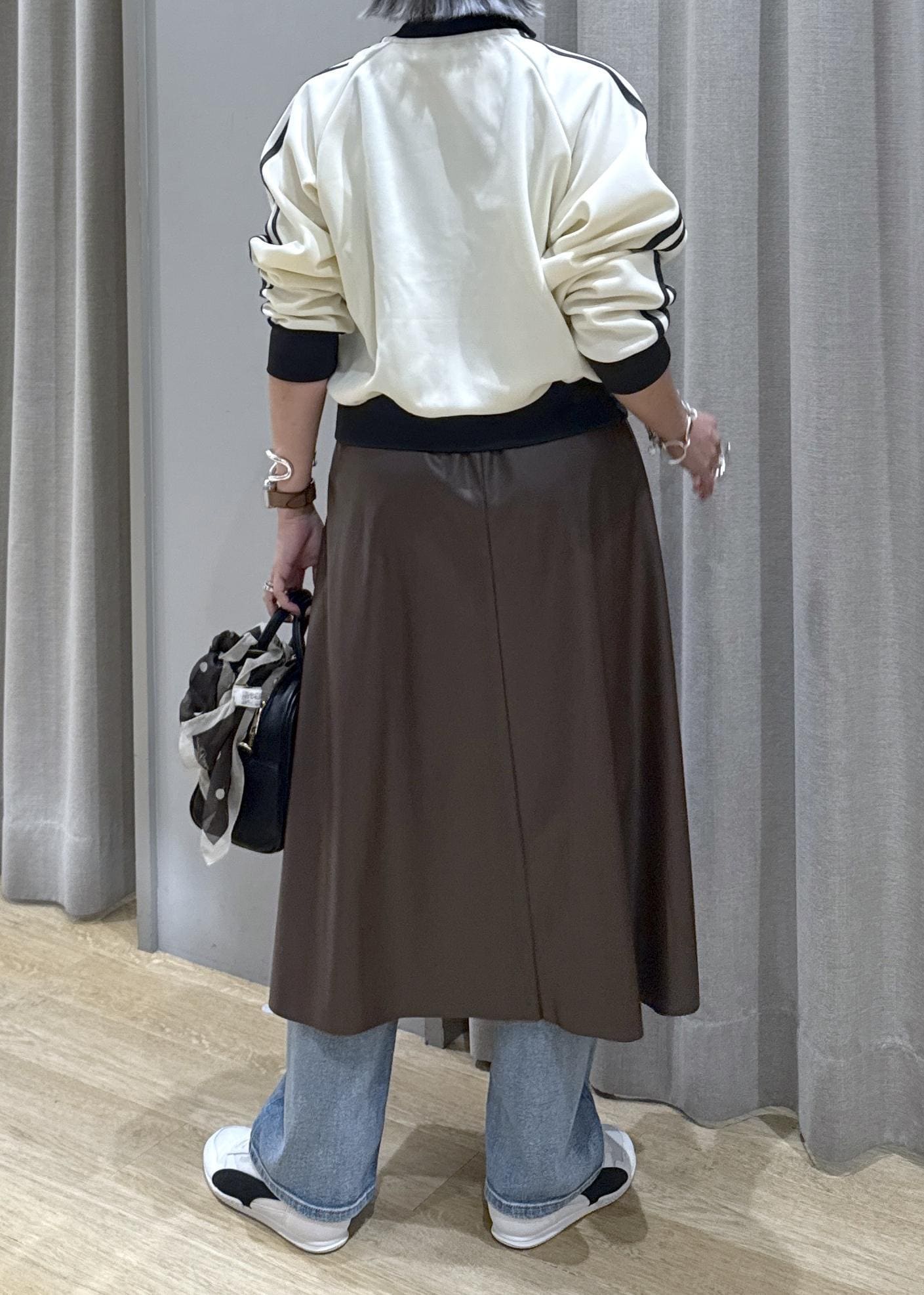 ROPÉ PICNICシンセティックレザーフレアロングスカートダークブラウン / S¥4,994レビュー背中部分がゴムになっているフェイクレザーマキシスカート。