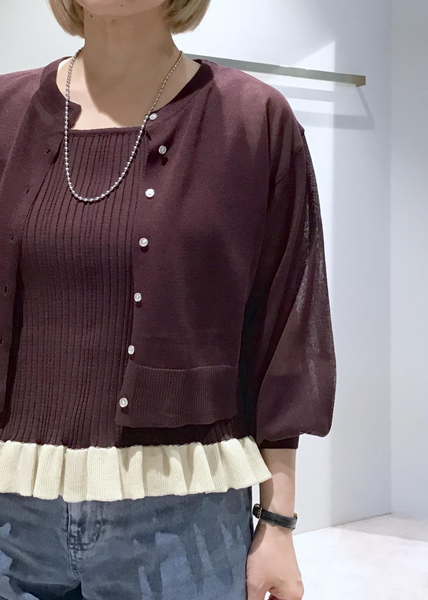 インナーのフリルが可愛い、アンサンブルをご紹介します。
