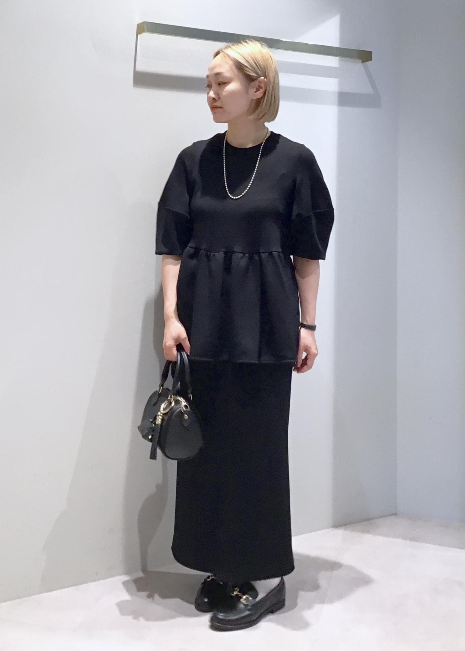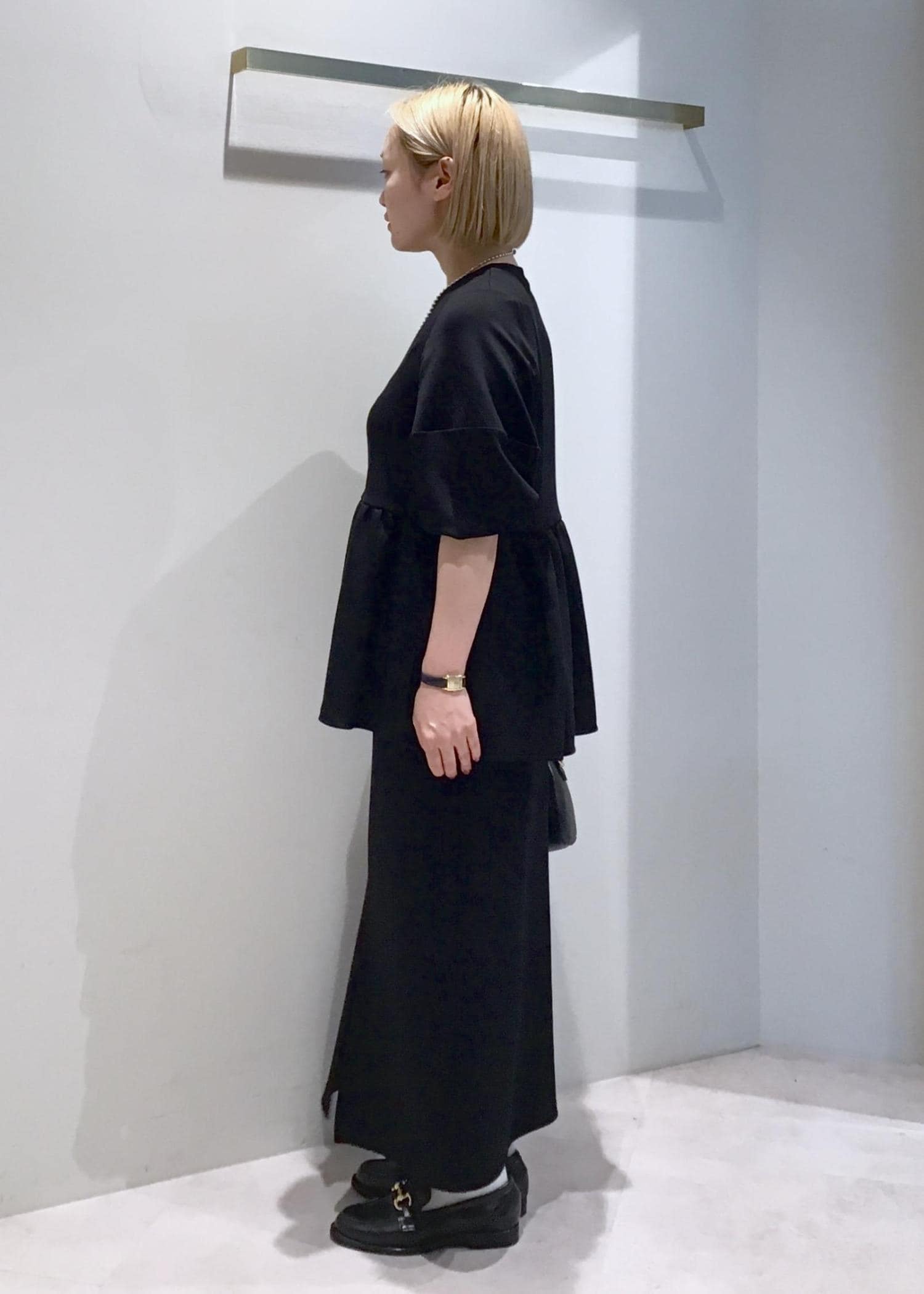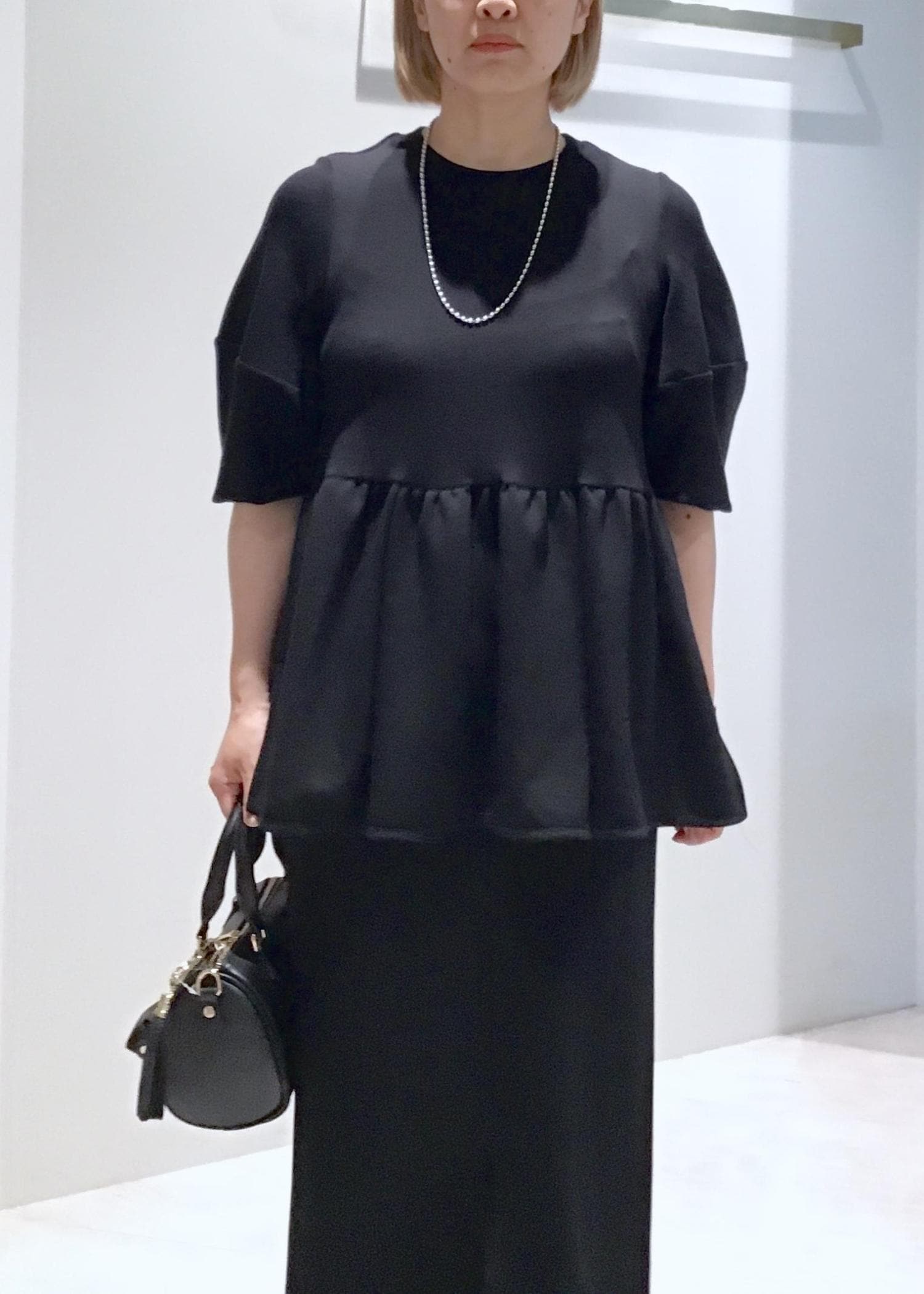 ペプラムデザインのトップスは、セットアップできちんと見えはもちろん、デニムなどとのカジュアル合わせもお勧めです。
