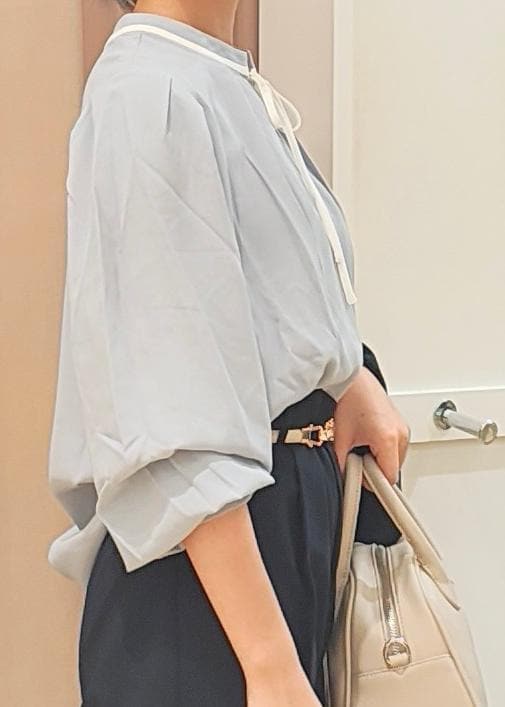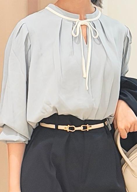 ROPÉ PICNIC【前後2WAY】【WEB限定カラー】配色リボンブラウス/通勤対応サックス / S¥3,993レビューリボンを前側にすると、アクセサリー無しでも華やかな印象になります♪袖が太めなので華奢見えします!