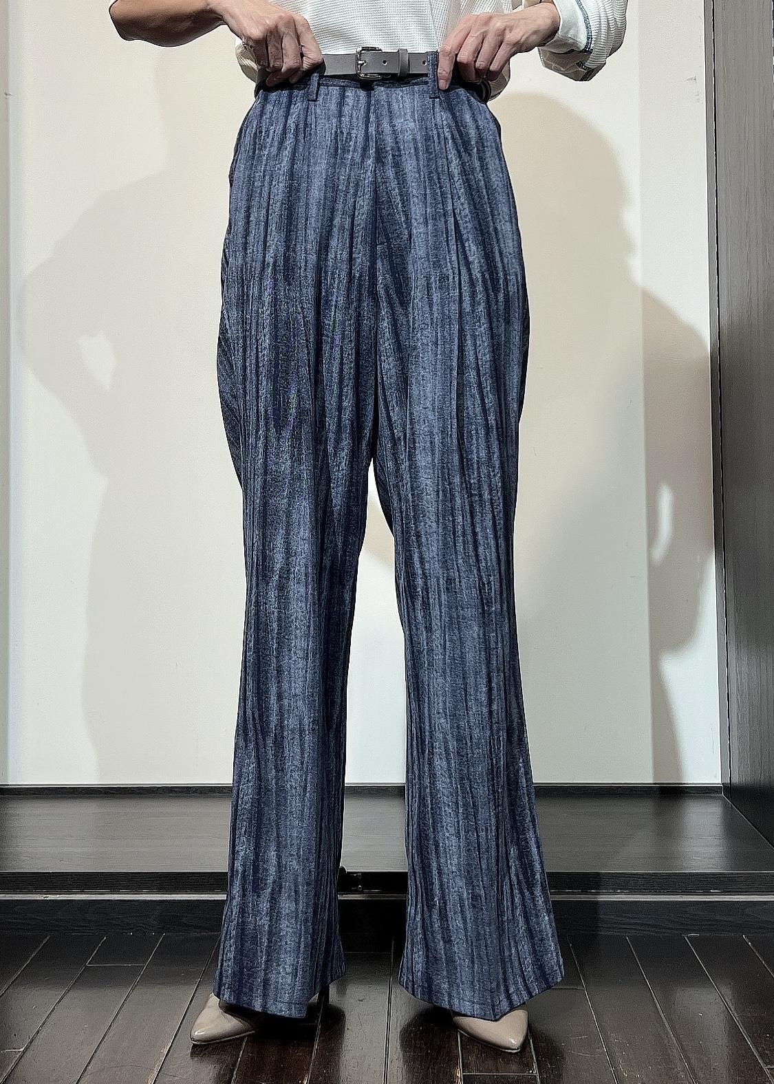アウトレットJUNRED【セットアップ対応】ラビングストライプワイドフレアパンツブルー系 / S¥3,520レビューさらさらしていてストンと落ち感のある美シルエットなワイドフレアパンツ。