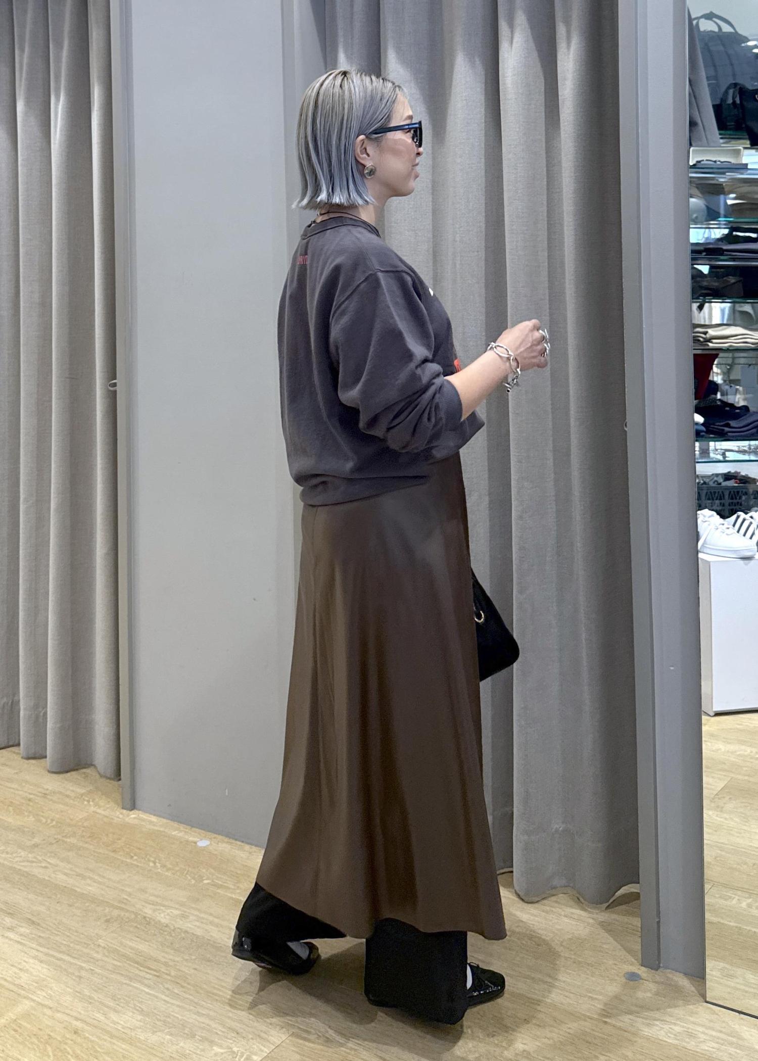 ROPÉ PICNICシンセティックレザーフレアロングスカートダークブラウン / S¥4,994レビュー背中部分がゴムになっているフェイクレザーマキシスカート。