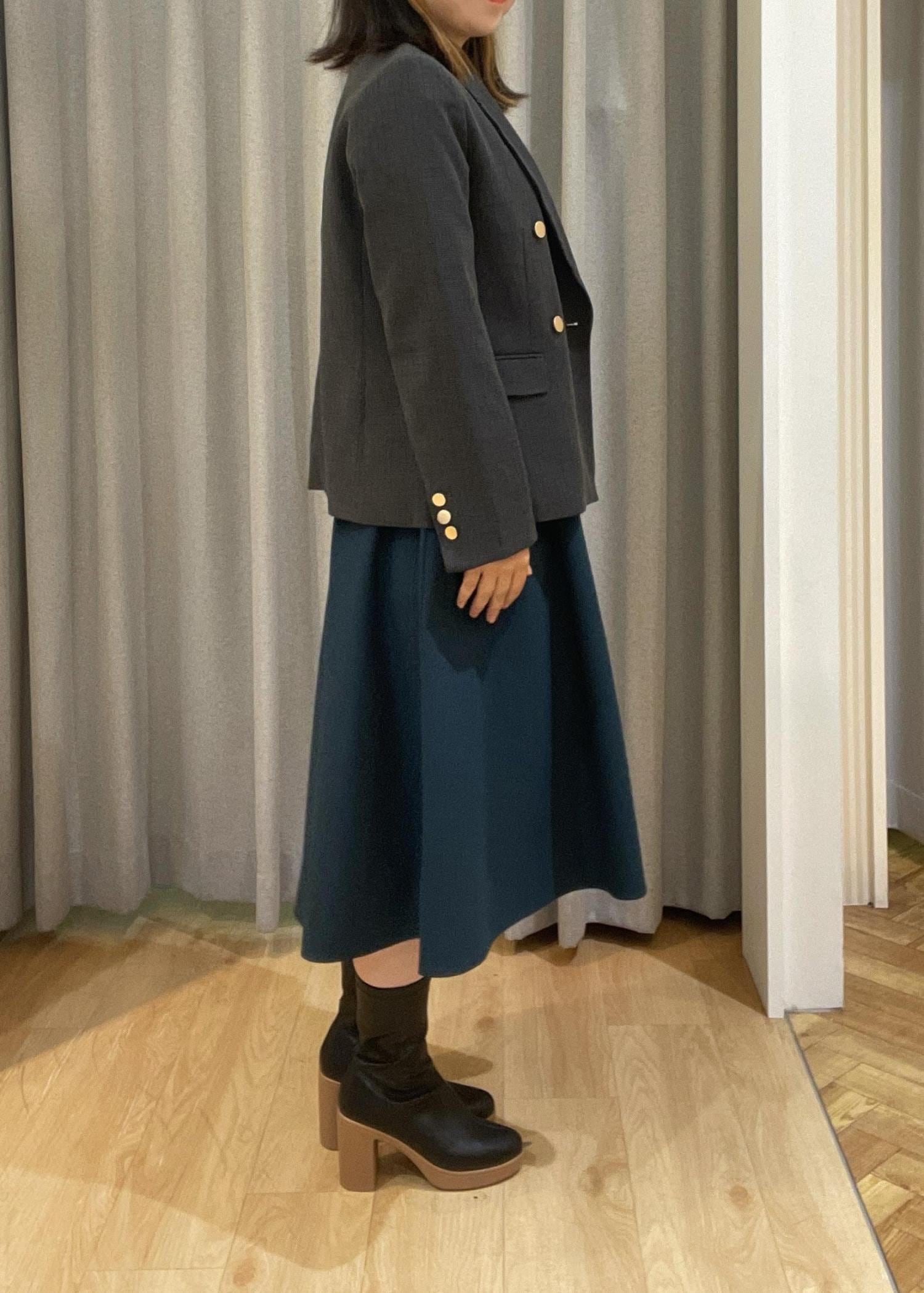 身幅はほどよくゆとりがあり、ニットやTシャツ幅広く中に着込むことができます。