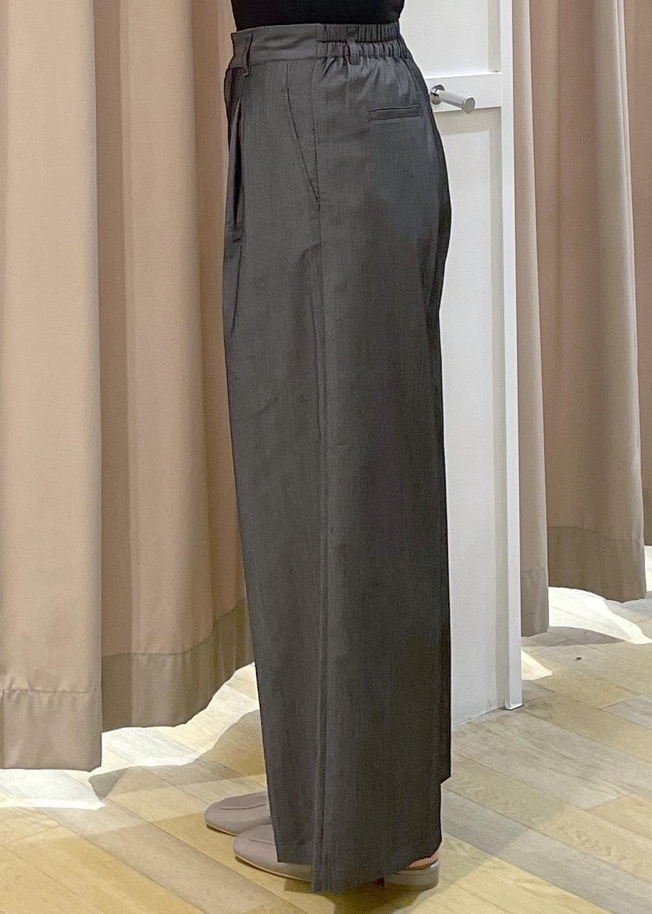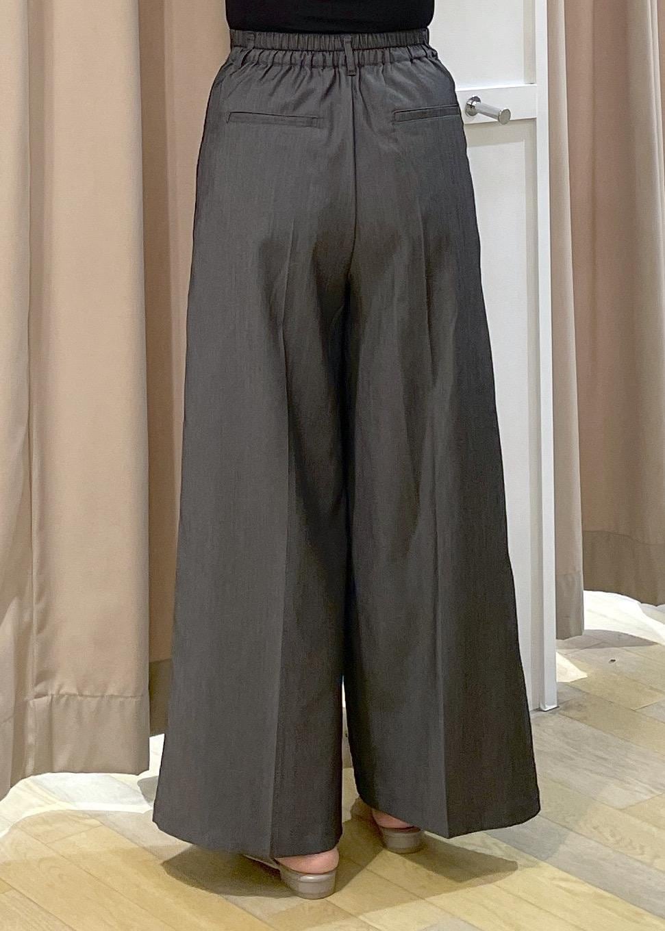 柔らかい滑らかな生地感で、ウエストは後ろゴム仕様のややゆとりのあるサイズ感です。